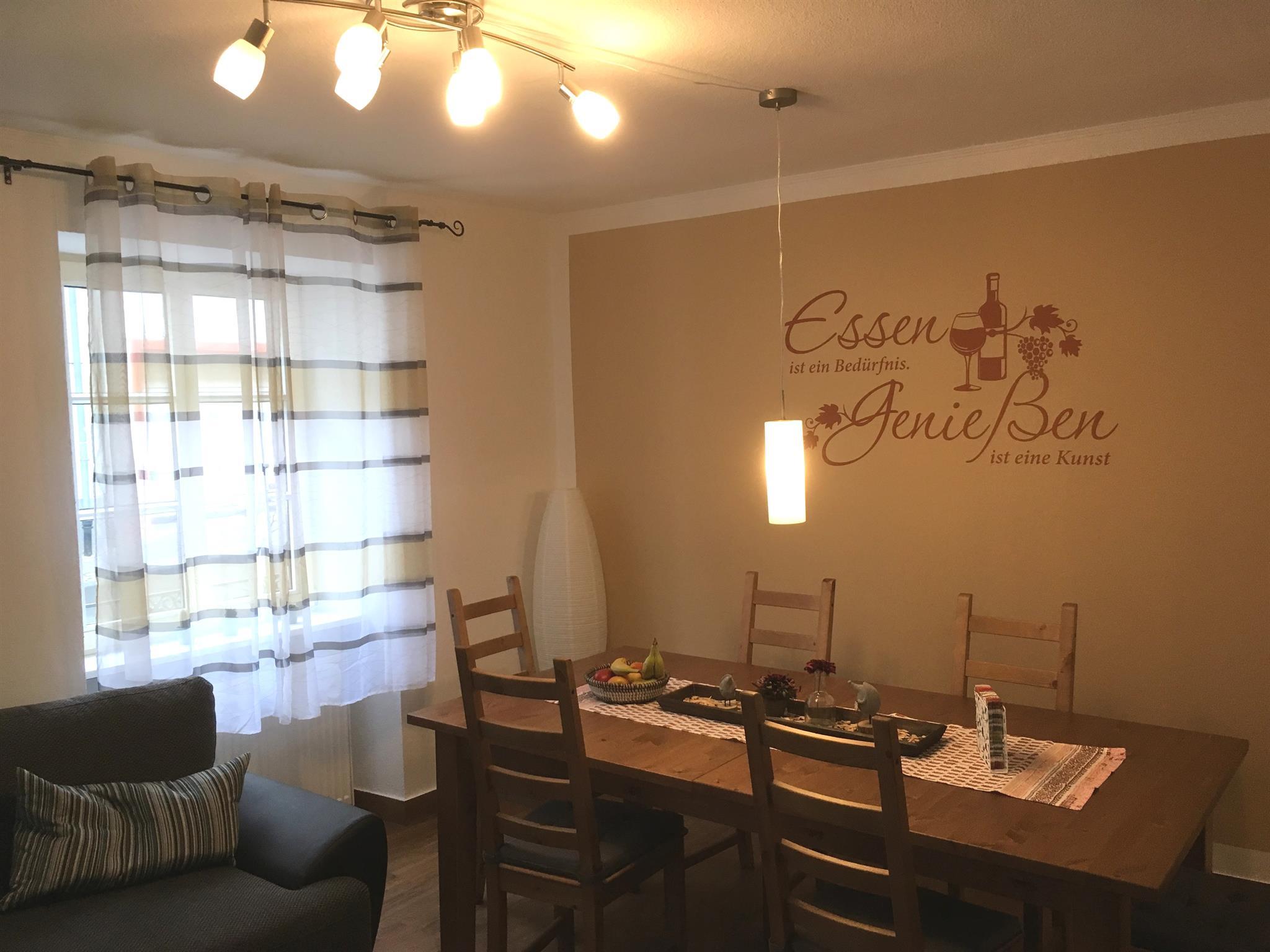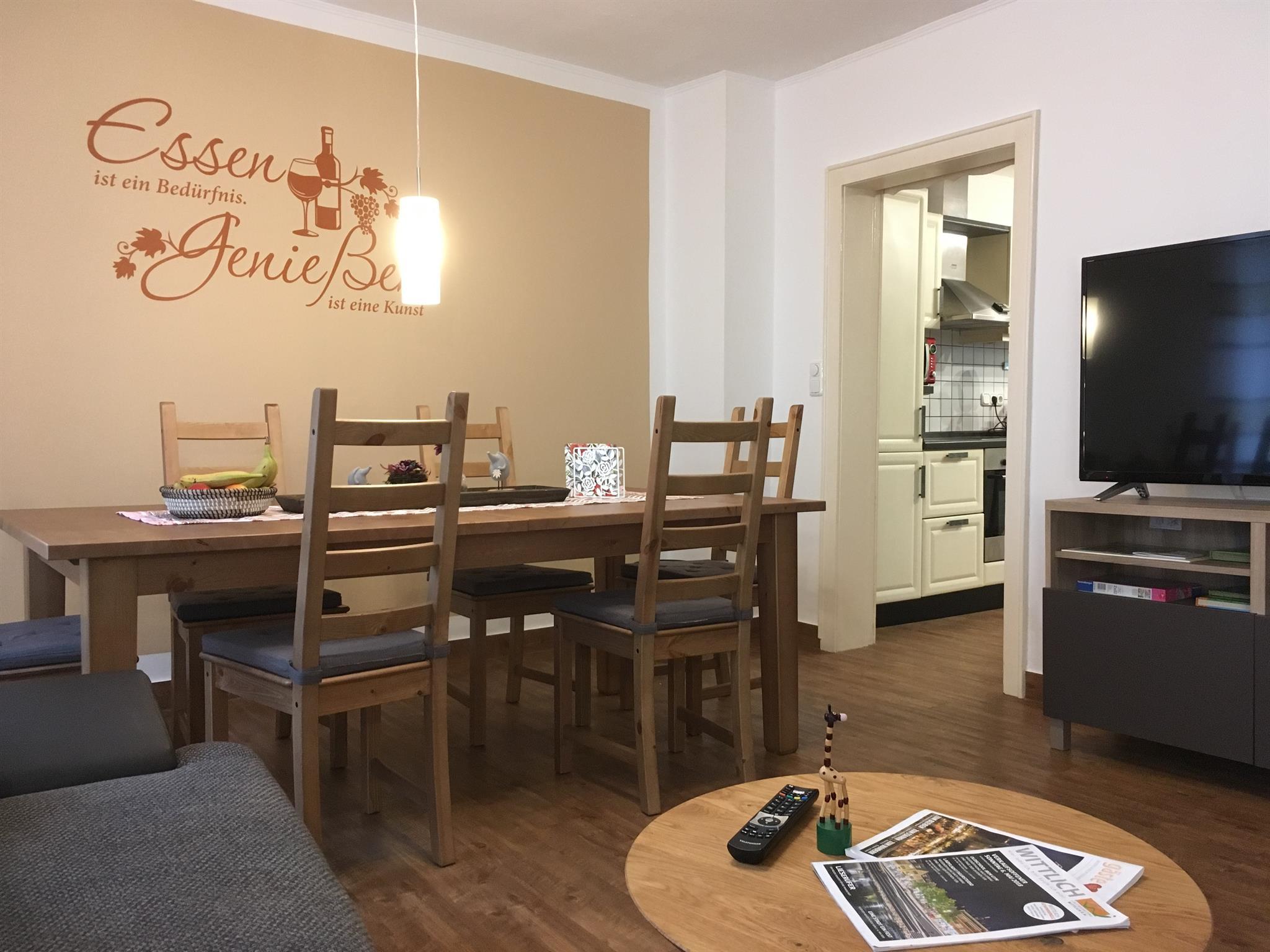Wohn- und Esszimmer mit Fernseher (Smart-TV),