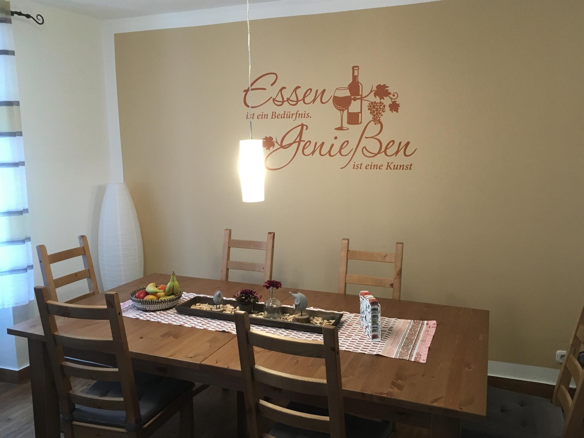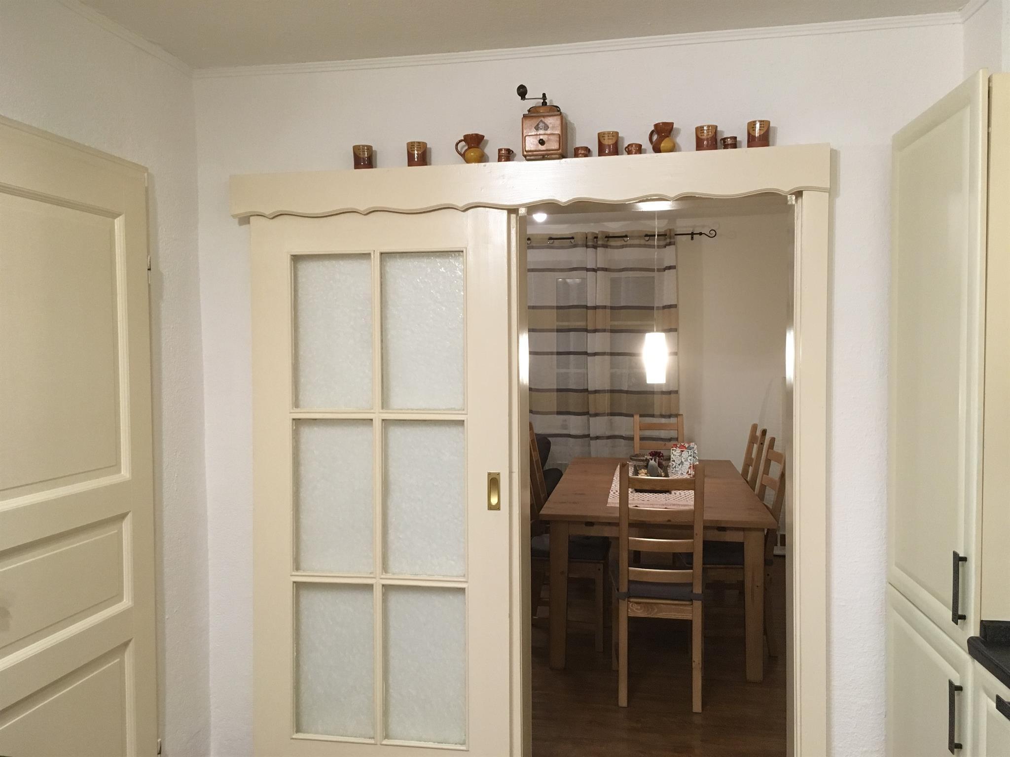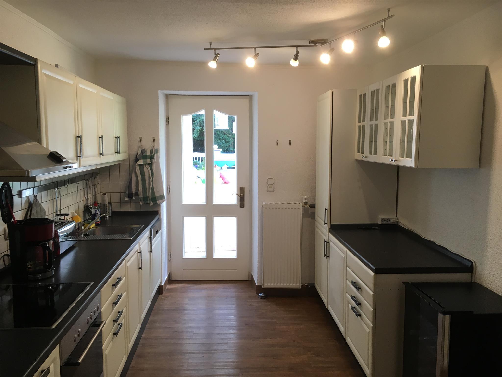 Ausgestattete Küche: Mikrowelle, Kühlschrank mit Gefrierfach, Weinkühlschrank, Backofen, Ceranfeld, Geschirrspüler, Toaster, Wasserkocher, Kaffeemaschine. Geschirr, Besteck und Gläser (Wasser-, Wein-, Sektgläser) für 6-8 Personen, auch Kindergeschirr.