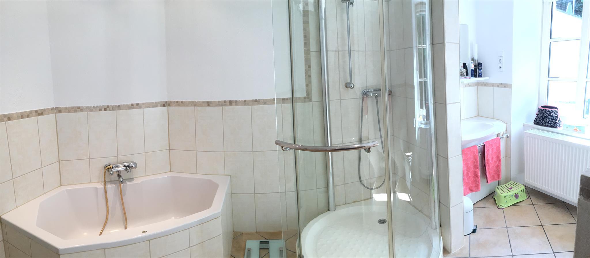 Bad (Dusche, Badewanne, Waschbecken, WC, Bidet).