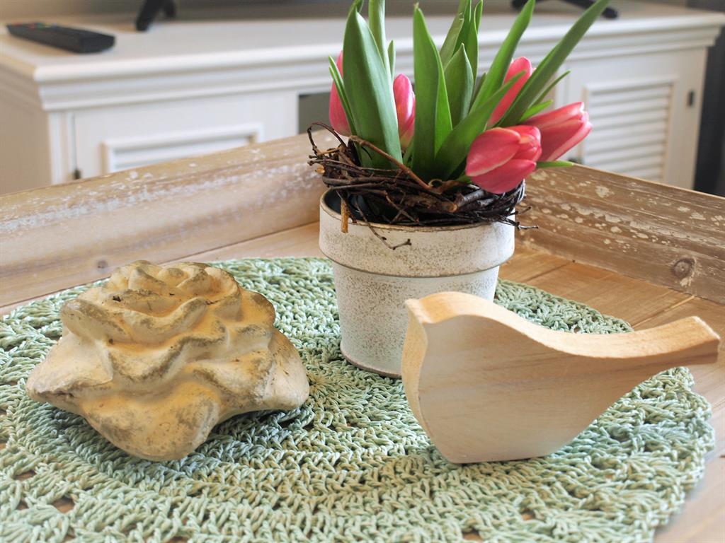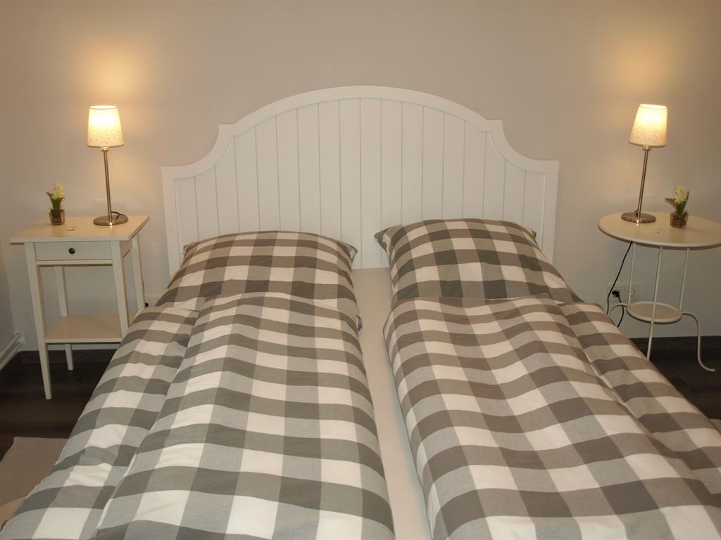 Im Erdgeschoss befinden sich eine sehr gut ausgestattete Küche, das Wohn-/Esszimmer mit Doppelschlafcouch und TV, ein Doppelzimmer, ein Bad mit Dusche und WC, ein Abstellräumchen und die Fahrradgarage mit anschließender Terrasse.