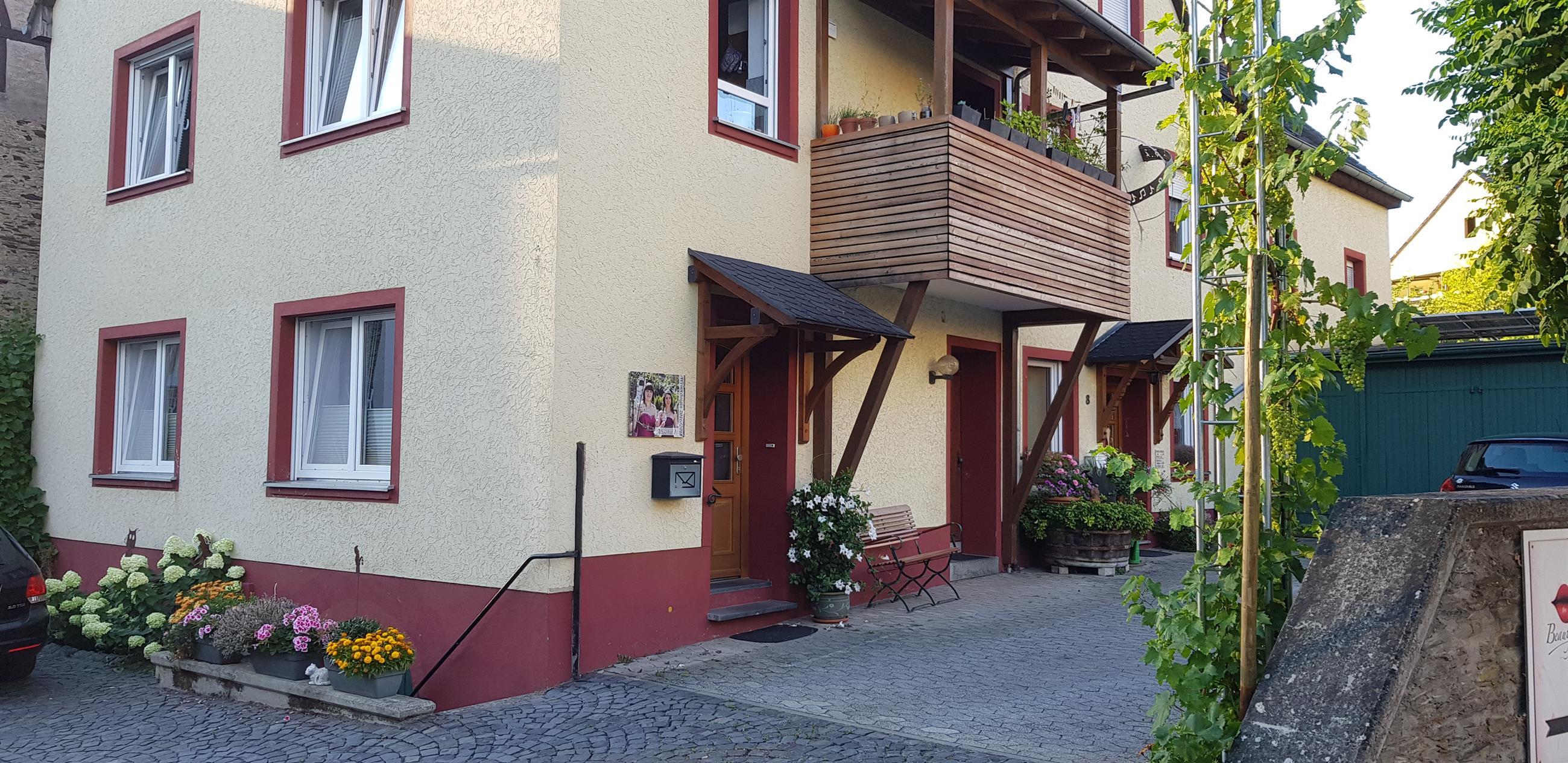Unsere schöne Ferienwohnung, mit Blick auf die Wehlener Sonnenuhr, liegt etwa 50 Meter von der Mosel entfernt, nicht weit vom Radweg.