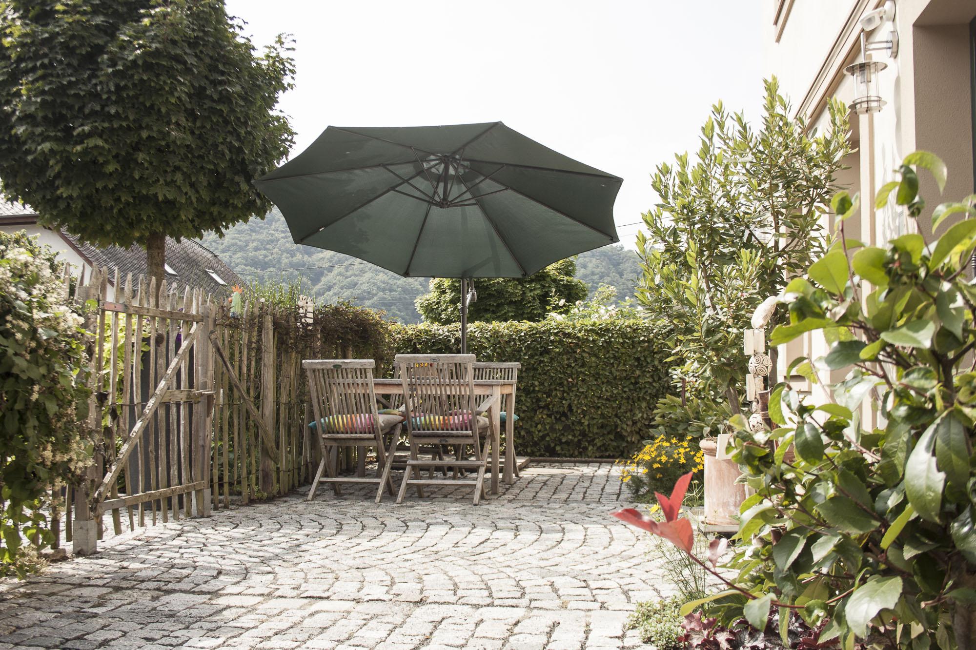 • 500 m² Gästegarten mit Sitzgruppe, Liegewiese und Grillplatz