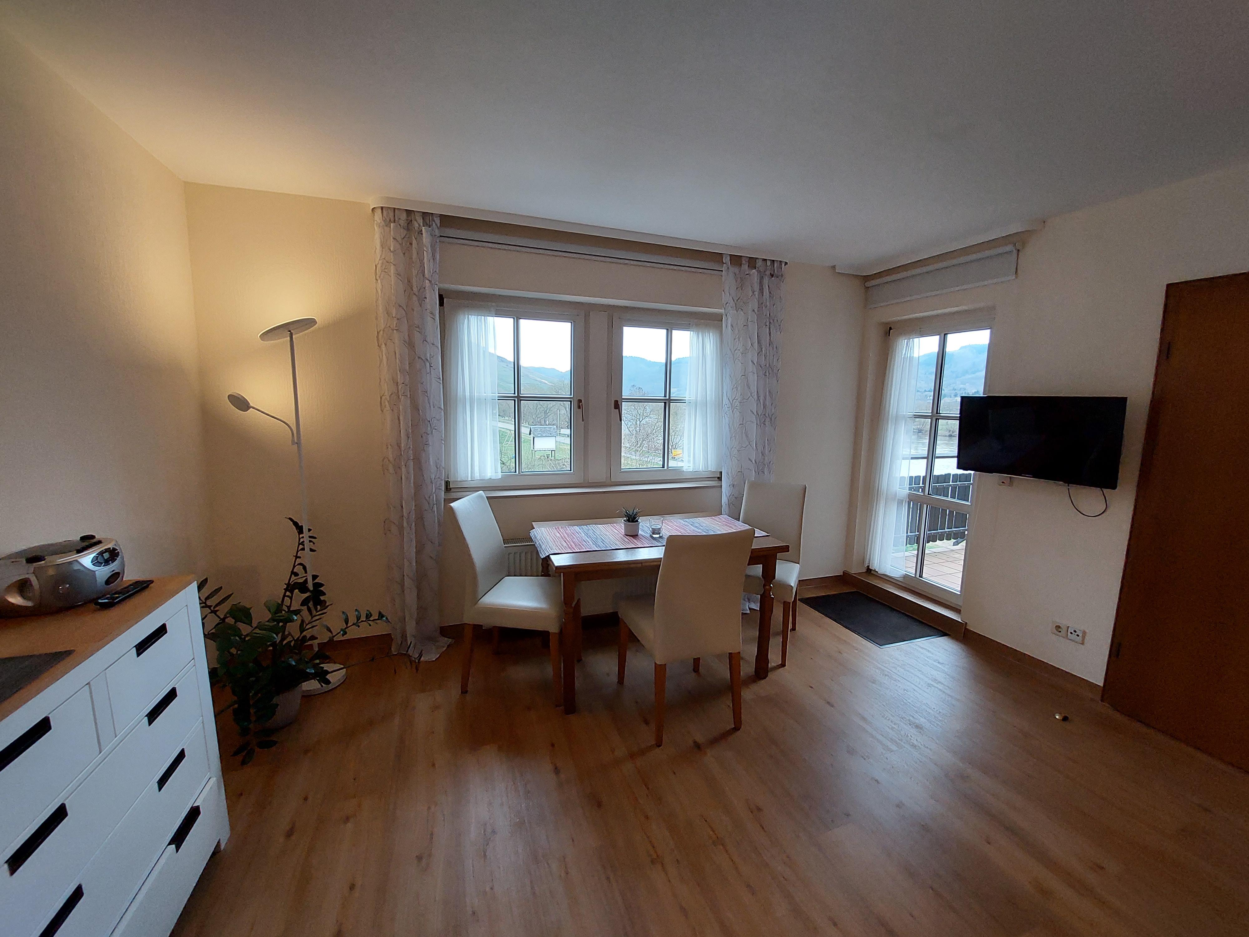 Gleich hinter dem Haus befindet sich die bekannte Weinbergslage Niederberg. Unsere gemütlichen Fewos verfügen über einen Balkon mit Moselblick, Wohn-, Esszimmer, Schlafzimmer, Küche und Badezimmer mit DU/WC.