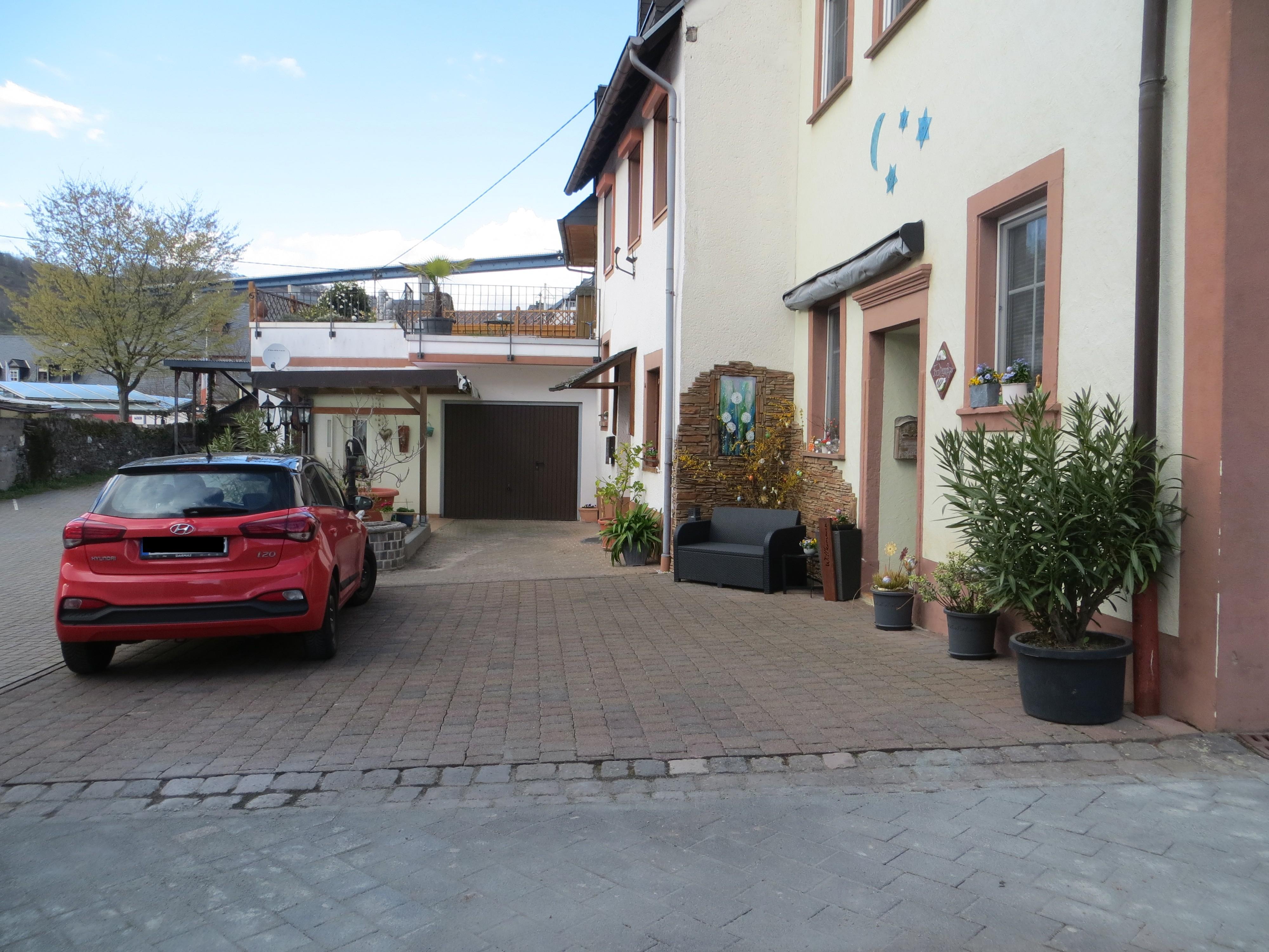 Zur Ferienwohnung gehört ein PKW-Stellplatz und eine kleine gemütliche Sitzecke vor dem Haus.