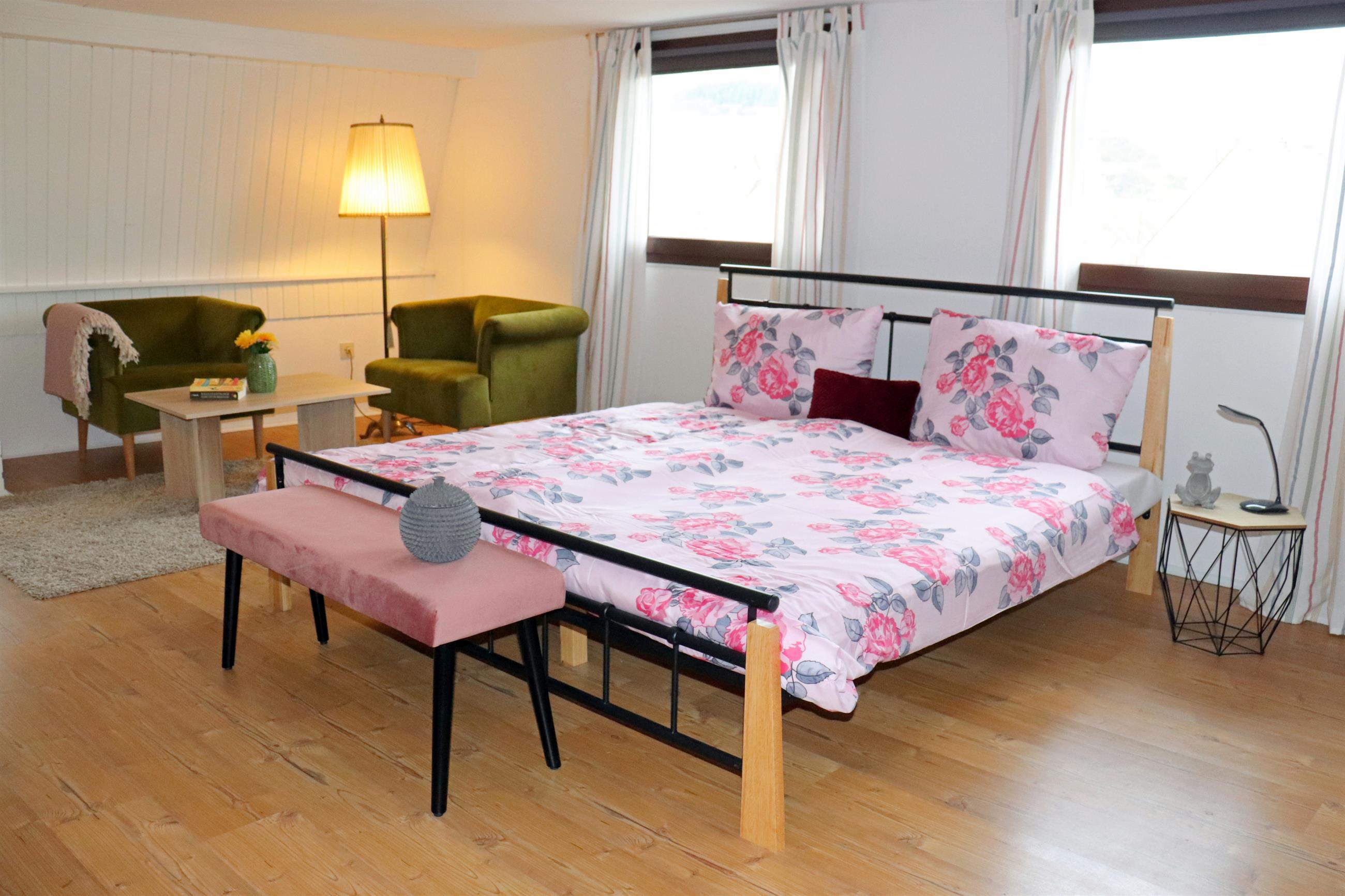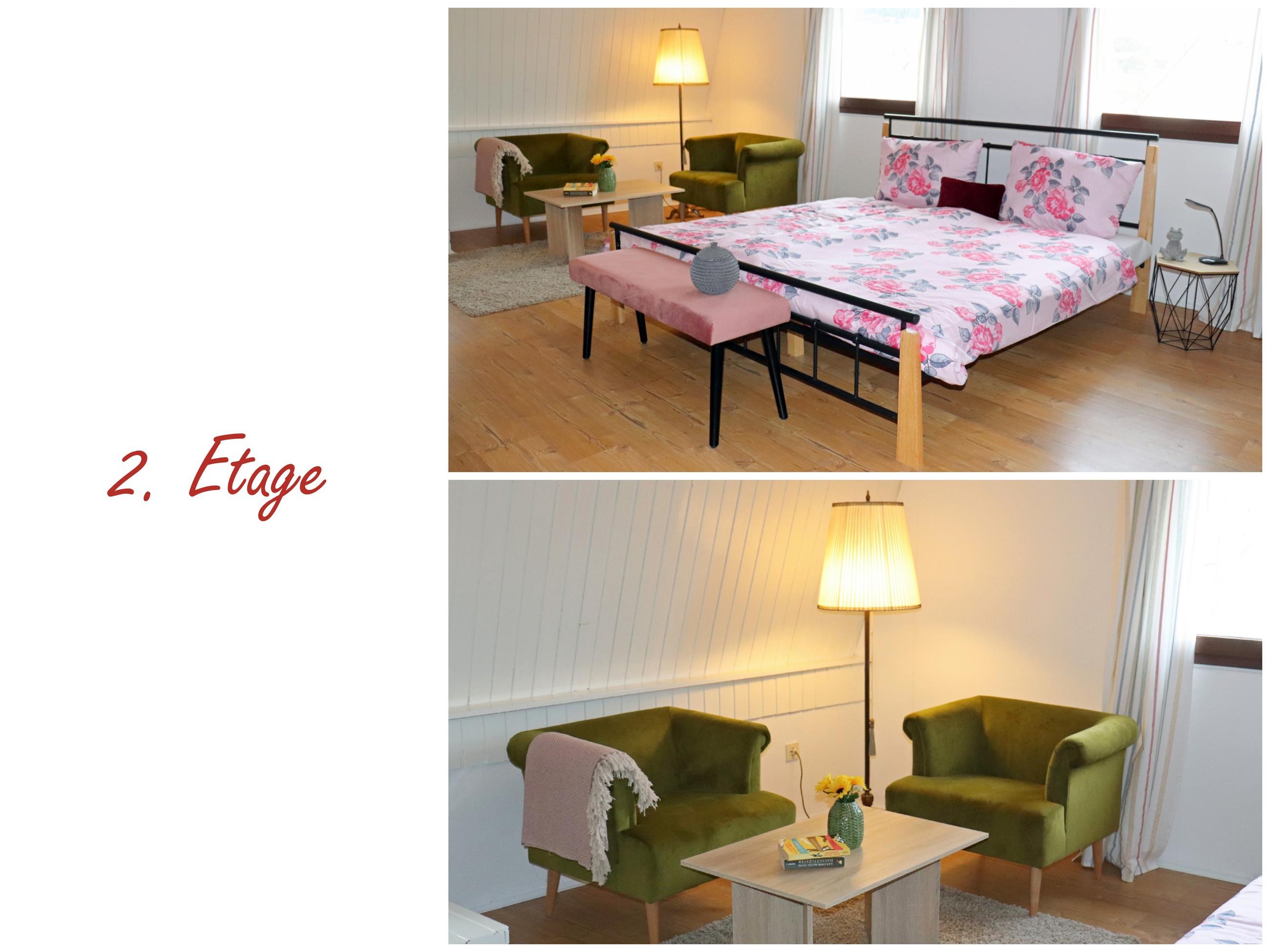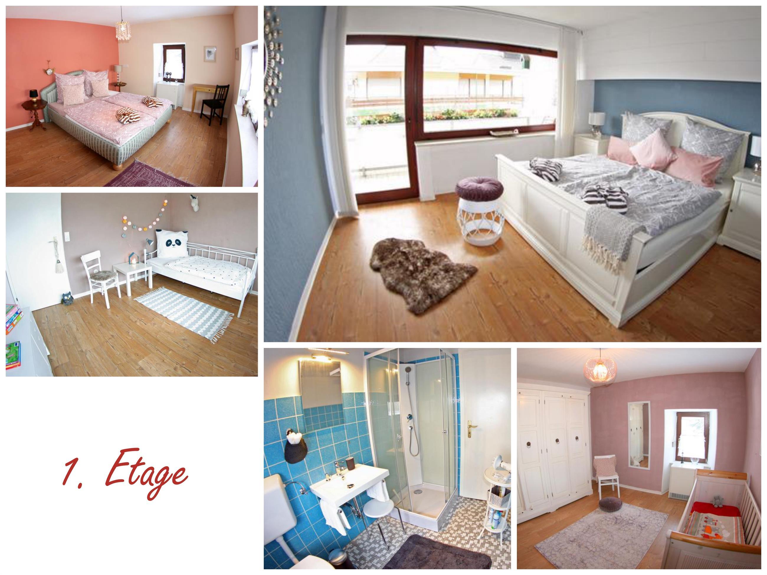 Auf der ersten Etage befinden sich zwei gemütlich eingerichtete Schlafzimmer mit Doppelbetten. Für eine angenehme Schlafposition sind die Kopfteile höhenverstellbar. Des weiteren ein Kinderzimmer mit Einzelbett, ein Ankleidezimmer, sowie ein Bad mit Dusche/WC und Fön.