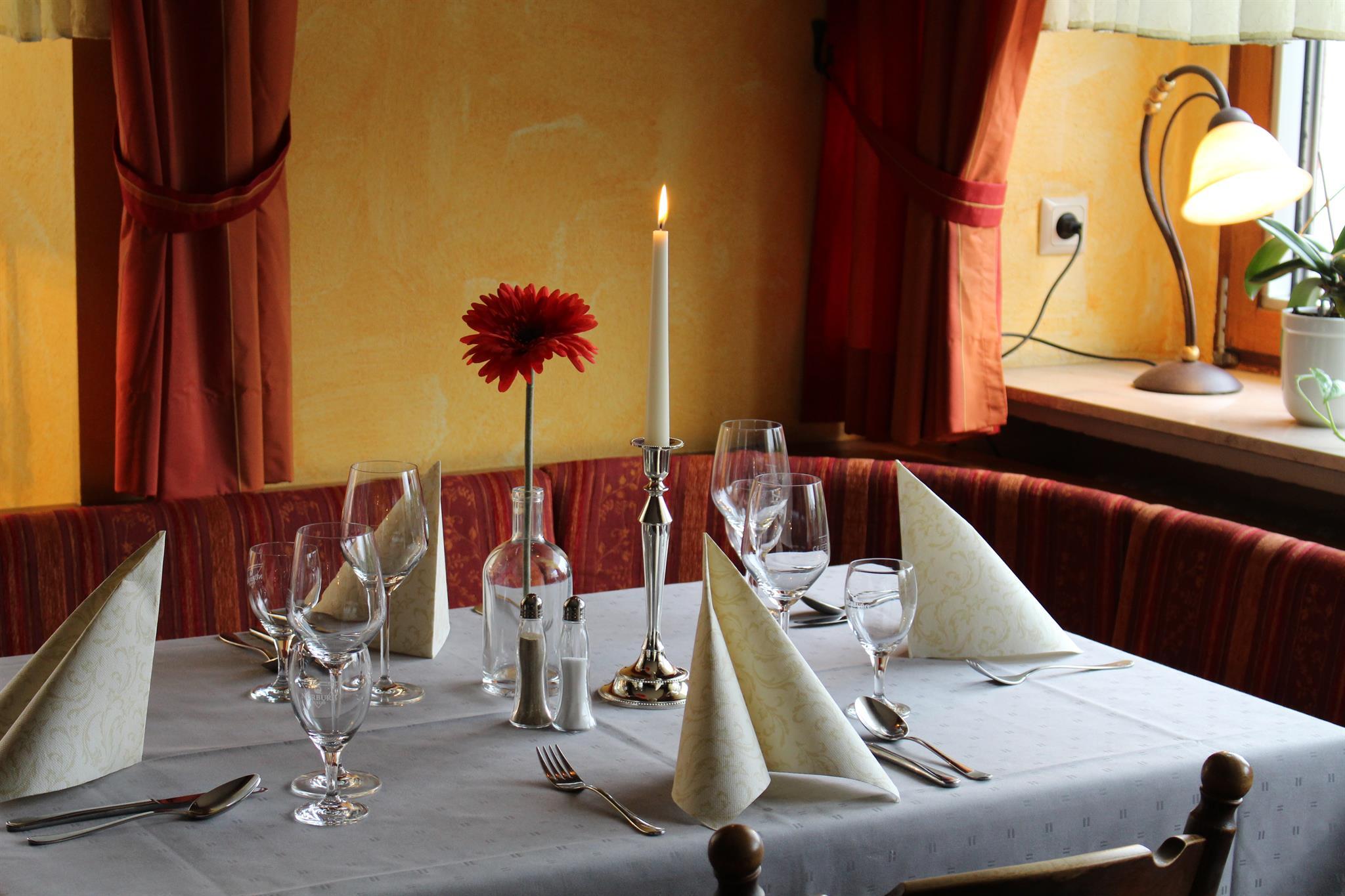 Wir bieten ein reichhaltiges Frühstücksbüffet, eine kleine Abendkarte und im Rahmen der Halbpension ein 3-Gang-Menü mit zwei Hauptgängen zur Auswahl.