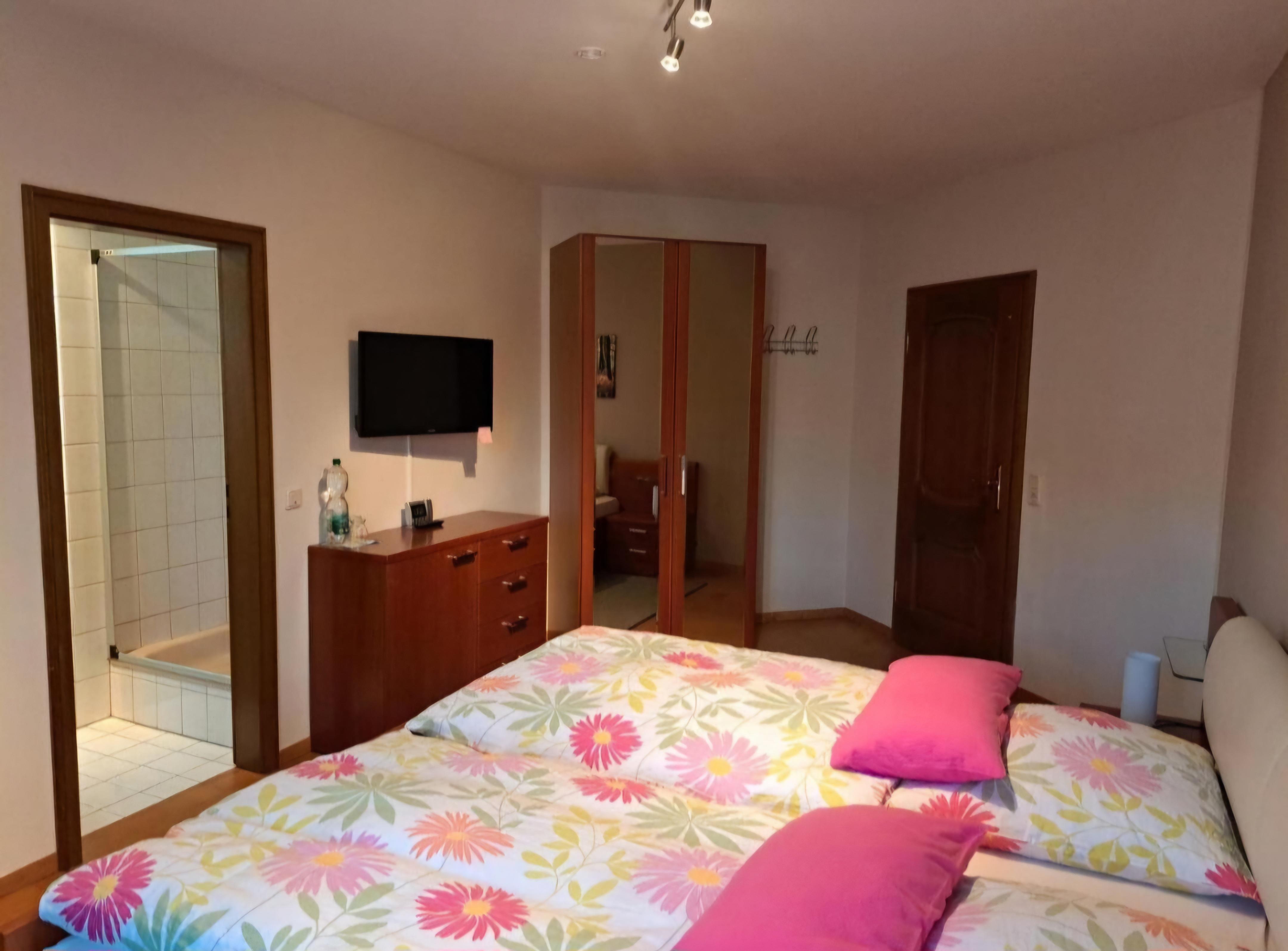 Die 3 geräumigen Zimmer verfügen über Dusche, WC, Sitzecke und Fernseher. Das Haus ist eine Nichtraucher Pension. Parkplätze sind direkt vor der Tür und kleine Haustiere bis 10 Kg nach Anfrage möglich. Die Mosel ist fußläufig gut zu erreichen. Jeden morgen erwartet Sie ein reichhaltiges Frühstück.