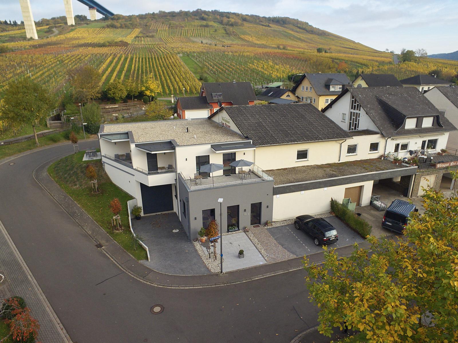 Neuerbautes, modernes Gästehaus neben dem Weingut, direkt in den Weinbergen, am Ortsende von Rachtig. Drei Doppelzimmer und ein Einzelzimmer, alle mit großer Terrasse. Barrierefreie Ferienwohnung für 2-4 Personen. Großzügiger Frühstücksraum. Lift, Parkplätze.