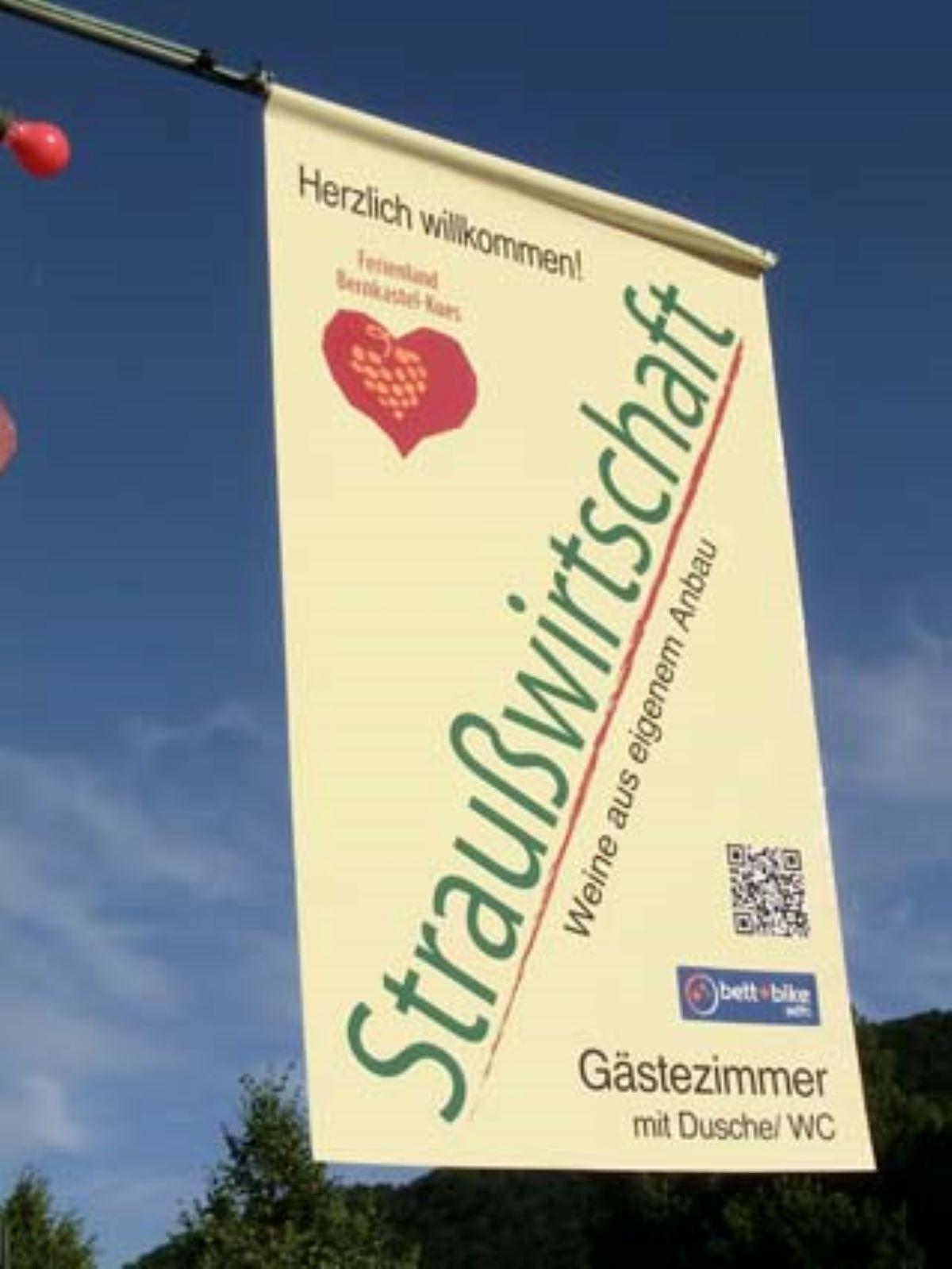 Sie finden uns direkt an der Mosel, gegenüber Minigolf und Spielplatz. In der Straußwirtschaft und im romantischen Innenhof können Sie unsere Weine und einen kleinen Imbiss genießen. Lift vorhanden.