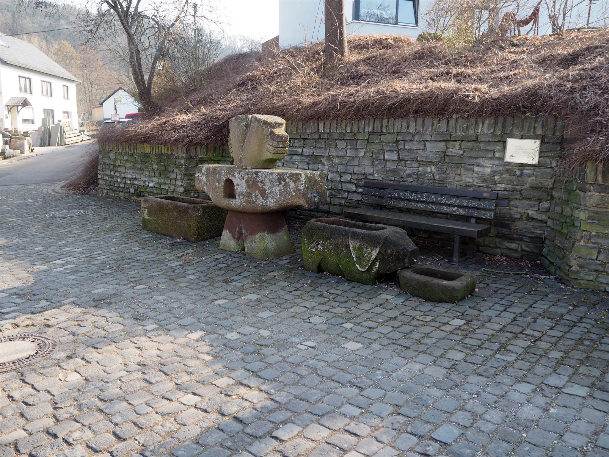 St. Blasius-Brunnen des Bildhauers Scherl, der 1987 restauriert wurde. Der obere Teil des Brunnens stellt eine Getreideähre dar, die einen Hinweis darauf gibt, dass der Ort Krames ursprünglich überwiegend landwirtschaftlich ausgerichtet war. Diesen Bezug nimmt auch der links angebrachte steinerne Trog und das rechts befindliche symbolisierte Schwein, in den sich das Wasser ergießt. Den Namen erhielt der Brunnen vom Schutzheiligen von Krames, dem auch die Kirche geweiht ist.
