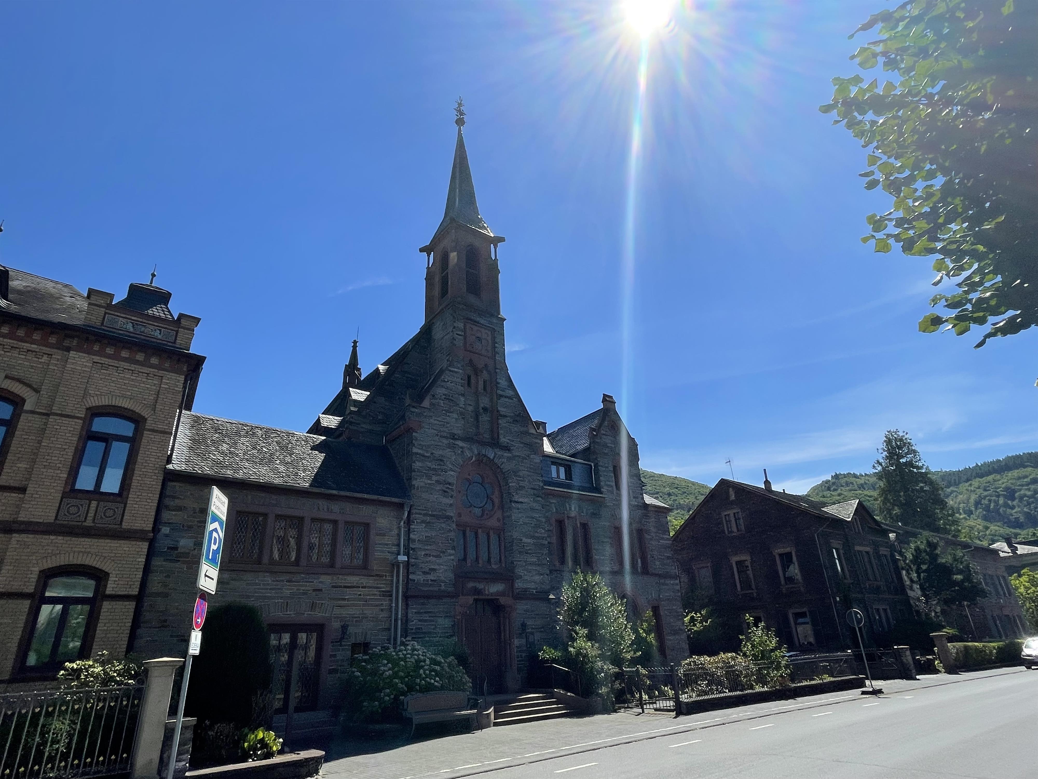Die evangelische Kirche in Bernkastel-Kues befindet sich im Stadtteil Kues, ca. 5 Gehminuten von der Moselbrücke entfernt. Hier befindet sich auch die Bücherei.