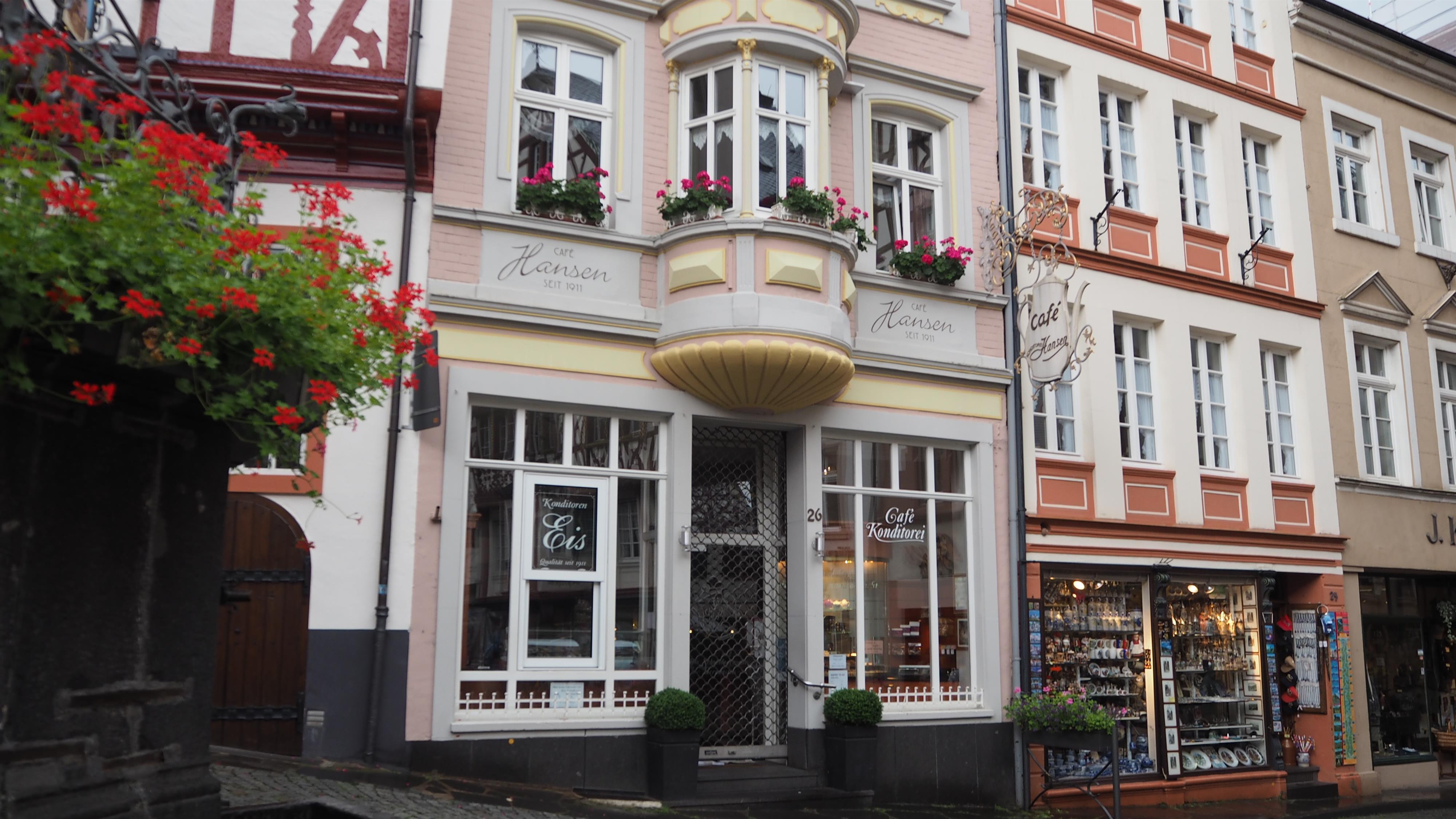 Seit 1911 befindet sich das historische Jugendstilhaus am Marktplatz von Bernkastel im Besitz der Familie Hansen. Zu Beginn erwarb Hilarius Hansen das Haus als Bäcker. dessen Sohn Klaus Hansen und seine Frau Beatrix verwandelten den Betrieb mehr und mehr zur Café-Konditorei. Norbert Hansen und seine Frau Konstanze ergänzten das ganze durch eine eigene Konfiserie. Seit 5 Jahren steht die 4. Generation Wencke Hansen zusammen mit ihrem Vater für den Betrieb. Torten, Schokoladen, feinstes Gebäck und Pralinen werden weiter in der hauseigenen Konditorei hergestellt.