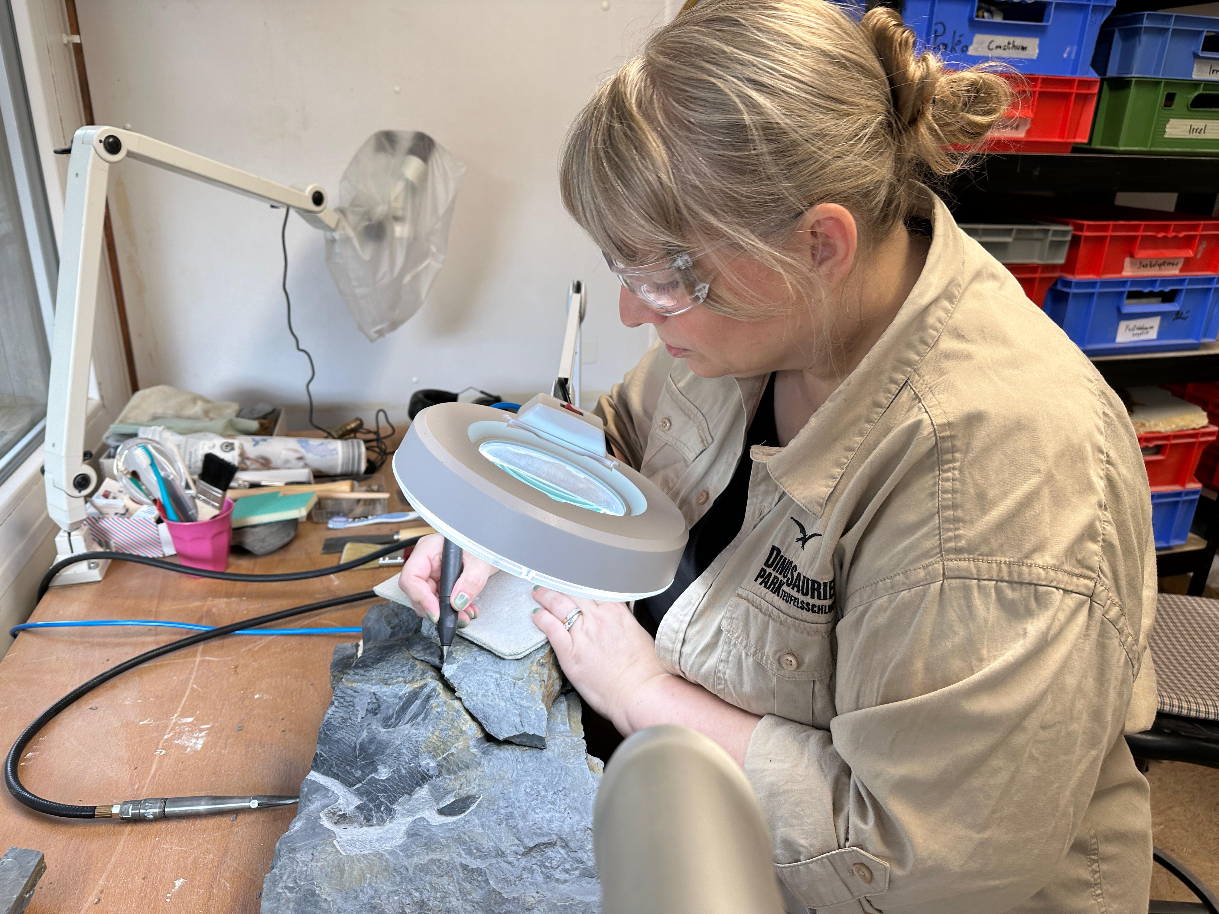 Entdecke Fossilien selbst: Spalte eine Kalksteinplatte oder öffne mit Hammer und Meißel eine Geode – dein ganz persönlicher Kristallschatz wartet! Im Forschercamp und dem PALEO LAB erlebst du Wissenschaft hautnah und kannst echten Paläontologen bei der Arbeit über die Schulter schauen.