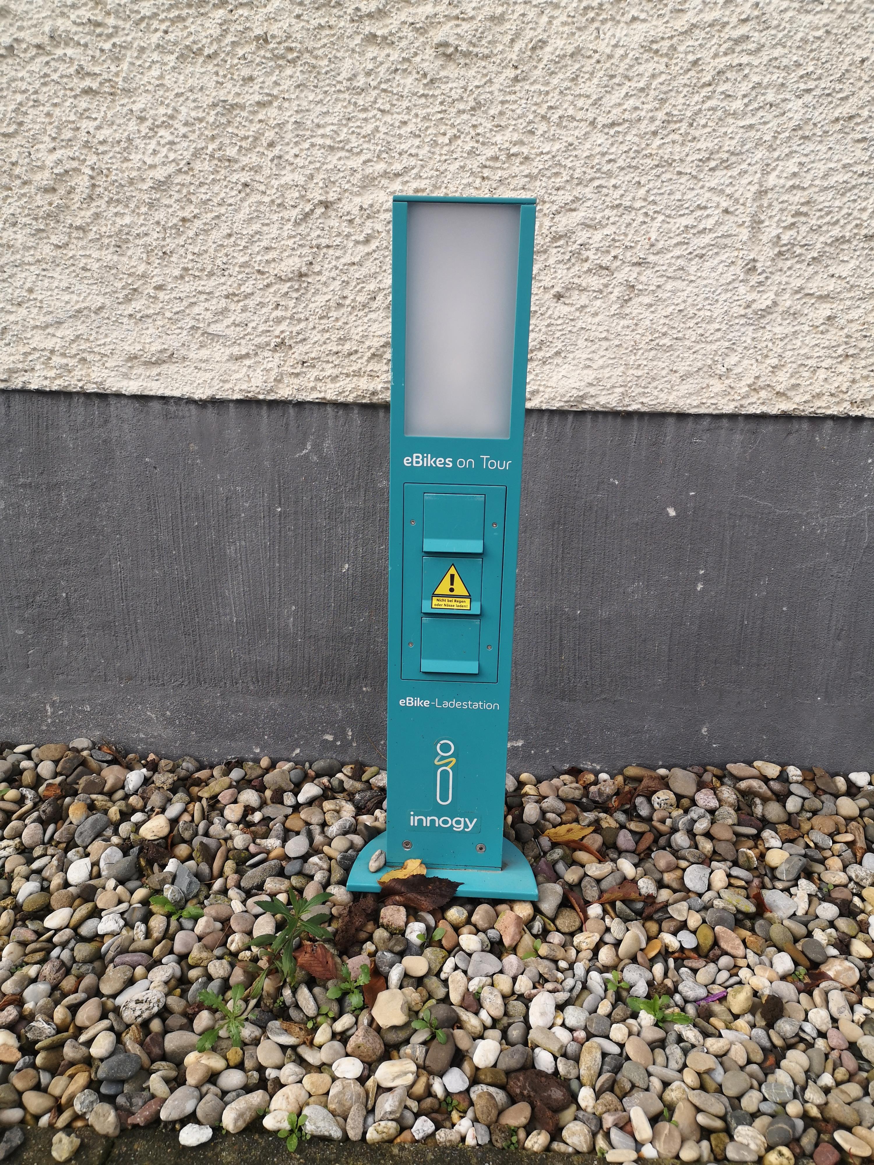 Die E-Bike Ladestation in Burgen befindet sich am Gemeindehaus/Verkehrsbüro, Am Frohnbach 21
