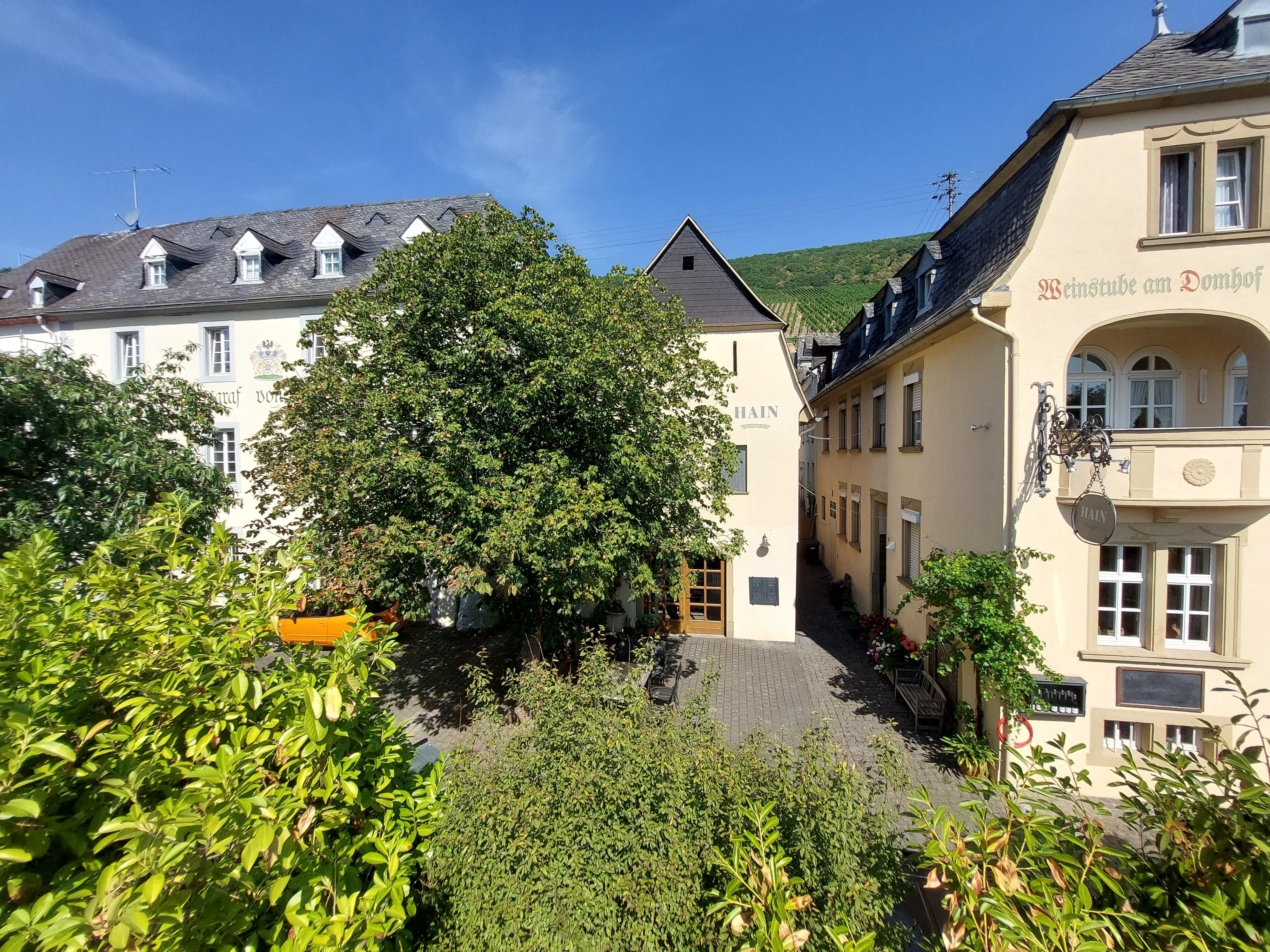 Im Mittelalter hatte die „Hohe Domkirche“ zu Trier viele Besitztümer. Eine besondere Stellung nahm die Benediktiner-Abtei Mettlach mit ihrem Hof bei der „Allerheiligen-Kapelle“ im ehemaligen Müstert ein. Sie übertrug im Jahre 1219 dem Trierer Domkapitel das Patronatsrecht in Piesport St. Michael mit einem Drittel der „Zehntabgaben“. Durch Schenkungen und den Kauf von Weinbergen und Ländereien vergrößerte sich das Vermögen. Es entstand ein stattlicher „Domhof“. Im Jahr 1721 erreichte das Anwesen eine imposante Größe und wurde in einem Lageplan als Domhofs-Gehäus“ bezeichnet. Es ist ein Beispiel für großzügige barocke Architektur. Die Piesporter Weinlagen „Domherr“ und Dompichter“ sowie die Straßenbezeichnung „Am Domhof“ erinnern noch heute an das Gut des Trierer Domkapitels.