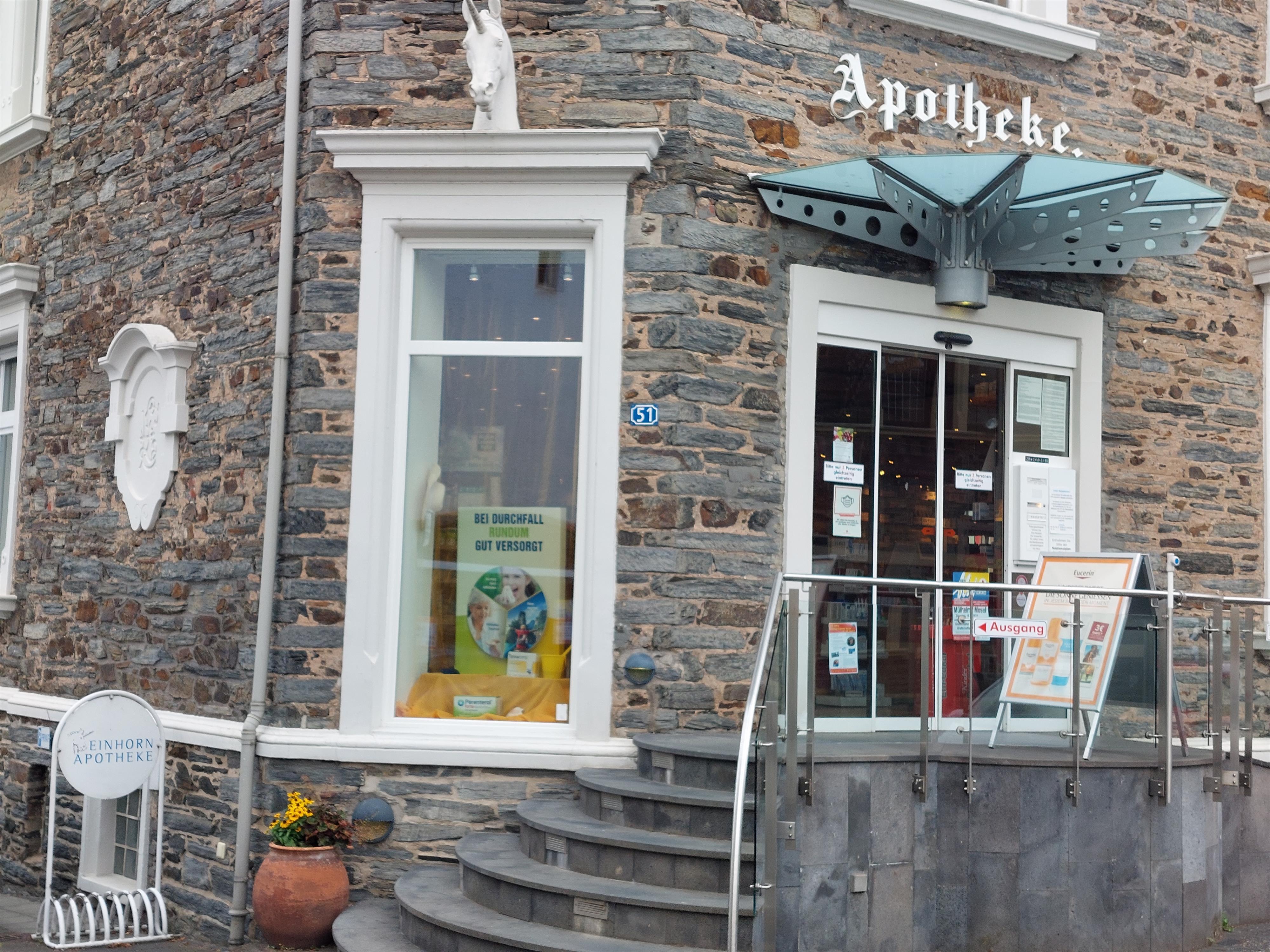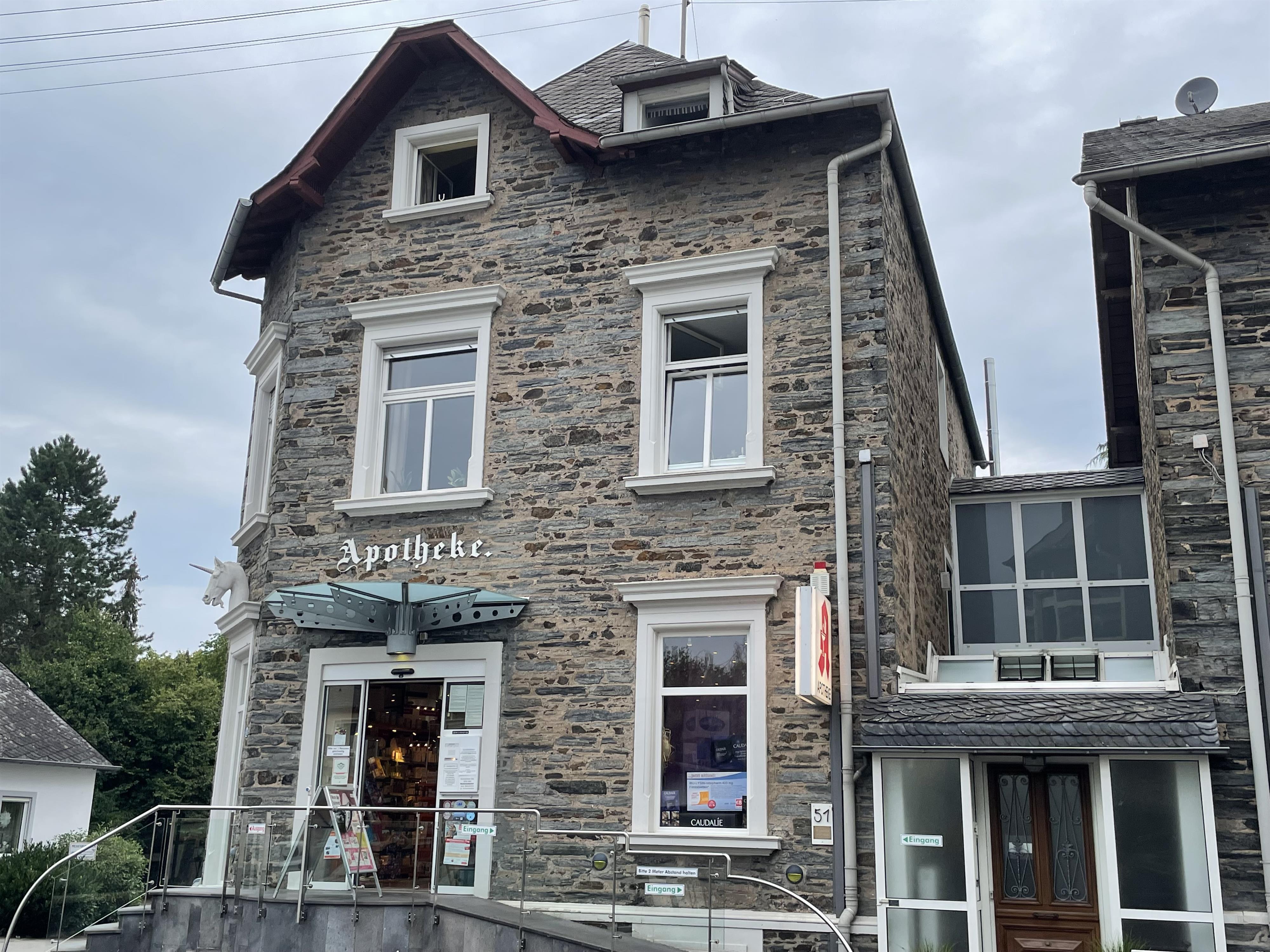 Wir sind eine in der 4. Generation geführte, seit 2004 QMS-zertifizierte Apotheke im Zentrum von Mülheim an der Mosel. Ihre Gesundheit und Zufriedenheit steht für uns an oberster Stelle. Deshalb können Sie sich bei uns jederzeit von bestens ausgebildeten Mitarbeitern umfassend beraten lassen. Wir sind bekannt für unser weit gefächertes Warensortiment, bestehend aus klassischen, homöopathischen und pflanzlichen Arzneimitteln, Nahrungsergänzungsmitteln, Kranken- und Pflegehilfsmitteln, Tierarzneimitteln, Inkontinenzprodukten, Kosmetik...usw.