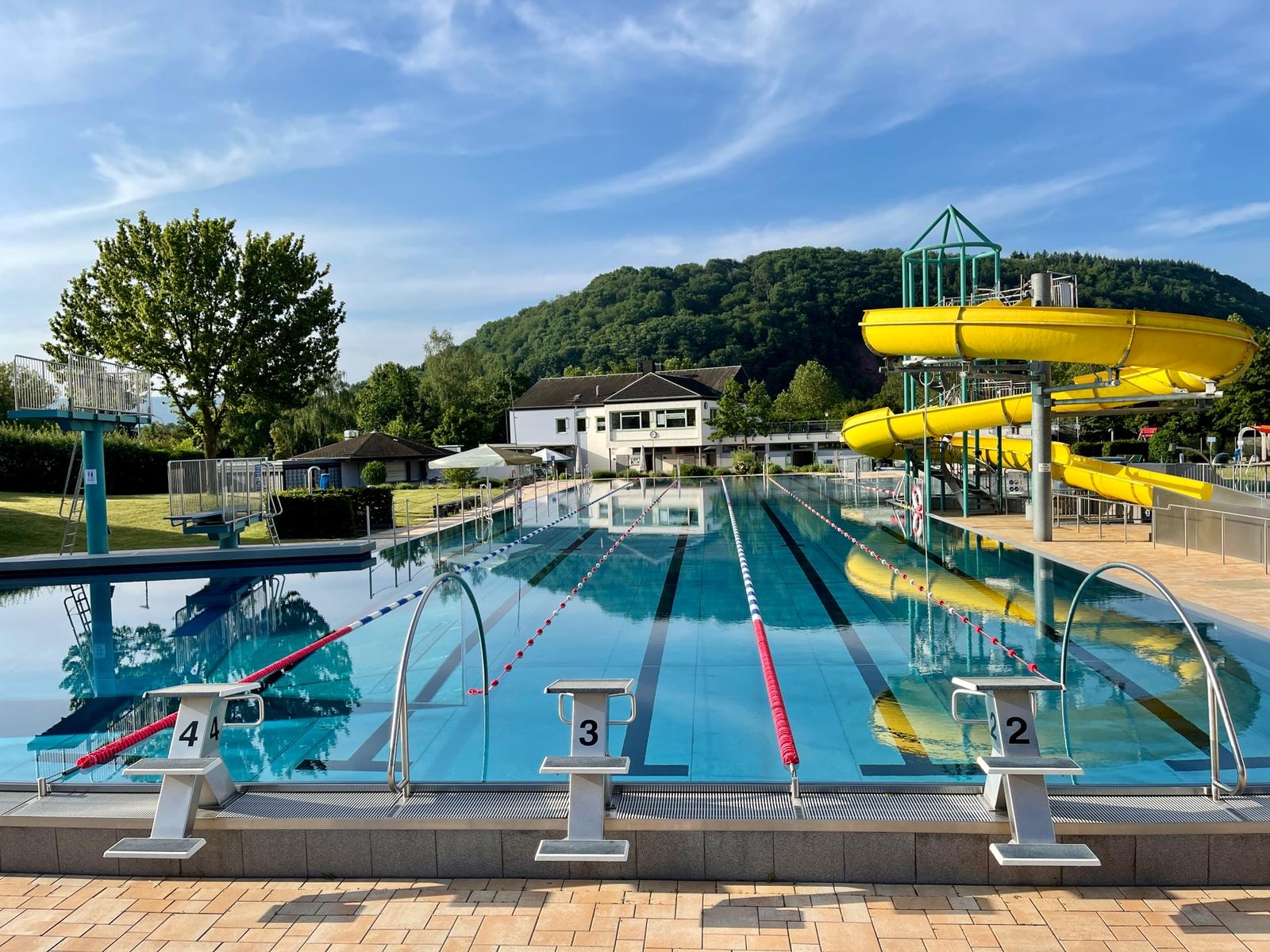 Rasanter Wasserspaß erwartet die Gäste auf der 52 Meter langen Riesenrutsche sowie der breiten Kinderrutsche. Sportlich Aktive kommen im 50-Meter-Edelstahlbecken mit separatem Nichtschwimmer- und Springerbereich auf ihre Kosten. Kleine Wasserratten können sich im übersichtlichen Edelstahlbecken mit Sonnensegel und Duschclown nach Herzenslust austoben.