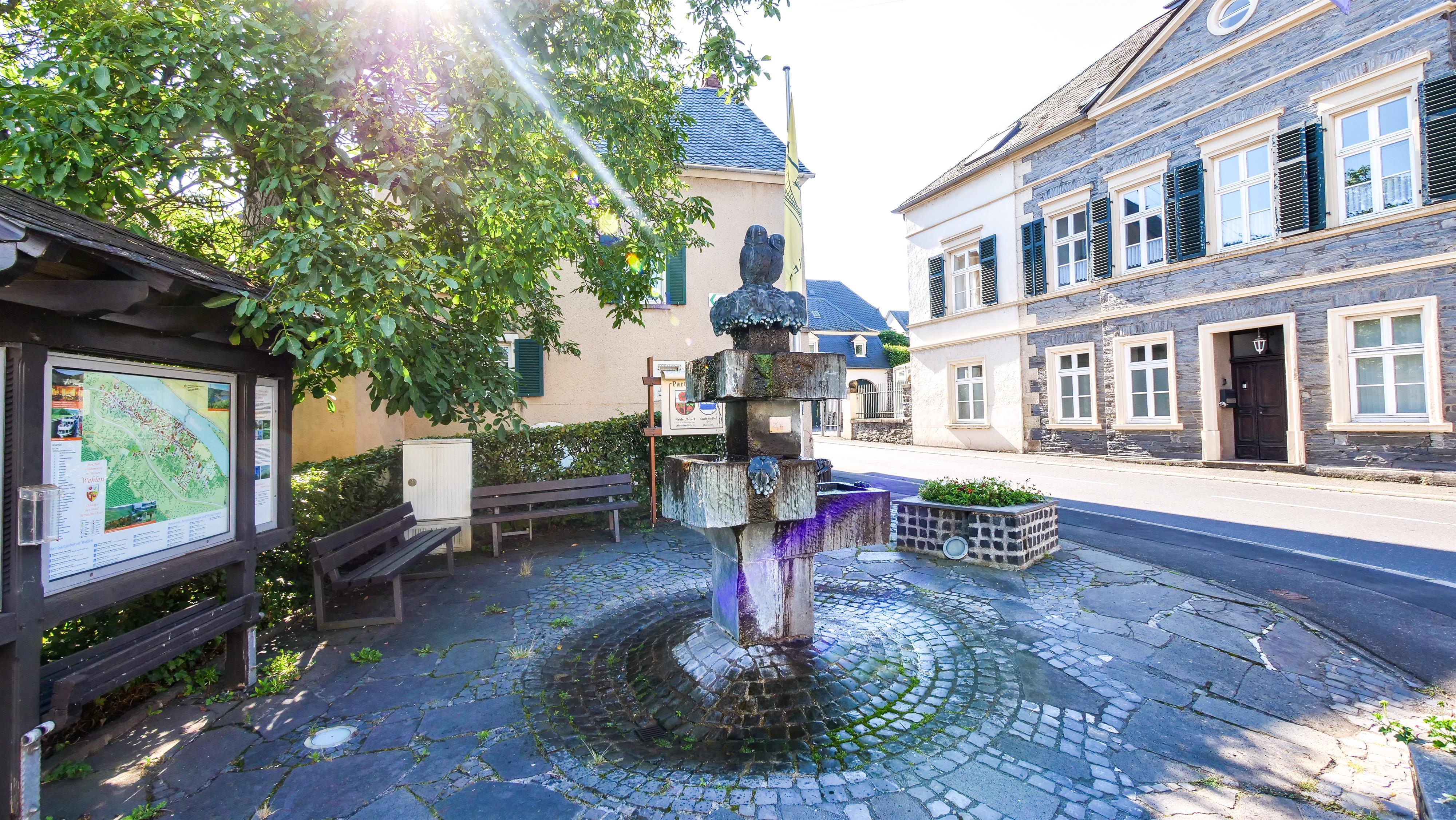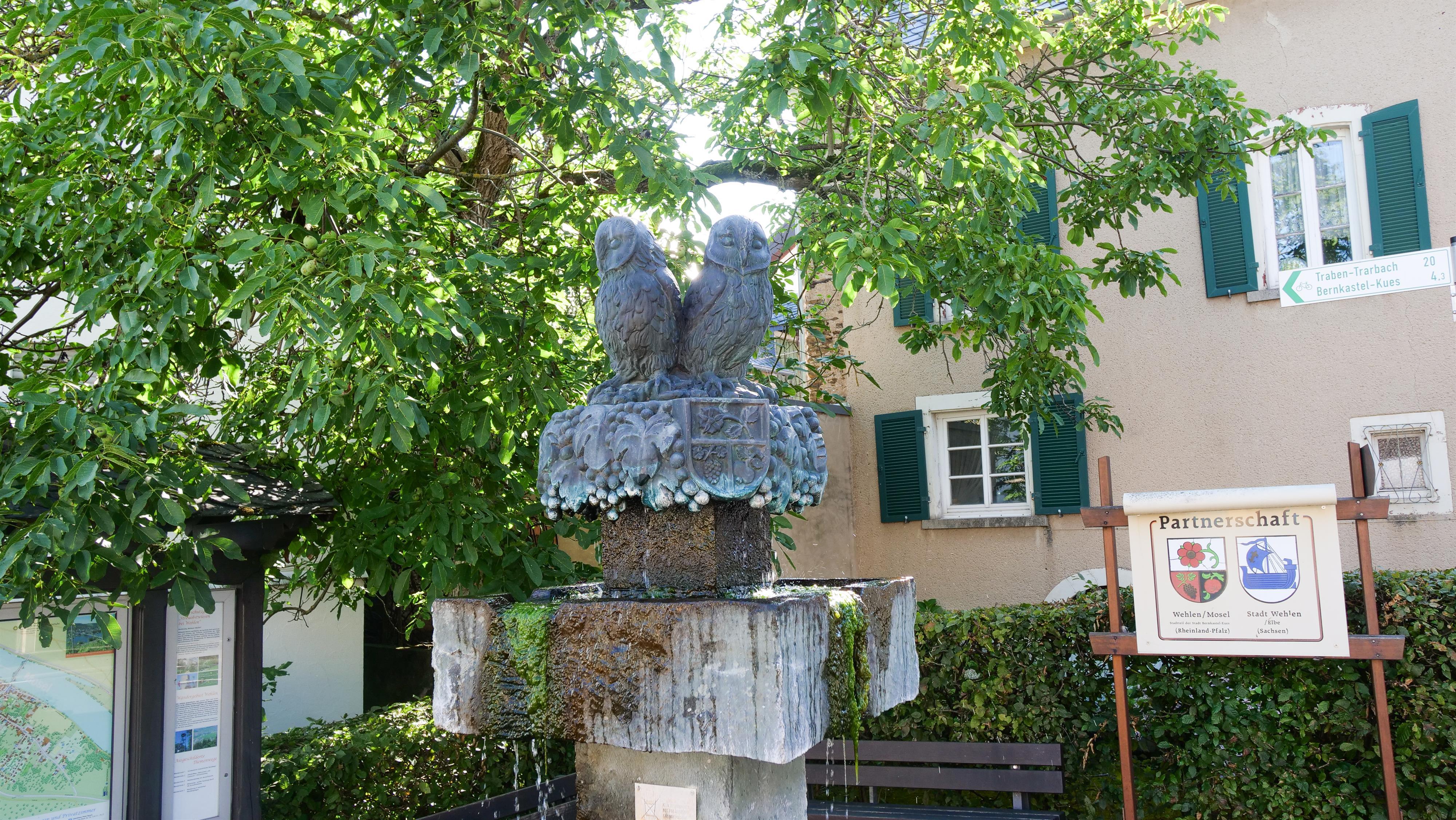 Den Eulenbrunnen finden Urlauber an der Mosel im Weinort Wehlen, einem Stadteil von Bernkastel-Kues.