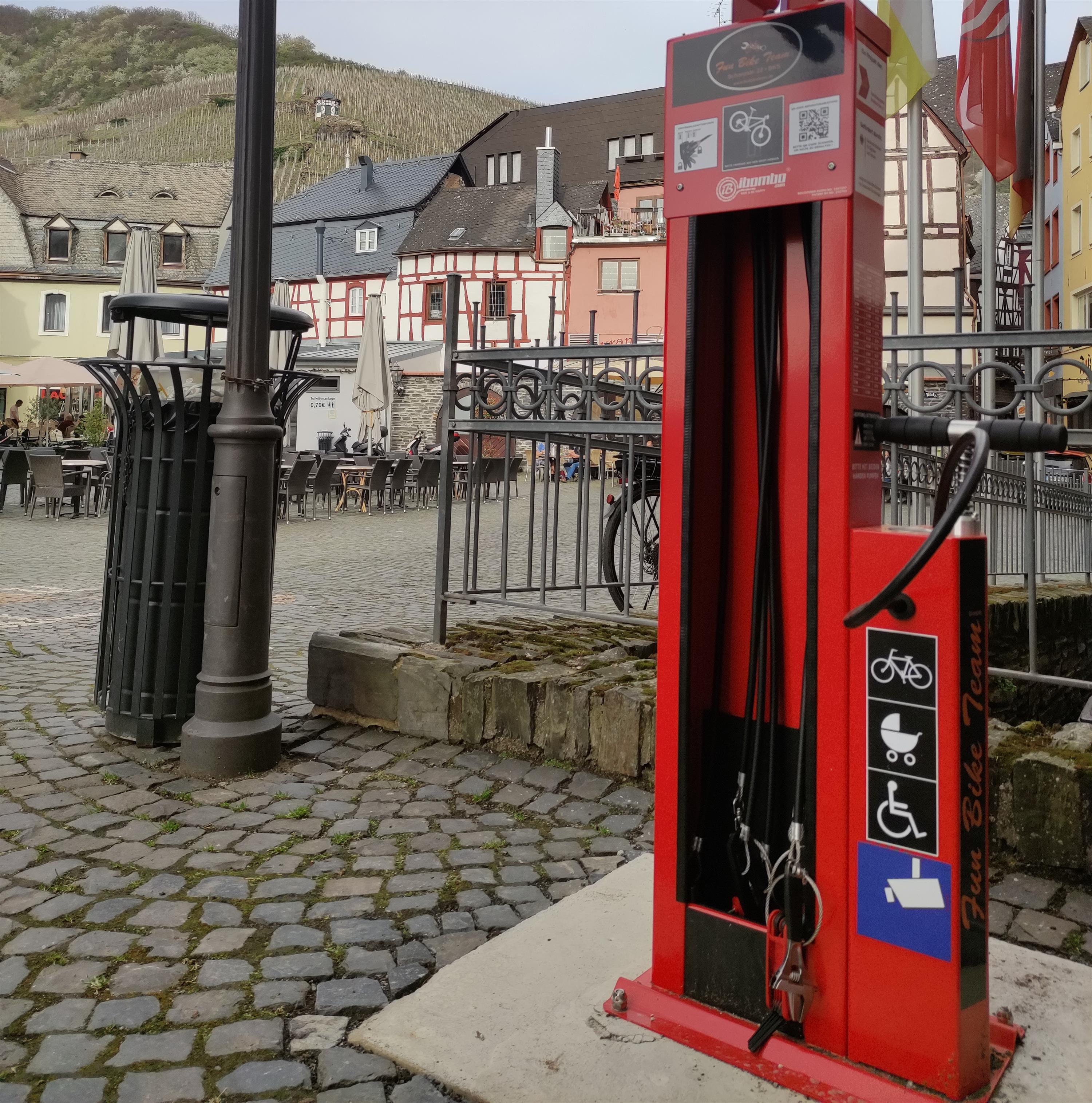 Fahrrad Reparaturstation am Eingang zum Karlsbader Platz in Bernkastel-Kues.