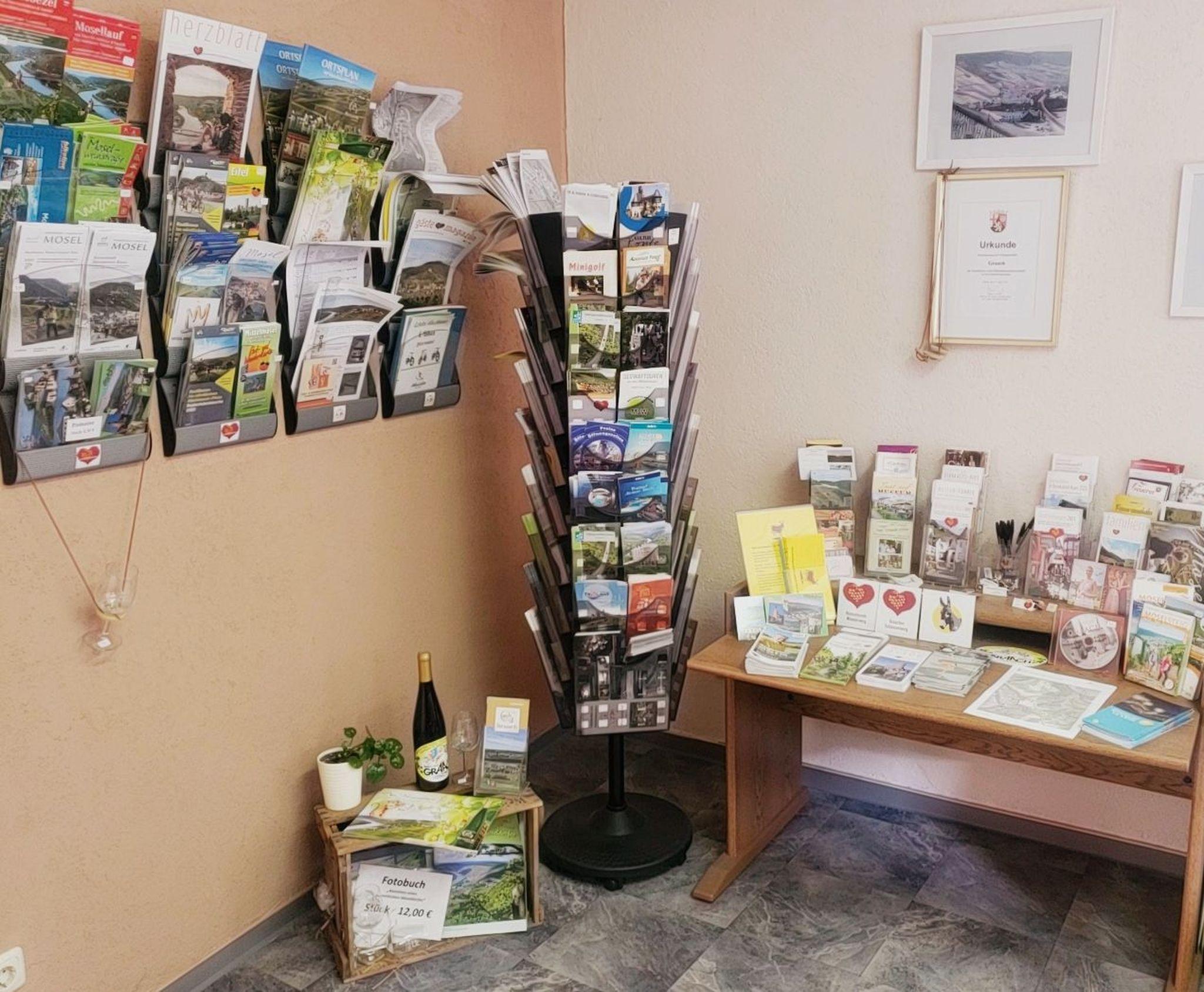 Auf Wunsch hilft es auch bei der Planung von Weinerlebnis-Wochenenden, Tages-, Wander- und Radtouren sowie der Organisation von Schiffs- und Busausflügen. Im Verkehrsbüro gibt es außerdem Informations- und Prospektmaterial von Graach/Schäferei und den umliegenden Orten.