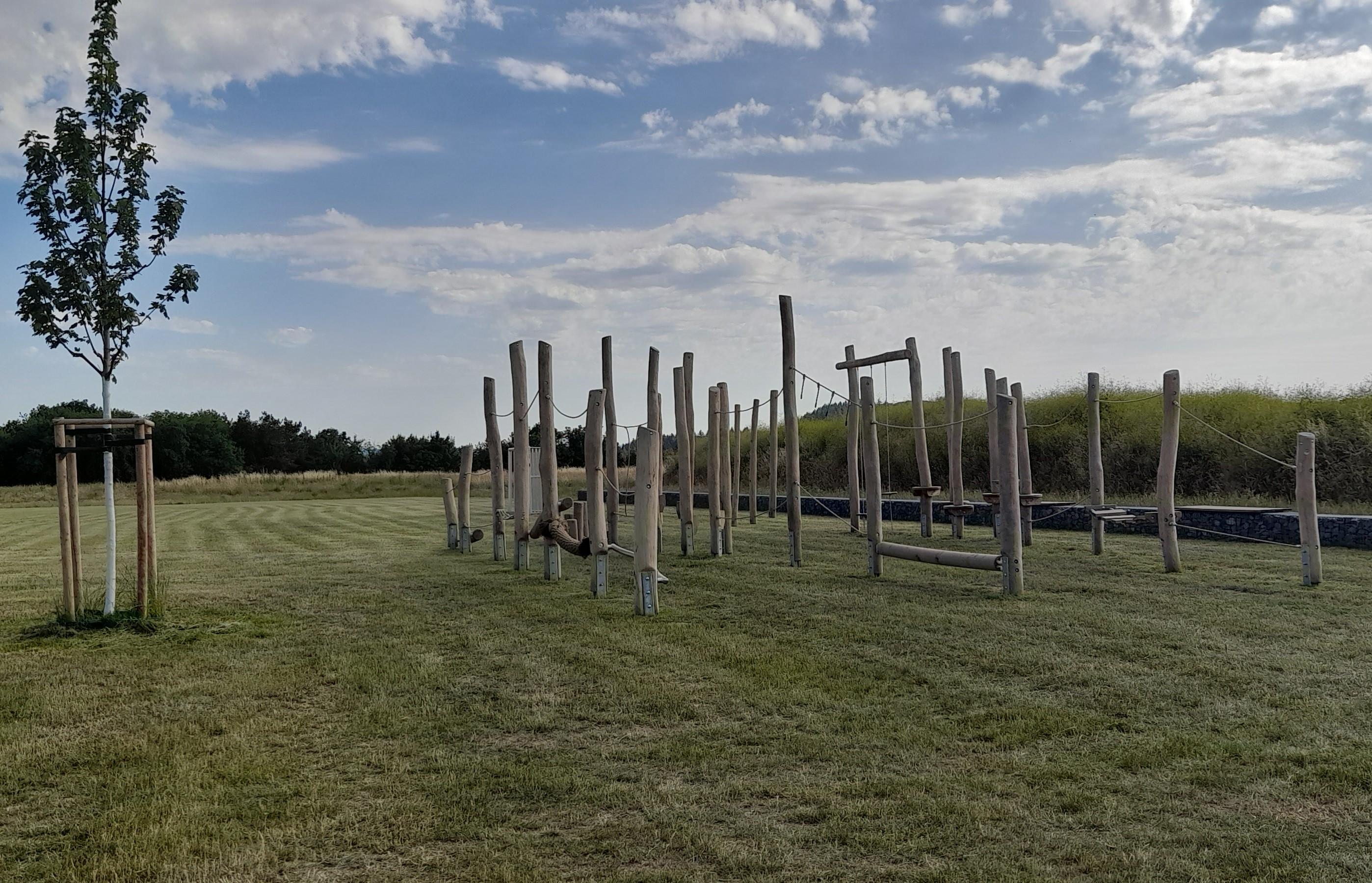 Freizeitanlage auf dem Zeltinger Berg mit Grillstelle, Spielplatz, Fußballplatz, Zeltfläche, Parkplätze und Toiletten.