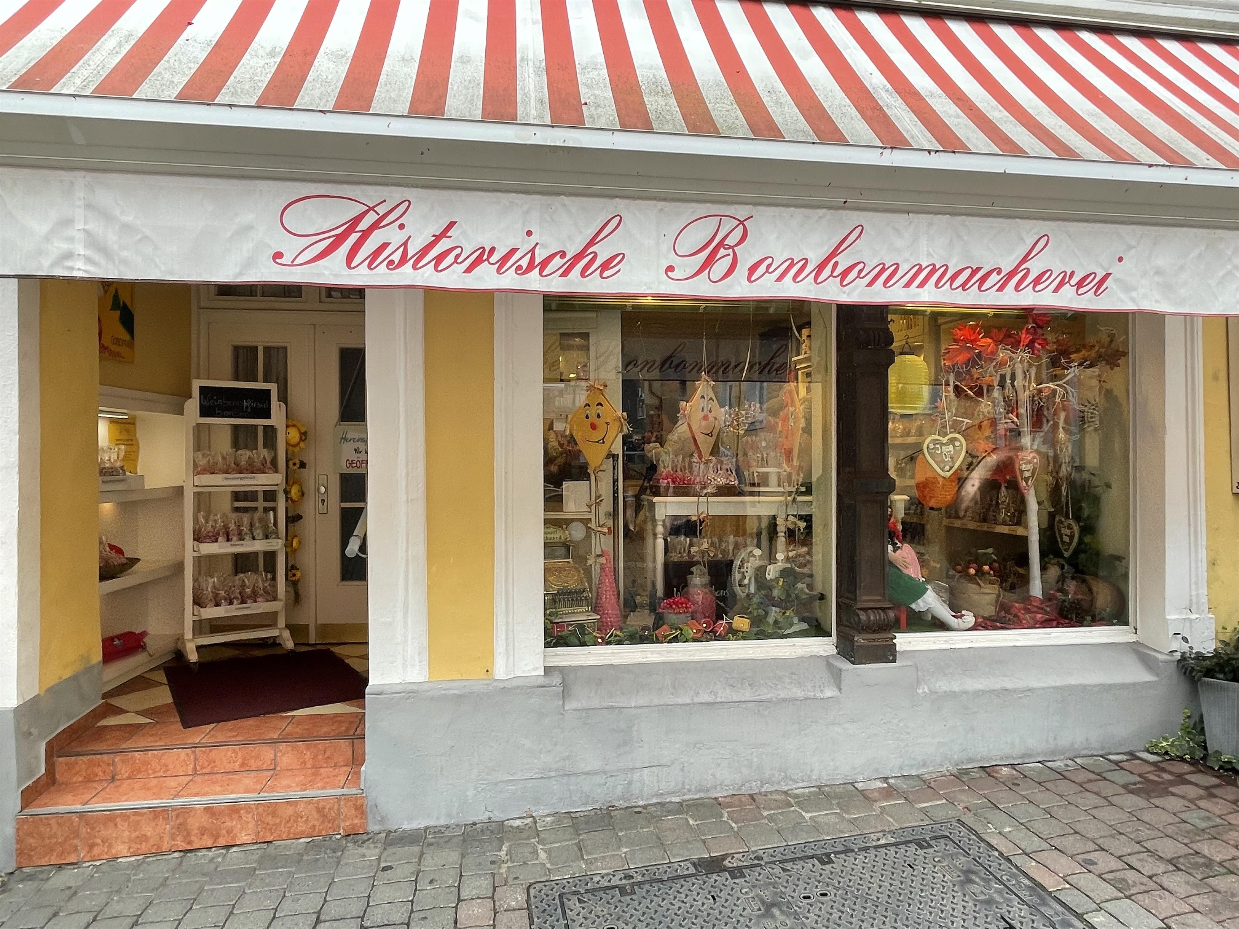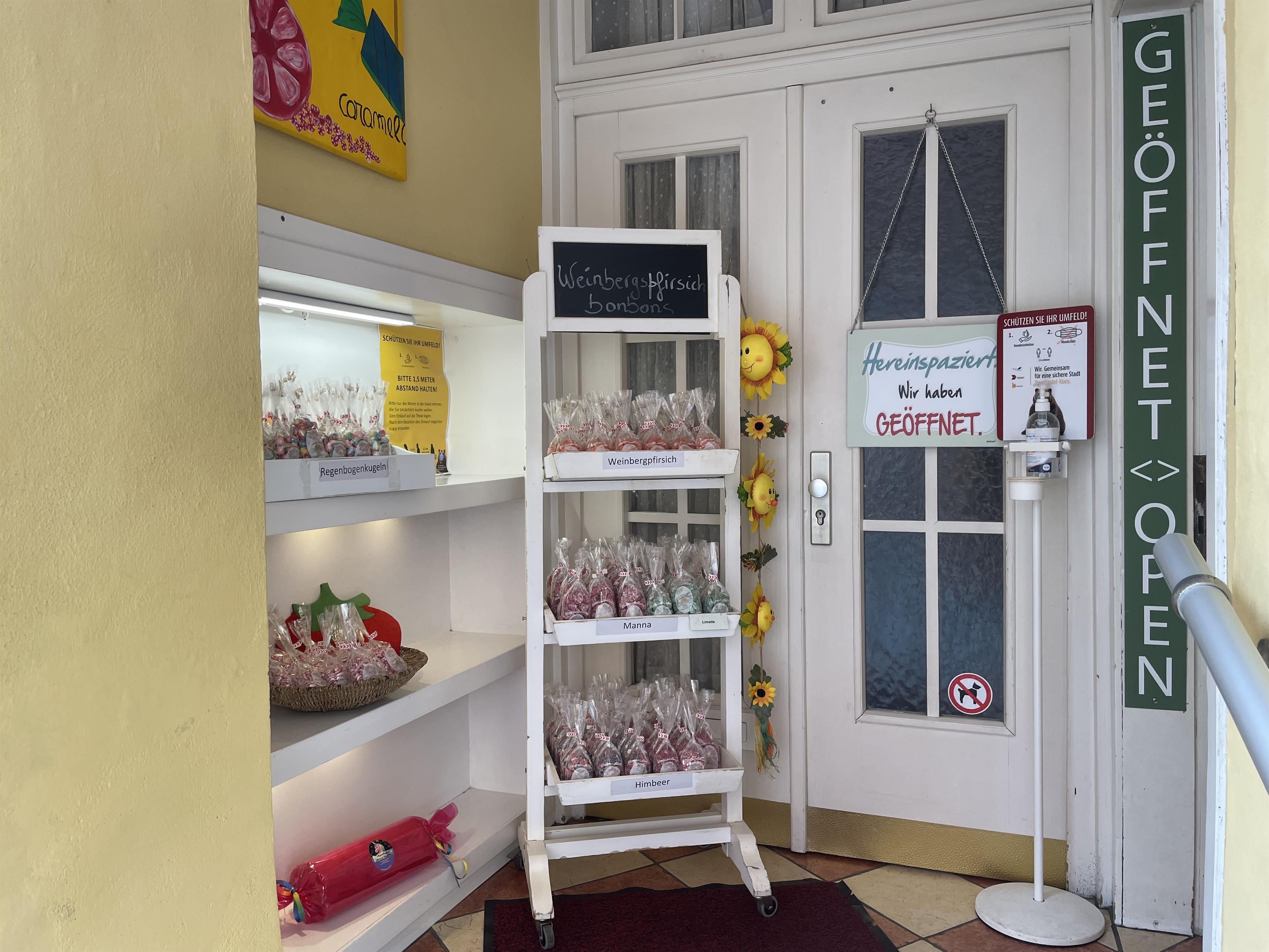 In dem gemütlichen Bonbonladen herrscht eine gute Stimmung und man fühlt sich in die Kinderjahre zurückversetzt, wo man die Bonbons aus Gläsern einzeln kaufen konnte und wo man von der Bonbontante ein leckeres Bonbon zum Schlecken bekam.