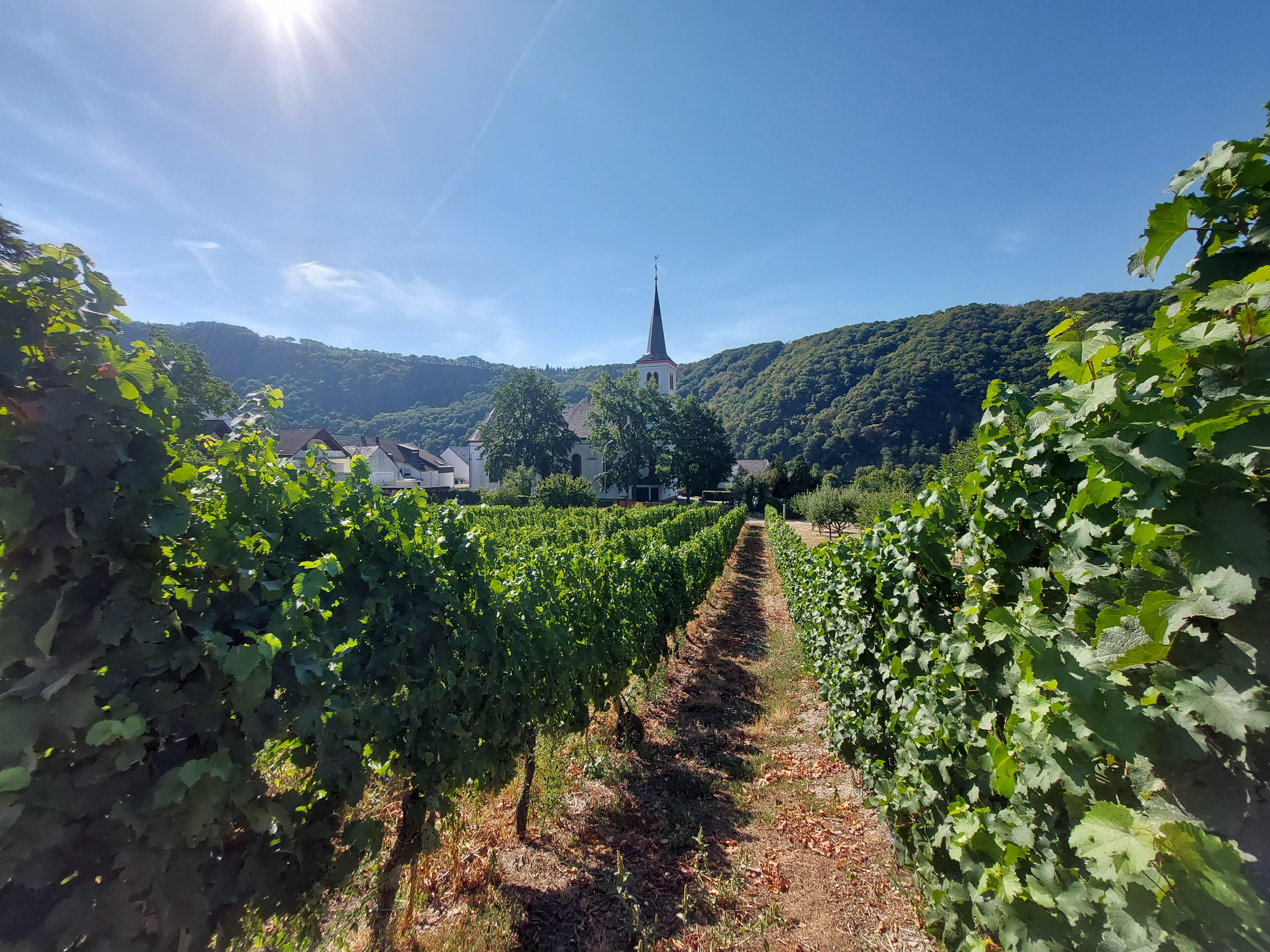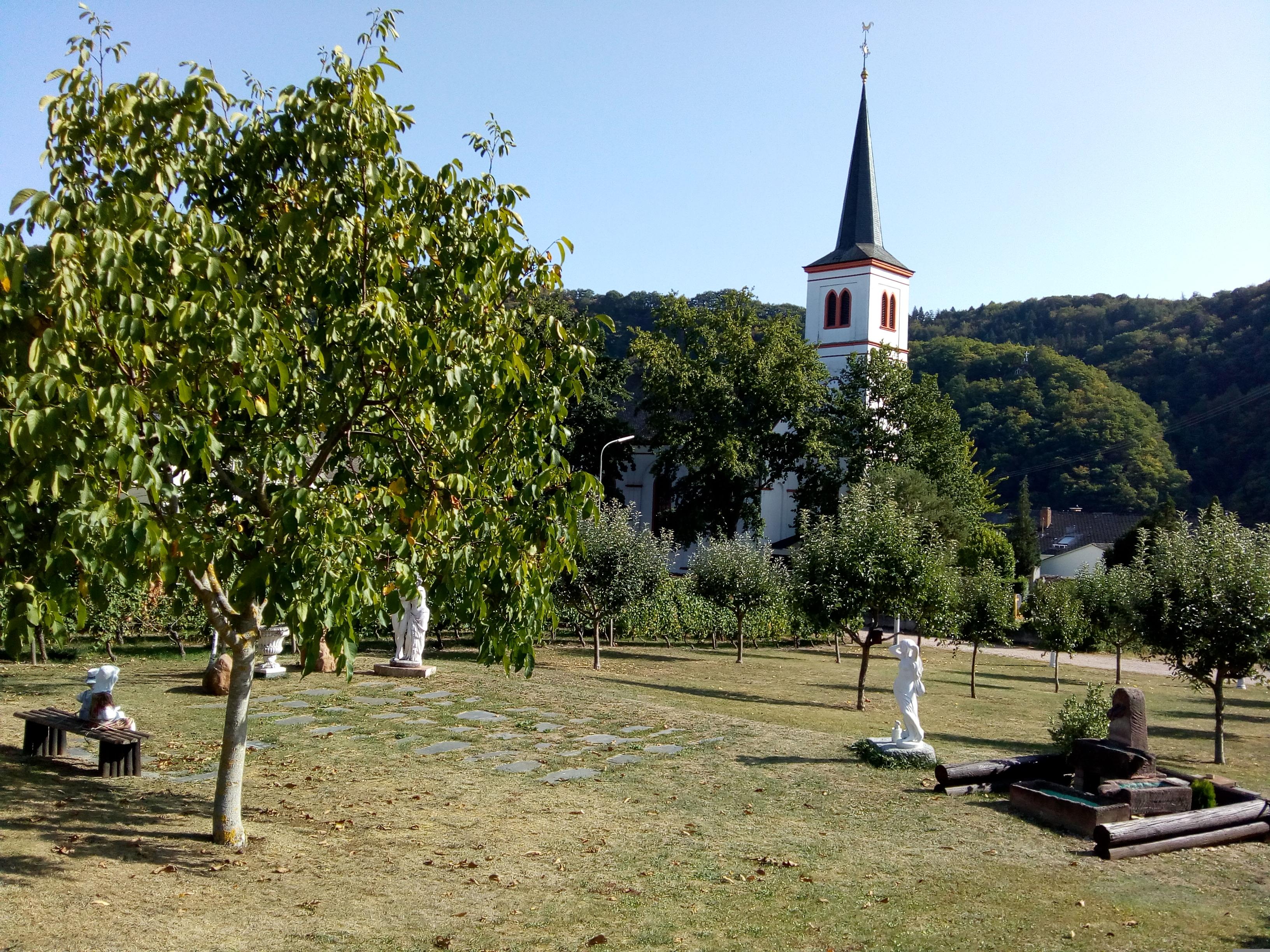Der Neubau des Minheimer Gotteshauses vor 160 Jahren stellte die Dorfbevölkerung vor eine große Aufgabe, denn die Finanzen waren spärlich. Deshalb entschlossen sich die Männer des Ortes die Ausschachtungsarbeiten der Fundamente in Eigenleistung durchzuführen; dabei stieß man am Ende des bereits abgesteckten Grundrisses auf Trockenmauerreste. Um einen günstigen Aushub der Fundamente zu erhalten, entschied man sich, das Schnurgerüst in der Längsachse zu verschieben. Dadurch wurde der Grundriss wesentlich größer als eigentlich vorgesehen. Das Innere der Kirche wird beherrscht durch die dreiteilige Altaranlage: der Chormantel mit seiner barocken Säulenarchitektur stammt aus der Trierer Stadtkirche Sankt Gangolf am Hauptmarkt und wurde 1760 angefertigt. Der Minheimer Kirchenvorstand erwarb diese künstlerische Rarität für die Pfarrkirche im Jahr 1848. Der Tabernakelaltar kam 1889 in die Kloster- und Pfarrkirche Sankt Thomas an der Kyll. 1987 konnte er in Minheim wieder mit der großen Rückwand vereinigt werden. 1964 fand eine erste Renovierung des Altarraumes statt, bei der die Säulenarchitektur farbig gefasst wurde und das Land Rheinland-Pfalz eine Barockfigur aus Marienstatt der Pfarrei Minheim schenkte, die als der zweite Kirchenpatron Hubertus auf der linken Seite steht. Damals bildete die Mitte des Altars ein- vom Bistum Trier geschenktes- Rokoko-Kreuz, das heute in der Turmhalle hängt, flankiert von zwei Bildern, deren rechtes aus der Trierer Stadtkirche Sankt Gangolf stammt. Als 1987 die Altareinrichtung von Sankt Gangolf wieder vollständig in Minheim war, begann die zweite Renovierung, die 2001 mit der Anschaffung der Nikolausglocke den Abschluss fand. Kostbare Marmorstufen führen zu Zelebrationsaltar und Ambo, die als Ziergitter Eisenarbeiten der ehemaligen Kommunionbank enthalten. Der Tabernakel ist vollständig erhalten im historischen Befund. Zwei Figuren stellen Glaube und Hoffnung dar. Die Eucharistie in der Mitte ist die Liebe. Auf der rechten Seite des Chormantels steht der erste Kirchenpatron Johannes der Täufer, den 1994 Rudolf Müller aus Lutzerath geschaffen hat. Die großen Engel des Altarumbaus sind original an dieser Stelle. Die Figur des auferstandenen Christus gehört zur Grundausstattung des Säulenumbaues. Die Muttergottes auf der linken Kirchenseite ist ein Steinguss der Aachener Madonna. Sie wurde den Figuren des Altars in den Farben angeglichen. Nicht angeglichen wurde die Figur des heiligen Josef (rechts), den 2002 der Südtiroler Hermann Josef Runggaldier angefertigt hat. Josef und das Jesuskind verbindet die Weintraube. Sie nehmen in ihr Leben hinein, was das Leben vieler Menschen an der Mittelmosel ausmacht. Der Weg durch die Kirche wird begleitet von einem Kreuzweg guter Nazarenerkunst, der viele Jahre auf dem Pfarrhausspeicher eines Moseldorfes geruht hat. Der Kreuzweg wird unterbrochen vom Bild einer schmerzhaften Mutter aus dem Ende des 16. Jahrhunderts. In der gegenüberliegenden Fensternische neben der Wendeltreppe zur Empore befinden sich zwei Schlusssteine aus der wohl ersten Minheimer Pfarrkirche (Mitte 11. Jahrhundert). Sie lagen vor der Häuserzeile links vom Eingang der Kirche. In der Mitte ist das gotische Pfarrhaus zu erkennen. Die Orgel stammt aus dem Jahre 1893. Sie ist ein Werk der Gebrüder Voltmann aus Klausen. Das Minheimer Geläut ist im Jahre 2001 um eine vierte Glocke, die Sankt Nikolaus von der Staustufe geweiht ist, ergänzt worden. Sie ist eine durch und durch Minheimer Glocke, hat sie doch einen Fries von Kuckucken angelockt. (Der Kuckuck ist der Spottvogel der Minheimer). Mit ihrem tiefen Bourdon (Brummbass) gibt sie dem Zusammenläuten der Glocken einen sehr feierlichen Charakter.