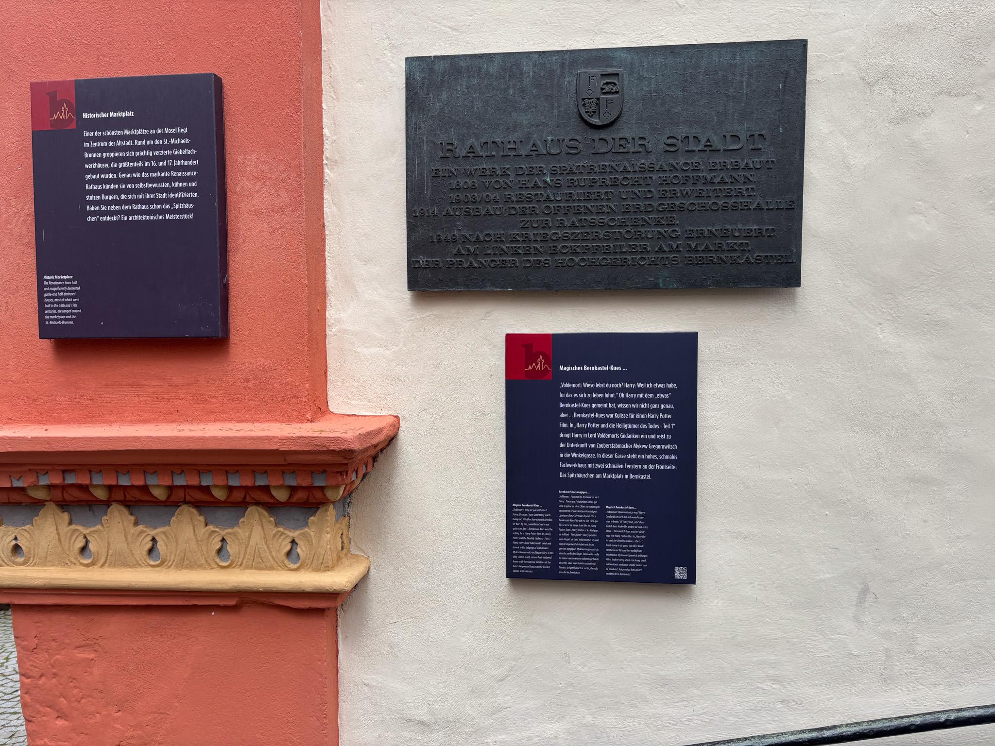 Bernkastel-Kues war Kulisse für einen Harry Potter Film. In „Harry Potter und die Heiligtümer des Todes – Teil 1“ dringt Harry in Lord Voldemorts Gedanken ein und reist zu der Unterkunft von Zauberstabmacher Mykew Gregorowitsch in die Winkelgasse. In dieser Gasse steht ein hohes, schmales Fachwerkhaus mit zwei schmalen Fenstern an der Frontseite: Das Spitzhäuschen am Marktplatz in Bernkastel.