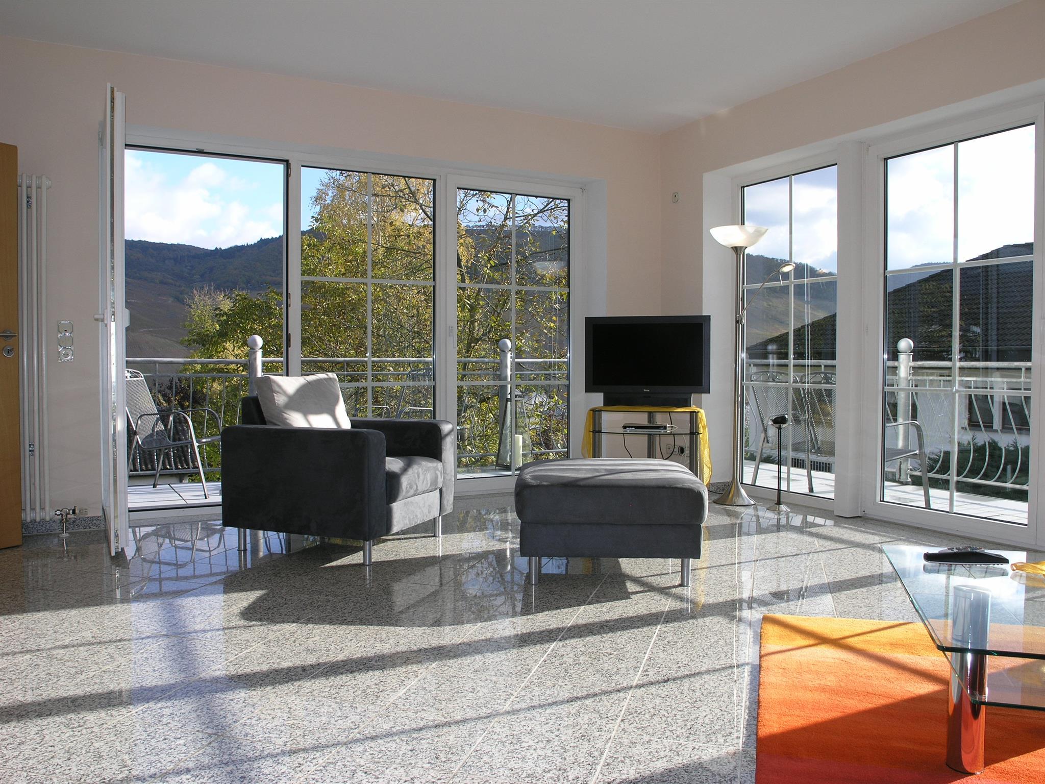 Großzügige Wohnungen im Landhausstil-Neubau. Große Liegewiese mit Grillmöglichkeit. Einkaufsmöglichkeiten in unmittelbarer Nähe. Frei- und Hallenbad nur ca. 5 Gehminuten entfernt. Fewo Badstube und Burg: 60 - 80 qm mit Panoramablick zur Burg und in die Weinberge. Modern und komfortabel ausgestattet. Fewo Rosenberg: 168 qm, luxuriöse 5-Sterne Wohnung in modernem Ambiente.