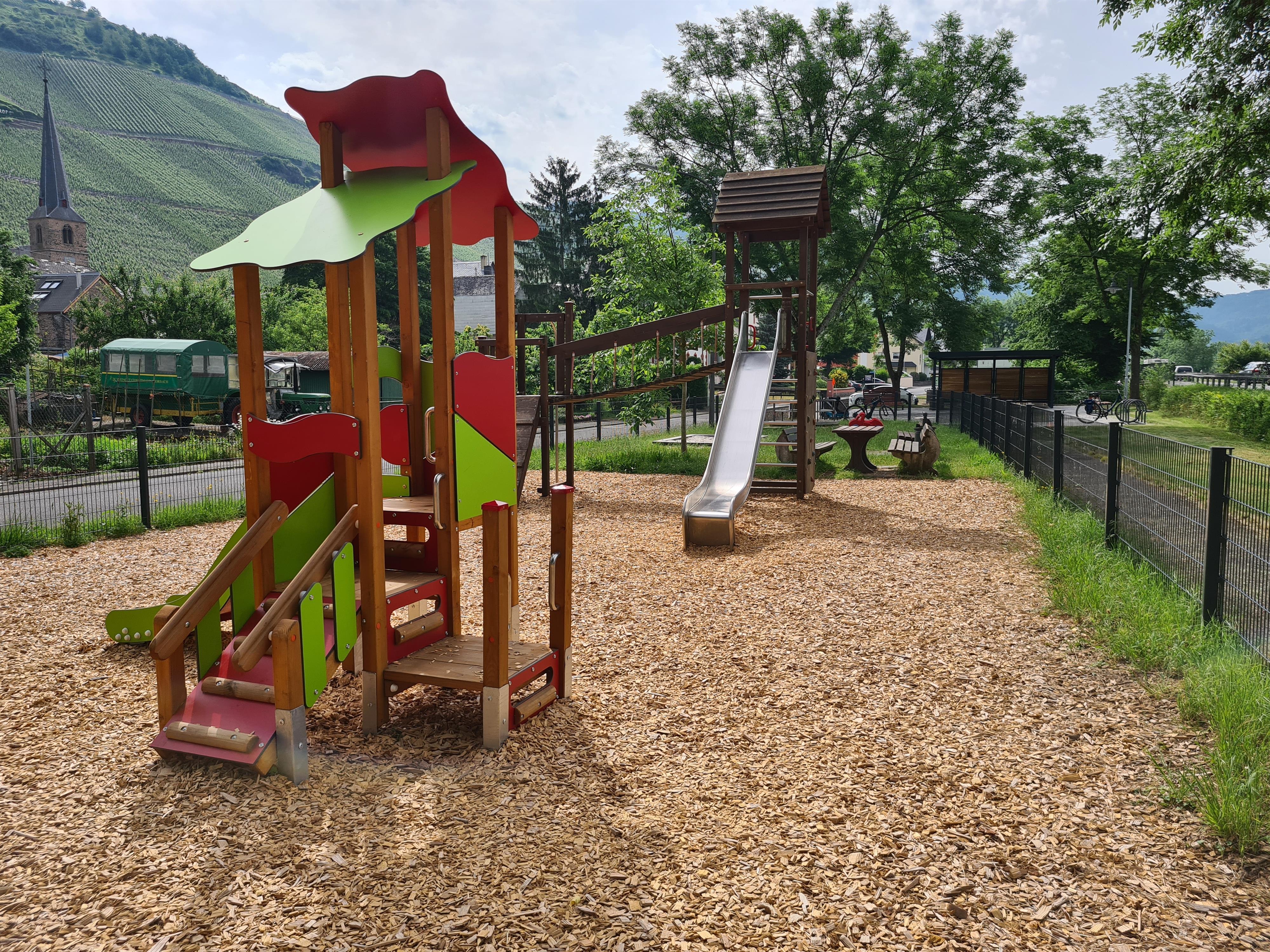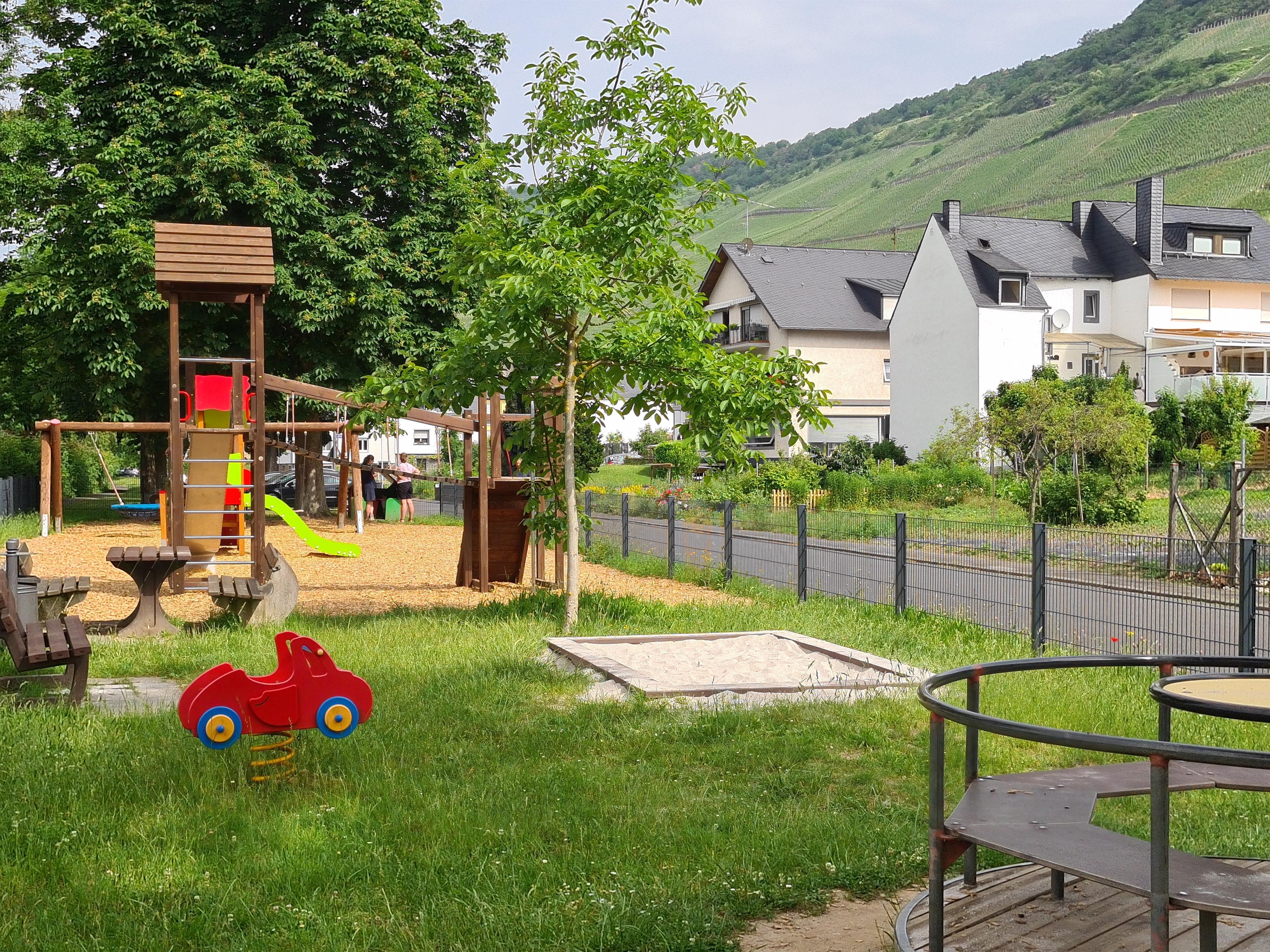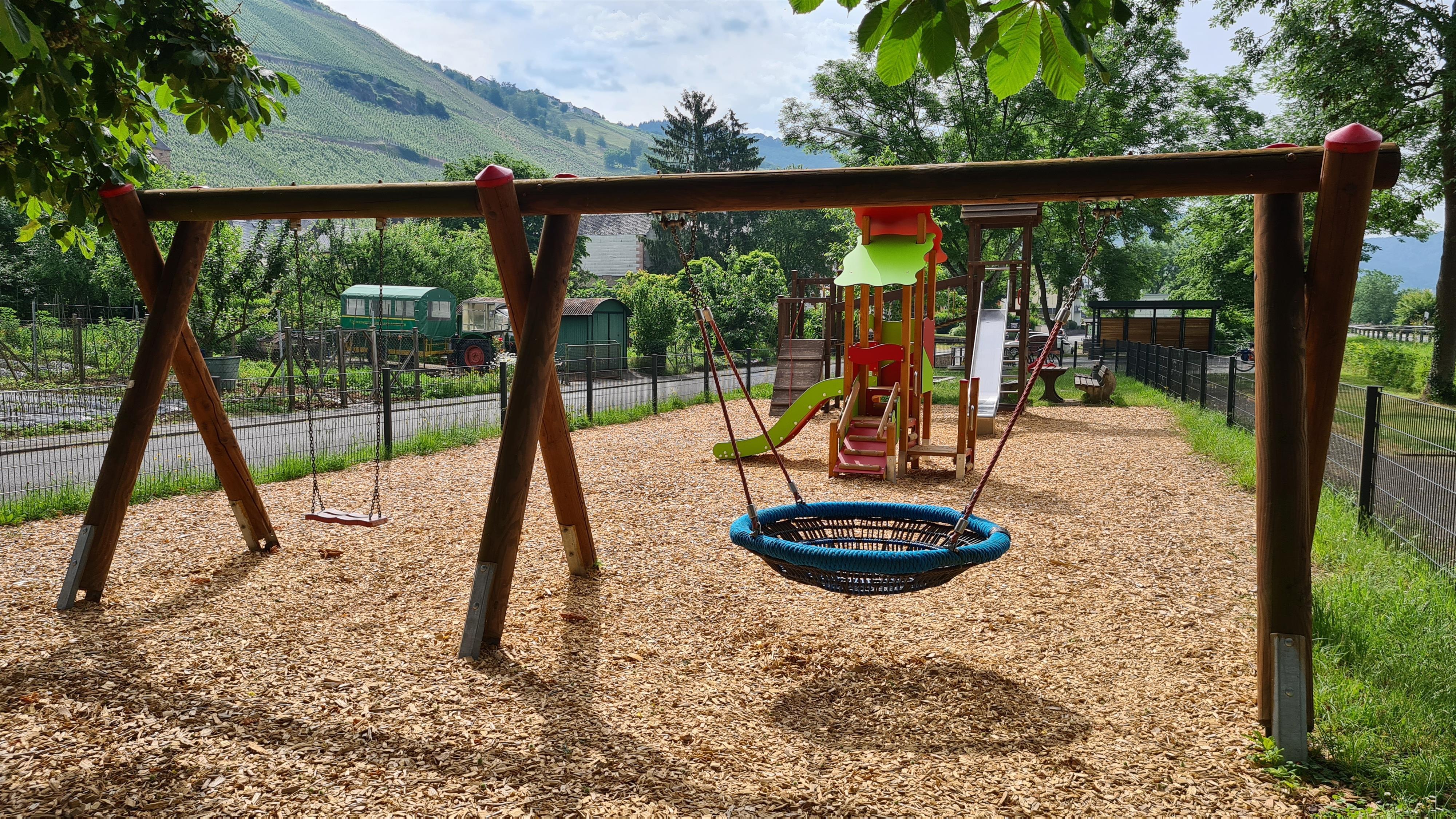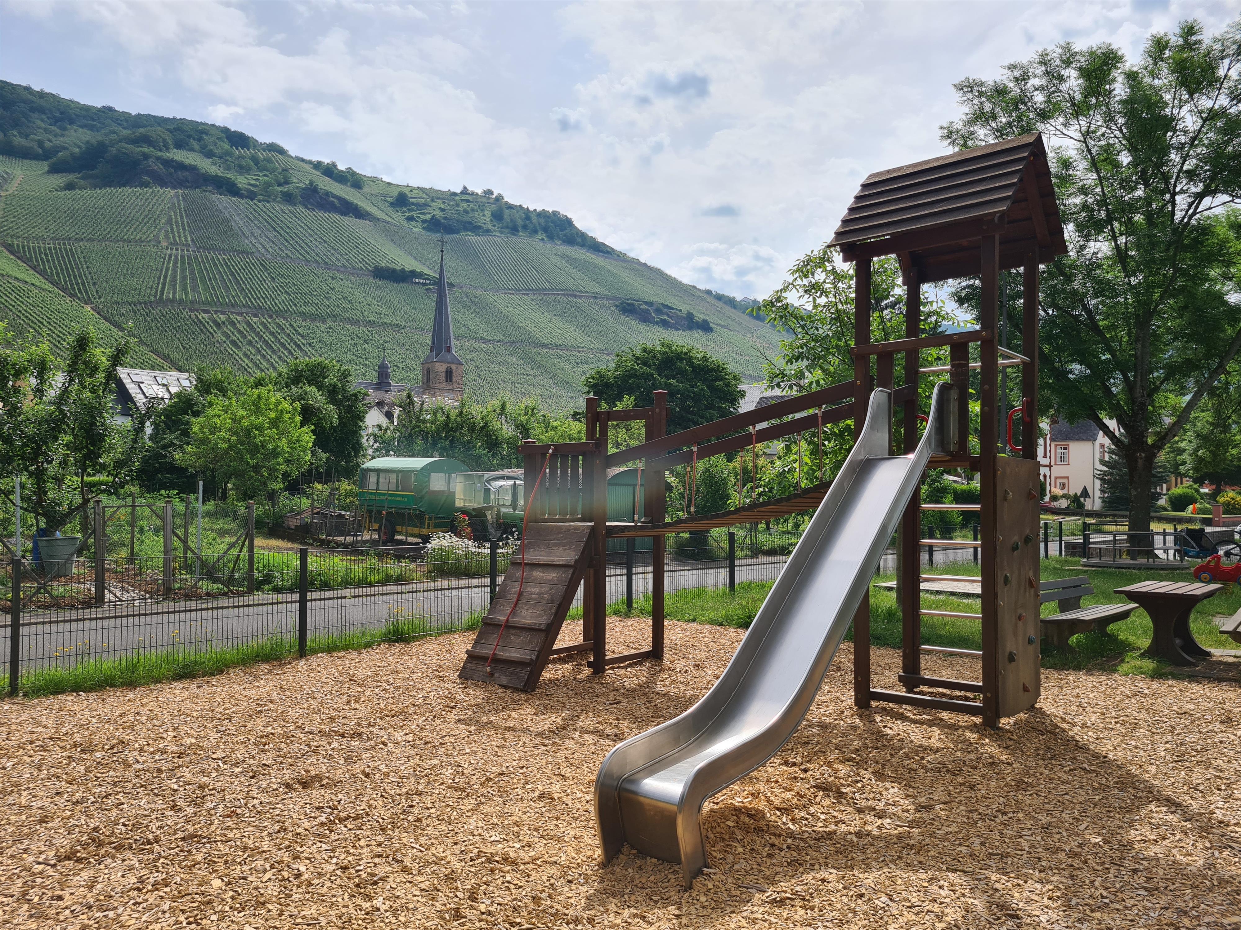 Der Mehrgenerationenplatz in Graach bietet vielfältige Möglichkeiten für Groß und Klein: Ein großzügiger, eingezäunter Spielplatz lädt Kinder zum Toben ein, während eine überdachte Sitzgruppe zum Verweilen einlädt. Für Spiel und Spaß sorgt auch der Bouleplatz – Boulekugeln und alles Notwendige stehen kostenfrei zur Verfügung. Wer es ruhiger mag, kann auf einer gemütlichen Liegebank entspannen und dem bunten Treiben der spielenden Kinder zuschauen.