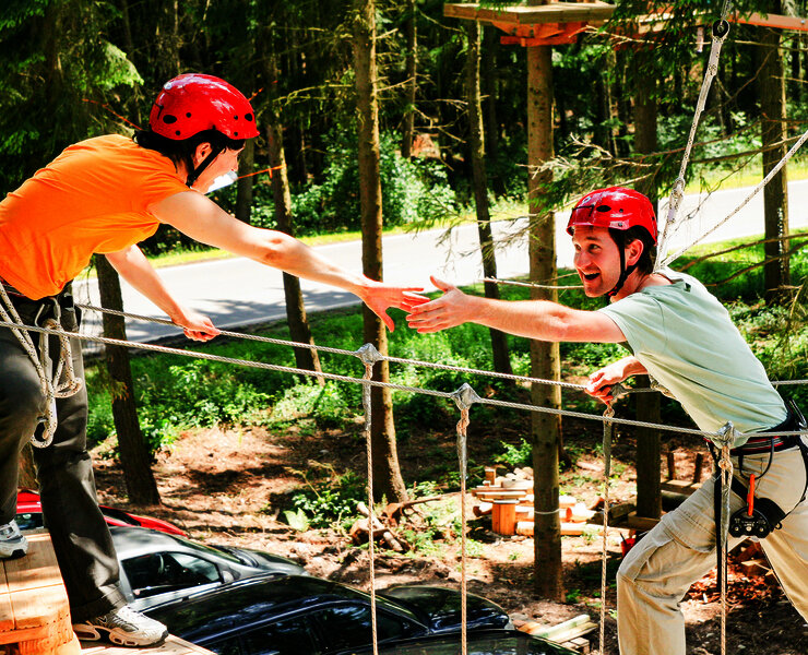 Firmen und Gruppen können hier hoch hinaus und im Teambuildingbereich Altbewährtes neu entdecken, die Gruppe mit ihren Strukturen intensiver kennen lernen und eine neue Sicht auf lösungsorientiertes Handeln, so wie auf eigene Stärken gewinnen.
