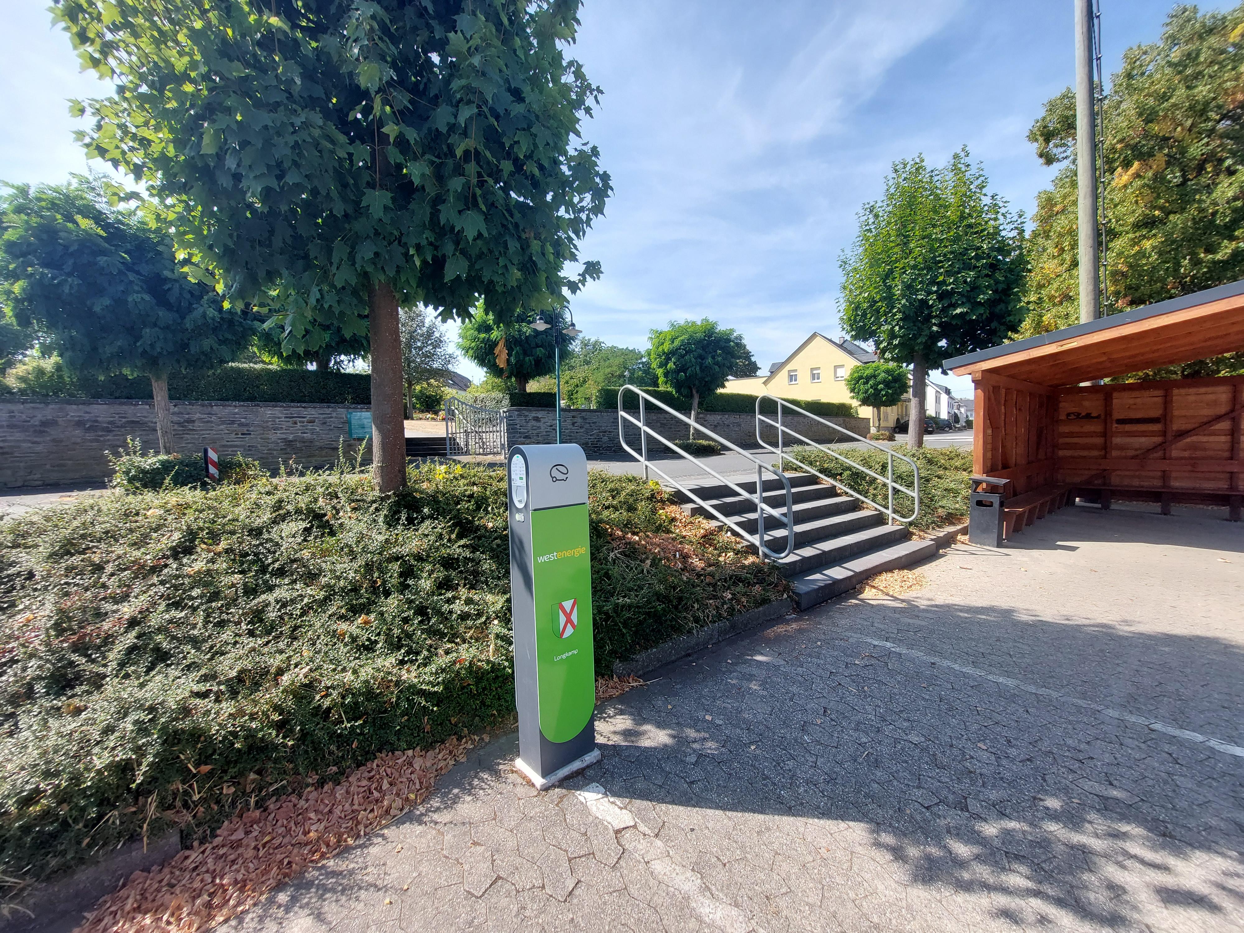 In Longkamp befindet sich die öffentliche Ladestation für Autos (innogy Charging Station - Typ 2 – 2 x 22kW) mitten im Ort, in der Schulstraße 12.