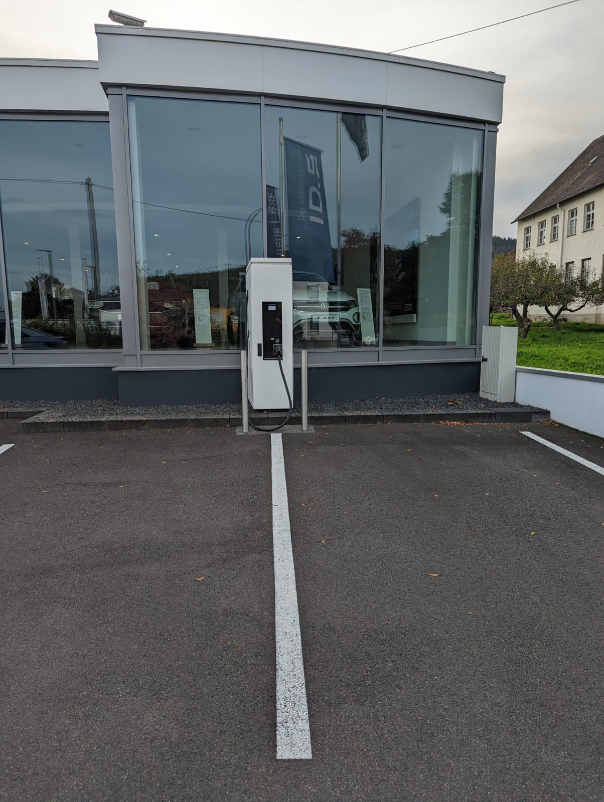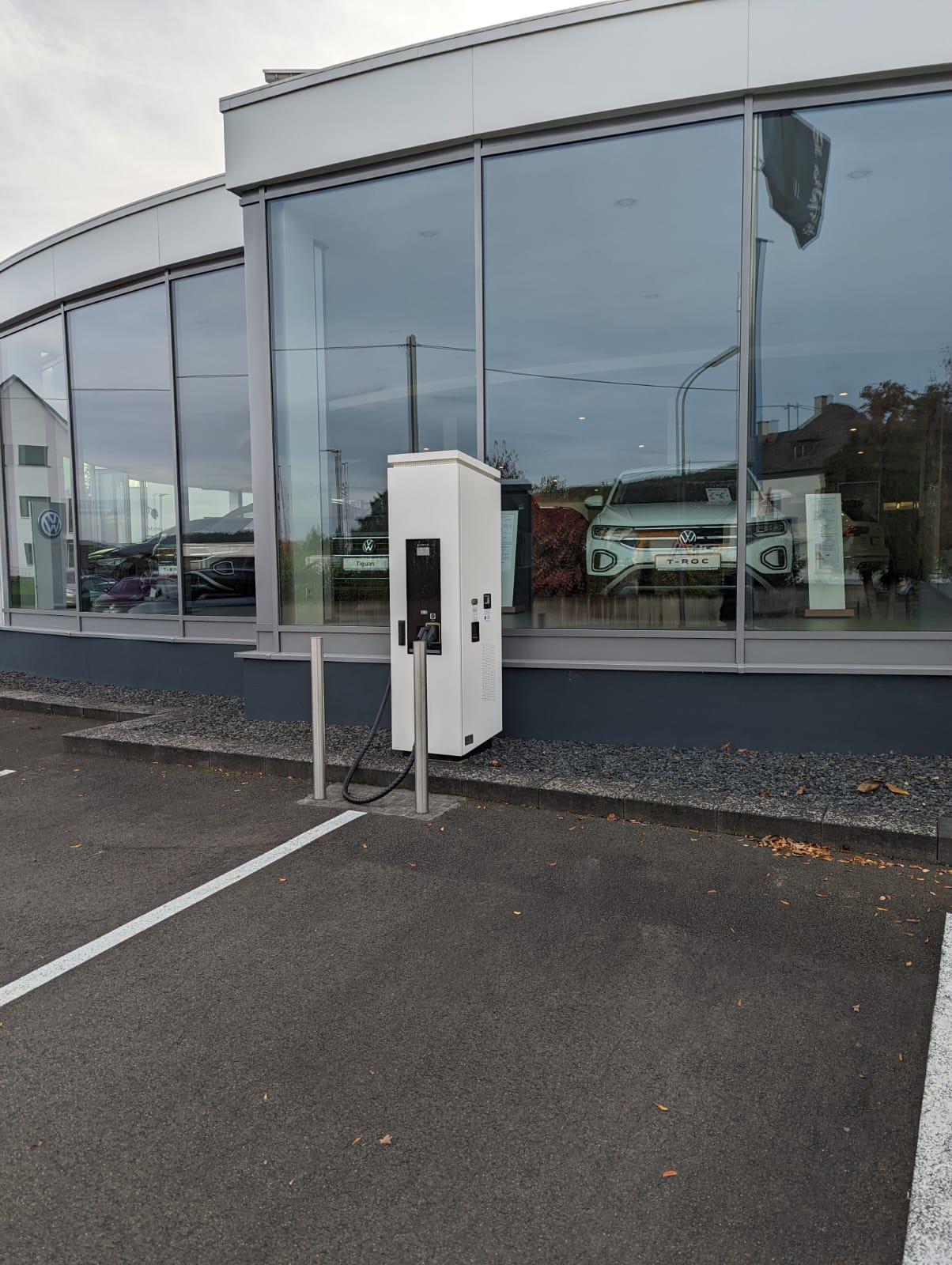 Eine öffentliche Ladestation für E-Autos (2 Ladegeräte: 1 x 50 kW und 1 x 11 kW gibt es in Erden beim Autohaus Kröfges, Moseltalstraße 40.