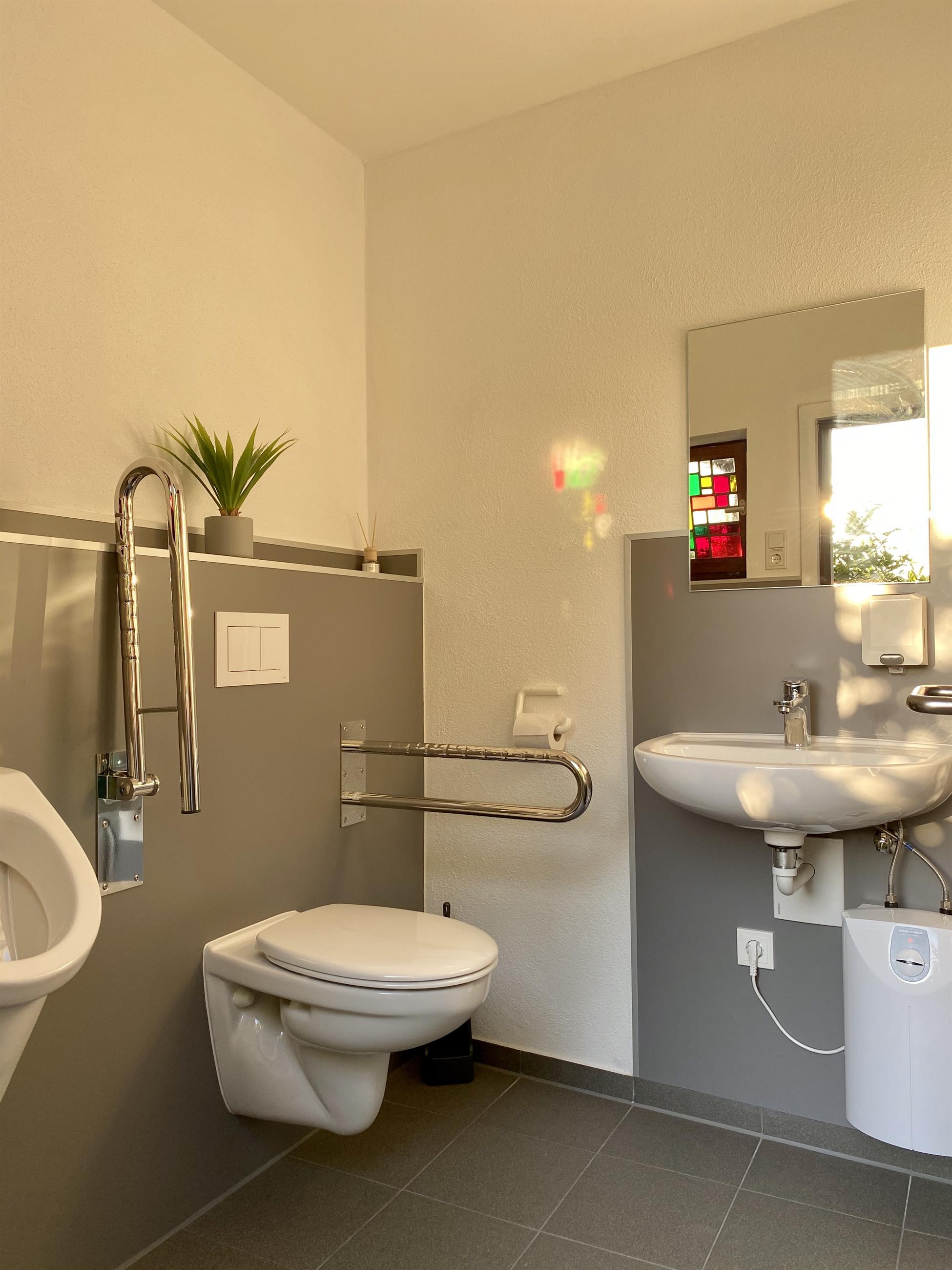 Gäste und Besucher von Longkamp finden die öffentliche Toilette zental im Ort, an der Trauerhalle am Friedhof.