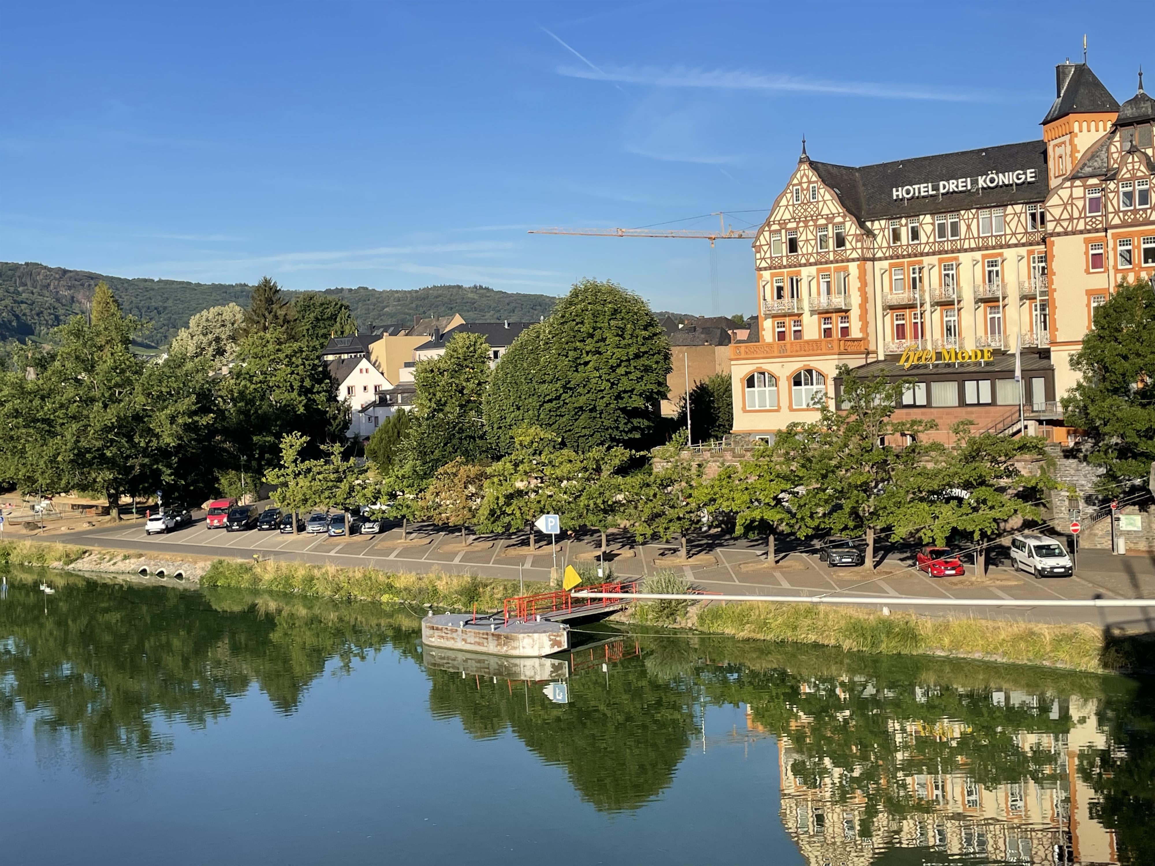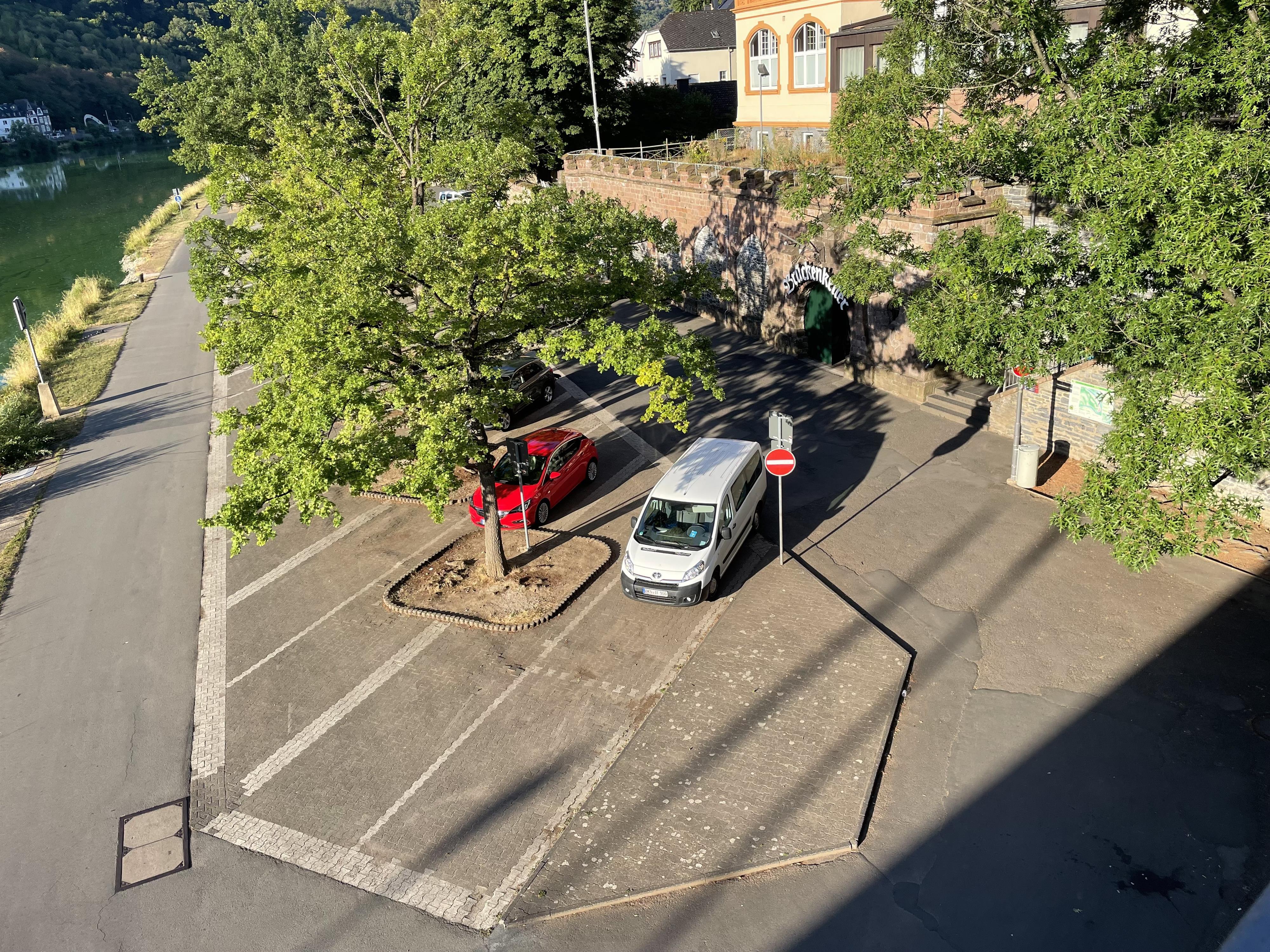 Der Parkplatz am Moselufer in Kues ist nicht weit vom Zentrum von Kues entfernt, der Stadtteil Bernkastel ist nach Überqueren der Brücke zu erreichen. Parkscheinautomaten sind an den Parkplättzen vorhanden. Im Mosel-Gäste-Zentrum (Gestade 6, Bernkastel) sind zudem Dauerparkscheine erhältlich.