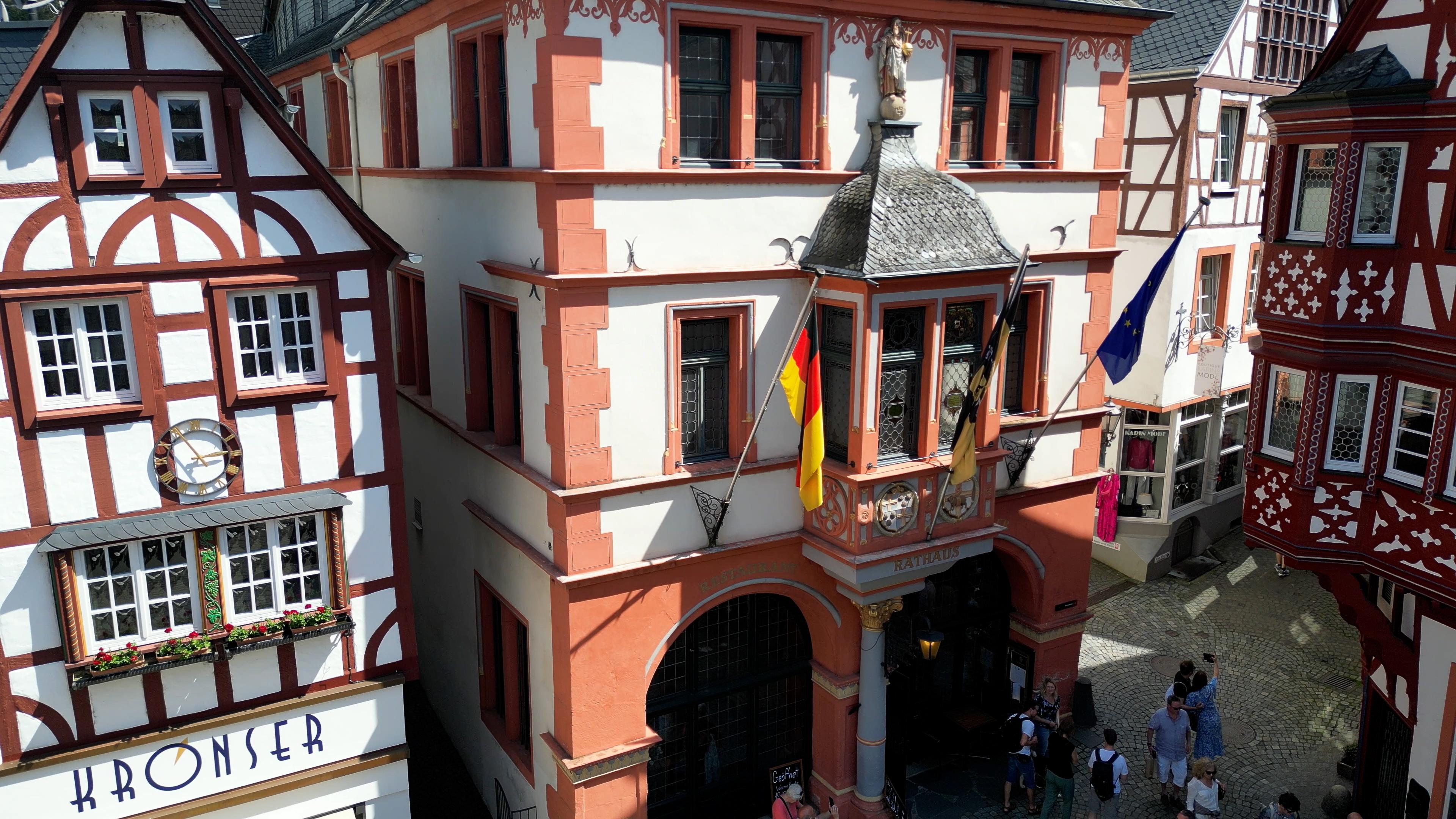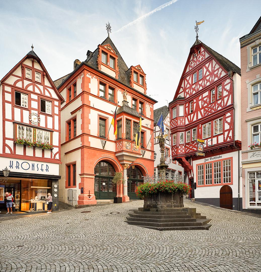 Schon lange zuvor, im Jahr 1540, stand an dieser Stelle ein früheres Ratsgebäude, das zwei Ratsstuben sowie eine Wohnung für den damaligen Stadtschreiber Wilhelm Kremer beherbergte. Zu Beginn des 20. Jahrhunderts, in den Jahren 1903 und 1904, wurde das Rathaus nach Westen erweitert. Diese Erweiterung entstand unter der Leitung eines Architekten aus Trier und fügte sich harmonisch in das bestehende Ensemble ein. Noch heute gilt das Gebäude mit seinem markanten Marktgiebel als eines der herausragenden Schmuckstücke des Bernkasteler Marktplatzes.