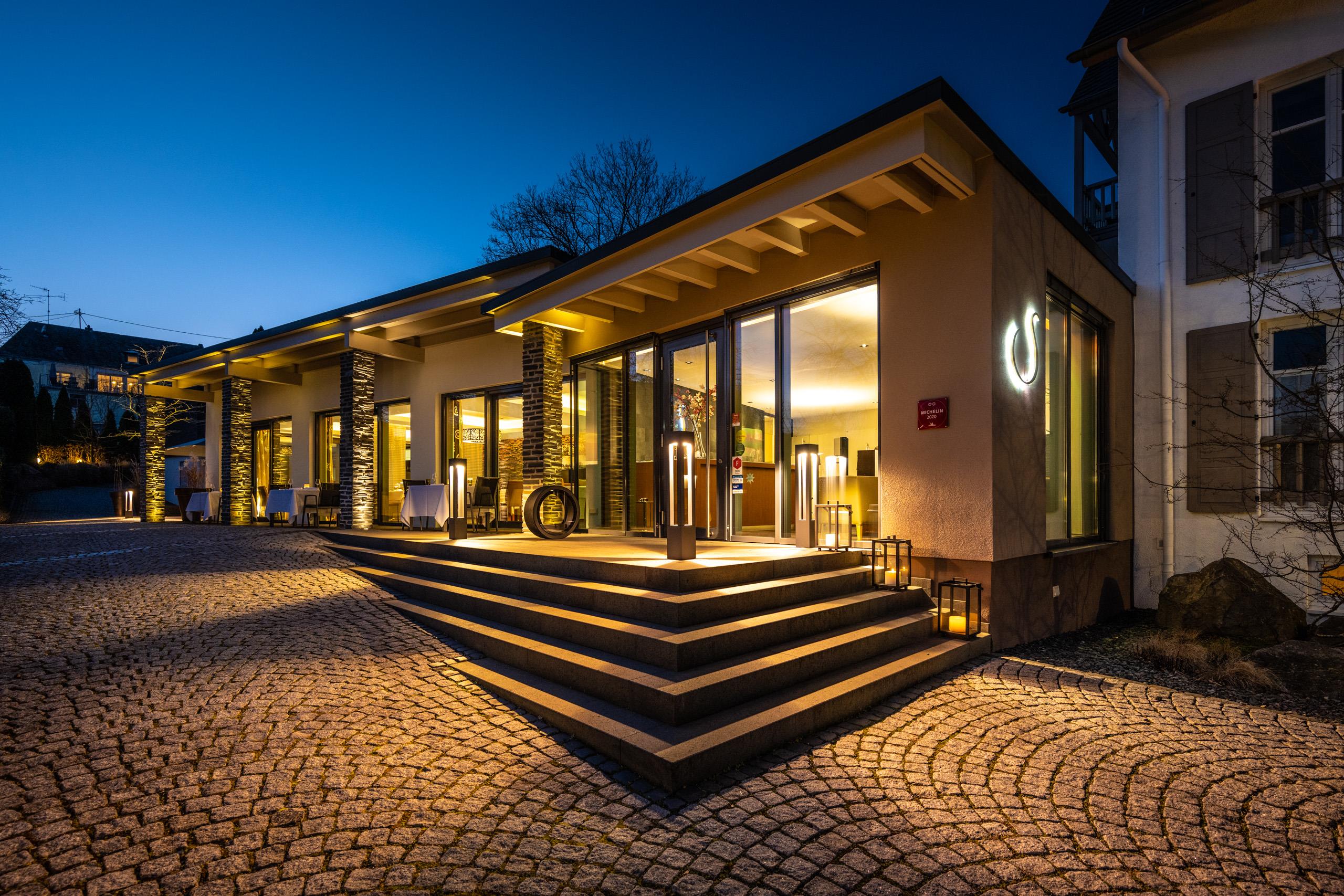 „Seit Thomas Schanz sein Restaurant betreibt, hat sich die für Spitzenweine bekannte Gemeinde Piesport auch noch zu einem wahren kulinarischen Magneten entwickelt! Der einstige Souschef von Helmut Thieltges zählt zu den deutschen Top-Köchen. Mit eigener Handschrift setzt er klassische Küche modern um. Mutig kombinierte Aromen fügt er auf dem Teller harmonisch zusammen. Bei der Produktqualität geht er keine Kompromisse ein. Ein Signature Dish ist das Trüffel-Ei. Engagiert empfiehlt man den passenden Wein - auch das eigene Weingut ist vertreten. Dazu der freundliche und professionelle Service. Der Patron, nicht nur gelernter Koch, sondern auch Hotelfachmann, bietet im einst elterlichen Betrieb auch schöne Gästezimmer.“