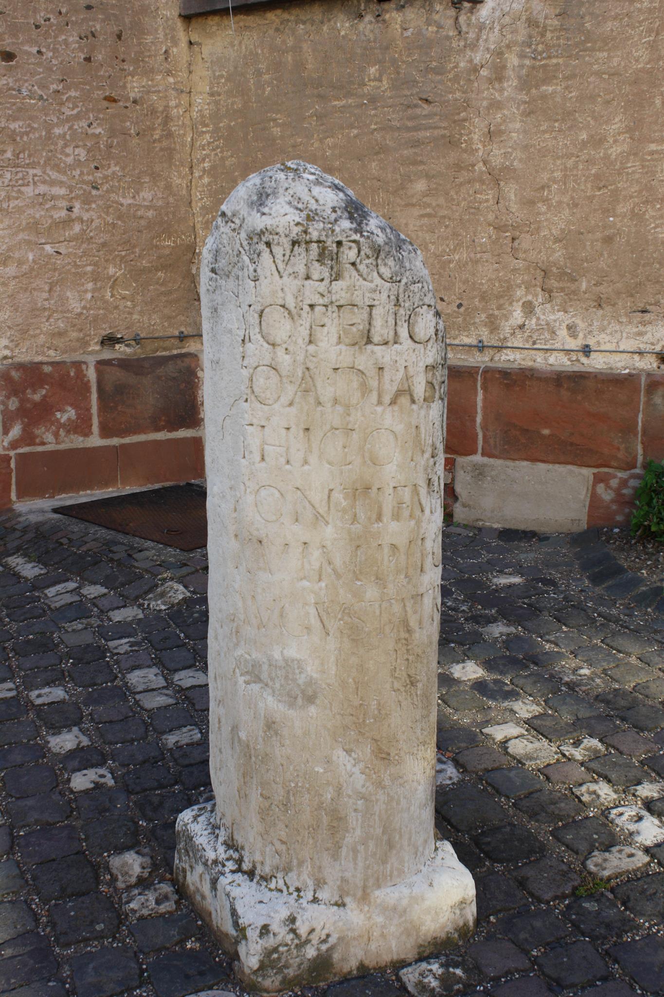 Dem Feldherrn und Caesar Marcus Aurelius Serverus Antonius, dem frommen und glücklichen Augustus, Bezwinger Arabiens Adiabenes ( d. i. Assyrien ) dem größtenSieger über die Parther und ebenso die Britannier.