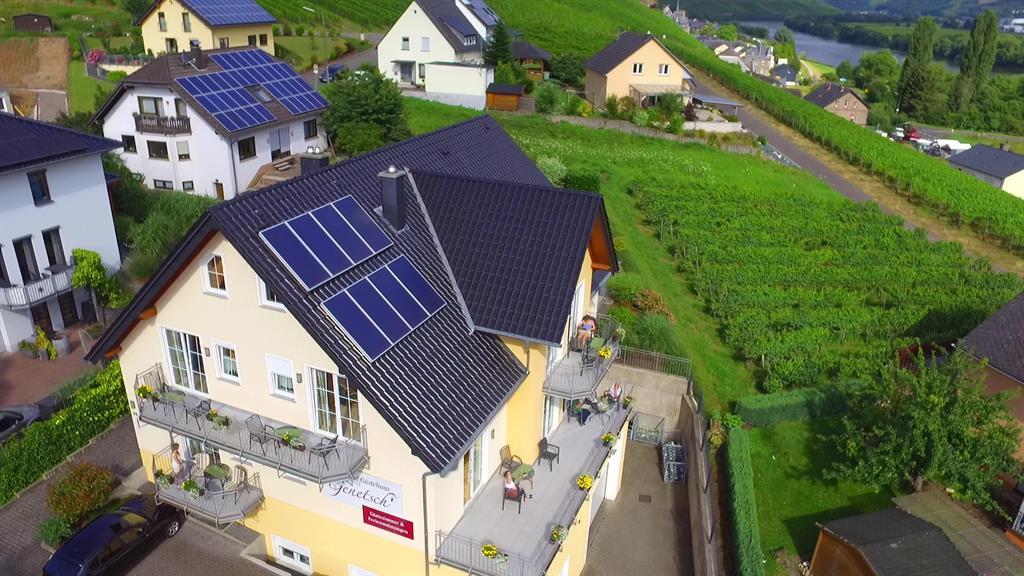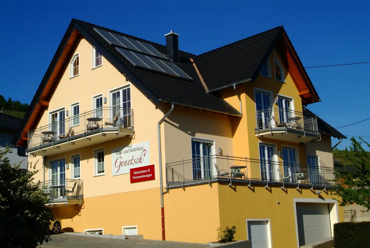 Unser neu erbautes Wein- und Gästehaus befindet sich in einer ruhigen und sonnigen Lage am Ortsrand des idyllischen Weinorts Lieser. Zu Ihrem wohlverdienten Urlaub erwarten Sie liebevoll eingerichtete Gästezimmer und Ferienwohnungen in einem 4-Sterne-Ambiente mit harmonischer Atmosphäre. Großer Aufenthaltsraum, Sonnenterrasse, Liegewiese, Balkone mit einem atemberaubenden Panoramablick über die Fluß- und Reblandschaft von Lieser sind ein Garant zum WOHLFÜHLEN - GENIESSEN - ERHOLEN.