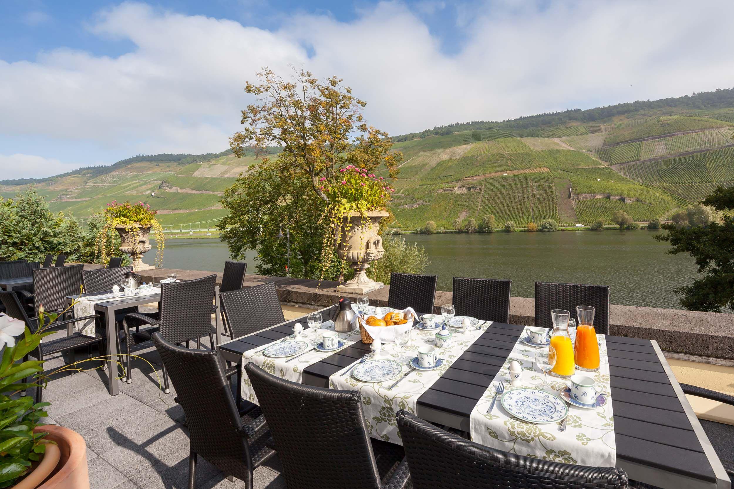 Das international bekannte Wein- und Landhaus Raimund Prüm, ein 5-Sterne luxuriös Gästehaus, nur fünf Minuten von der historische Stadt Bernkastel-Kues an der Mosel gelegen, verfügt über acht geräumige Gästesuiten, die mit modernen und luxuriösen Betten, ein Tresor, French-Press Kaffeekanne und Wasserkocher, Flachbild-TV, kostenloses WLAN, Minikühlschrank und einem kompletten Badezimmer mit Duschkabine oder Badewanne, Doppel Waschbecken und Toiletten ausgestattet sind. Nach einer langen Fahrt erwartet Sie außerdem ein persönlicher Begrüßungsplatte, eine Flasche Wasser und gratis Flasche Riesling Wein. In Ihren Suiten Preis inbegriffen ist ein traditionelles deutsches Frühstück, das Sie entweder im Sommer draußen auf unserer Terrasse mit atemberaubendem Blick auf die Mosel oder in den Wintermonaten neben unserem gemütlichen Kamin genießen können. Unsere drei Ferienwohnungen verfügen über ein modernes und komfortables Doppelbett, ein gemütliches Wohnzimmer, ein Tresor, eine voll ausgestattete Küche und ein hygienisches Badezimmer mit Dusche, das Ihnen noch mehr Freiheit und Unabhängigkeit während Ihres Aufenthalts bietet! Unser Frühstücksservice steht unseren FeWo-Gästen gegen Aufpreis ebenfalls zur Verfügung.