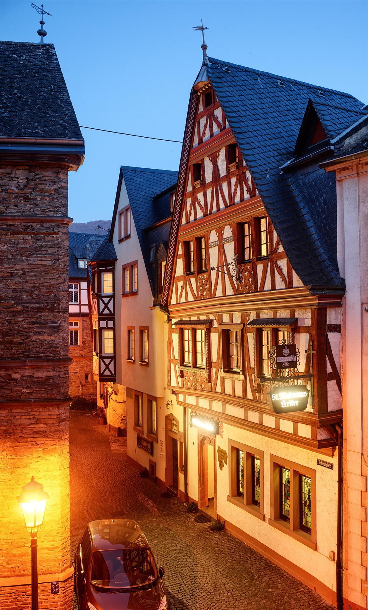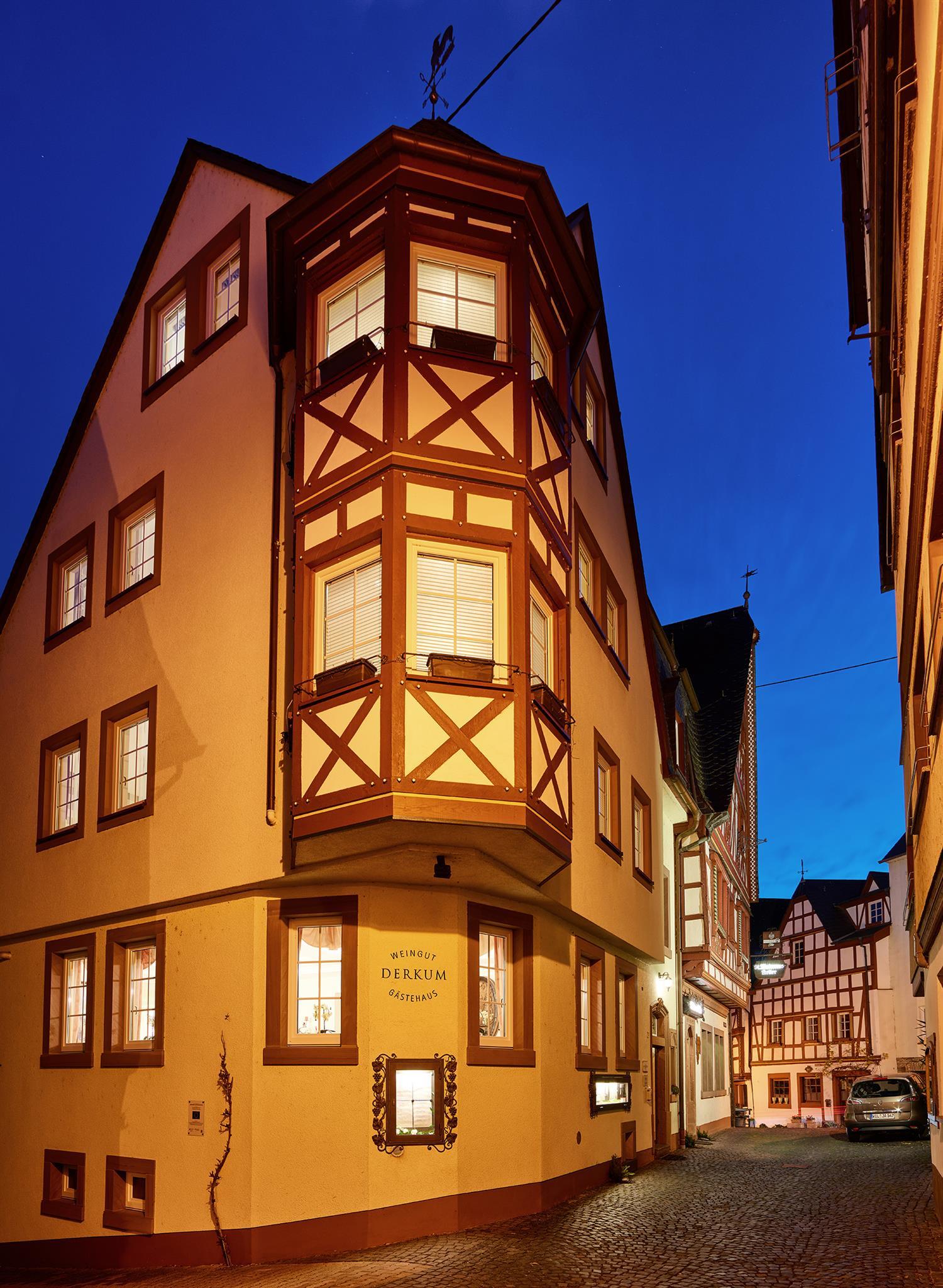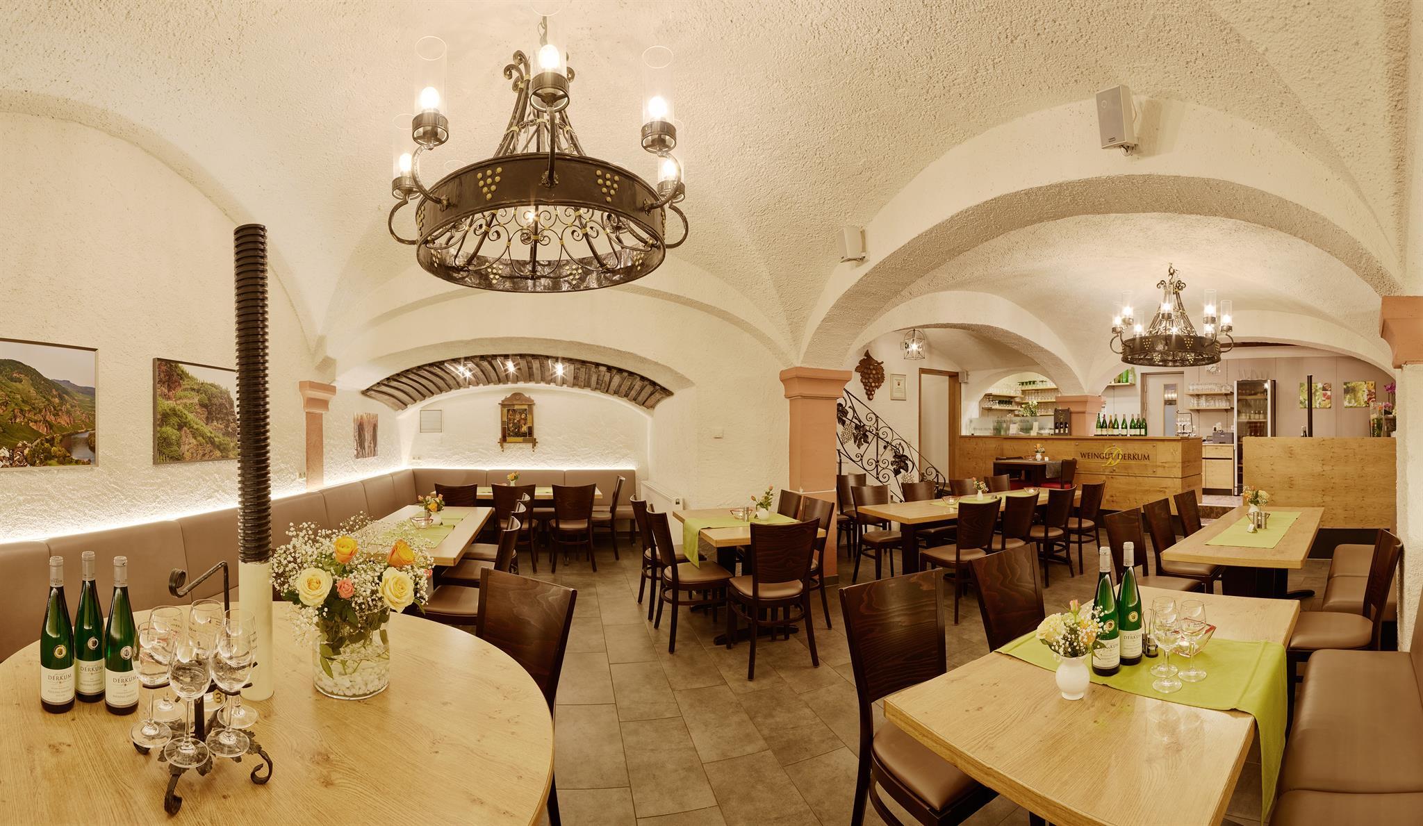 Das Weingut Derkum finden Sie in Ürzig an der Mosel. Das traditionsreiche Weingut wird schon seit Generationen von der Familie Derkum betrieben. Die Weinreben wachsen zum größten Teil in Weinbergen, die eine Steigung von bis zu 65% haben. Durch die Schieferböden sowie eine selektive Ernte entstehen charaktervolle Weine. Probieren können Sie die Weine zum Beispiel in der Weinstube St. Maternus Keller. Dazu können Sie auch Speisen aus der Winzerküche kennenlernen. Wenn Sie Urlaub beim Winzer machen möchten, so stehen die Gästezimmer der Familie für Sie zur Verfügung.