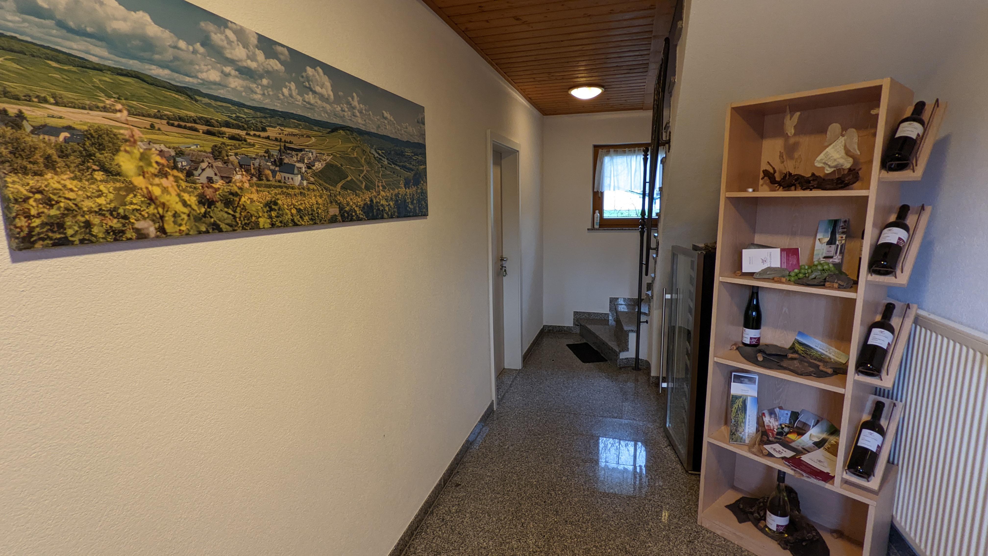 Ein besonderes Highlight ist unser Kühlschrank im Flur, der mit unseren selbst erzeugten Weinen gefüllt ist. Auf Wunsch können Sie auch an einer Weinprobe teilnehmen, um die Vielfalt unserer edlen Tropfen kennenzulernen. Erleben Sie den Charme des Weinguts und lassen Sie sich von der unvergesslichen Schönheit der Moselregion verzaubern.