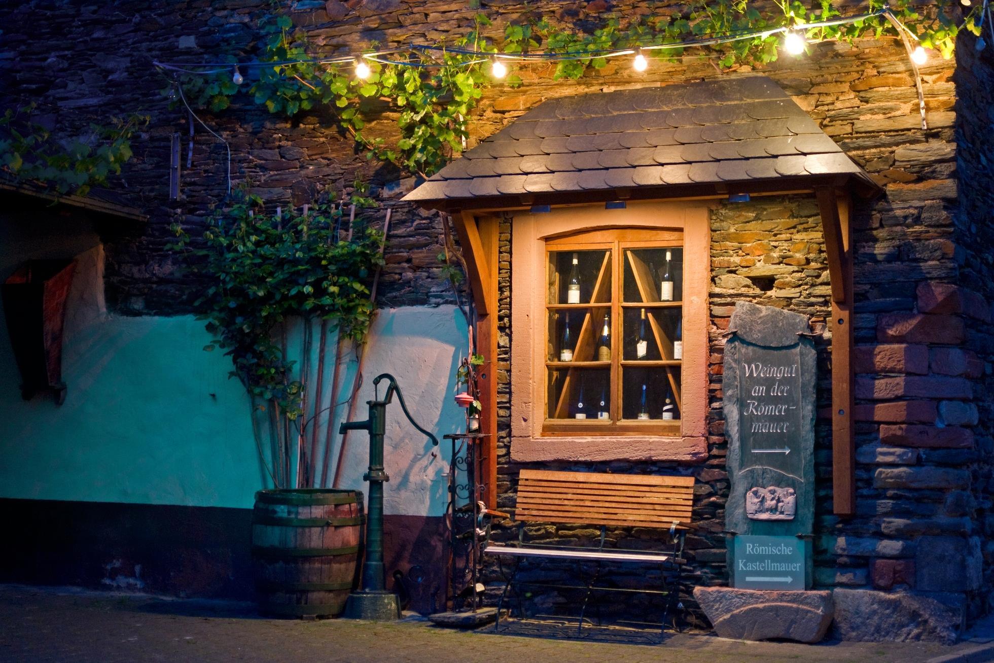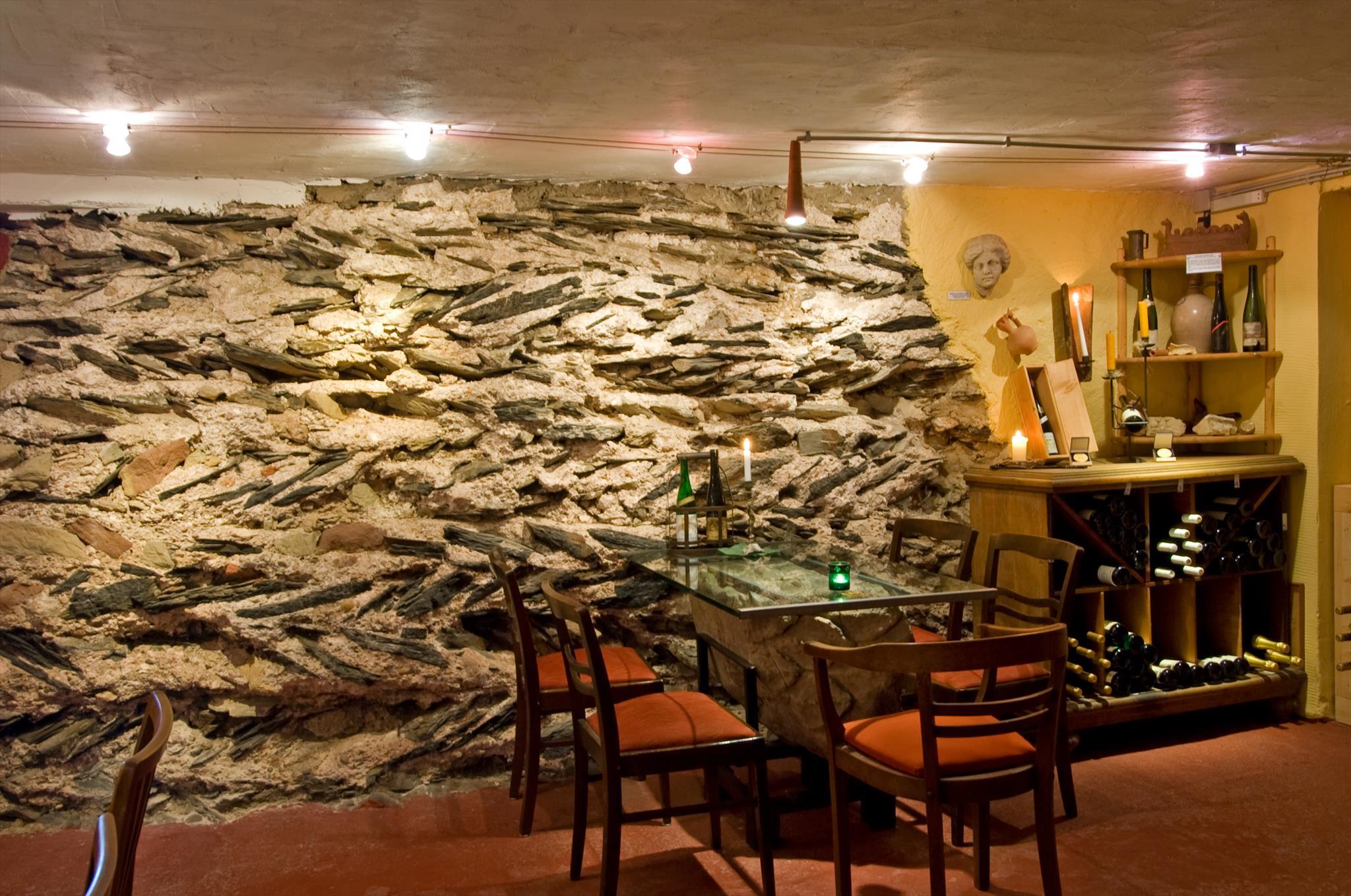 In unserer gemütlichen Weinstube können sie Wein vor altrömischer Kulisse genießen. Hier ist ein original Mauerteil der ehemaligen römischen Kastellanlage sichtbar, die seinesgleichen nicht findet. Die Mauer bildet die Rückwand unserer Weinstube. Weitere römische Funde sind u.a. als Tische hier integriert. Dadurch entsteht ein ganz besonderes Ambiente. Weinproben finden auf Anfrage statt. Die Familie Lauterbach freut sich auf Ihren Besuch.