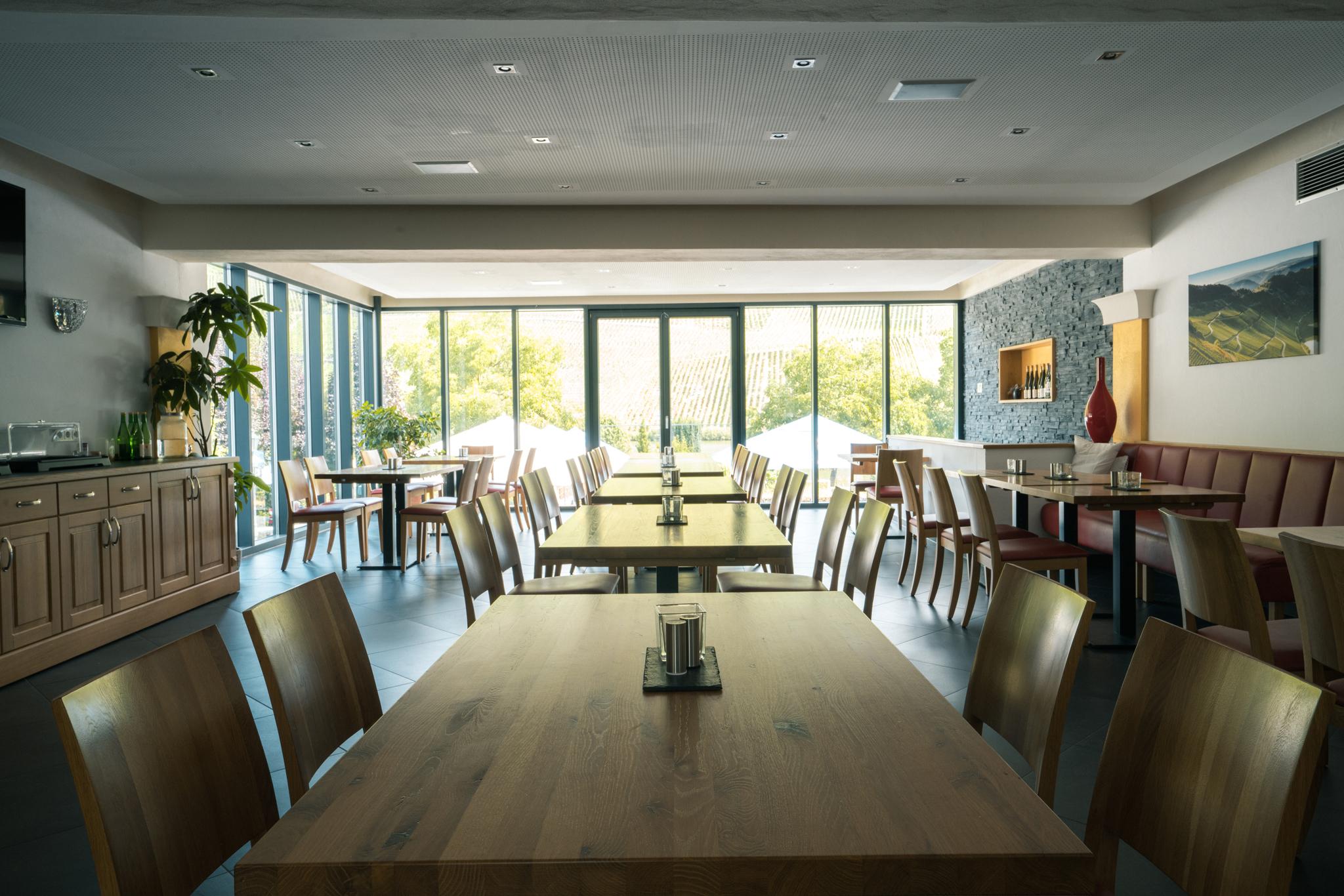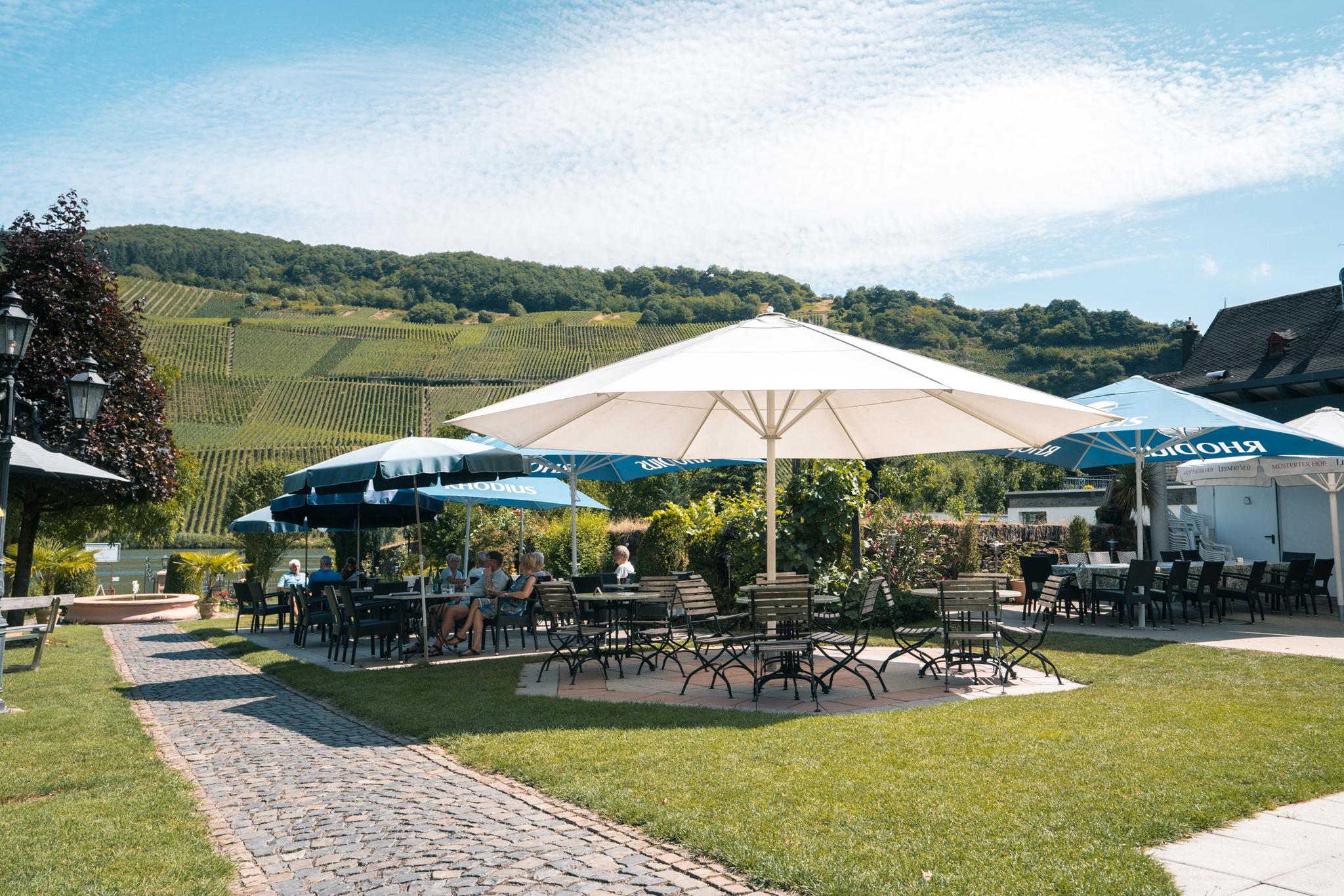 Bei uns sitzen Sie in der ersten Reihe - genießen Sie unsere hauseigenen Weine und köstlichen Speisen aus der Gutsküche und entspannen Sie sich in unserem Moselgarten oder der Vinothek bei dem traumhaften Ausblick auf die steilen Weinberge und die Mosel.