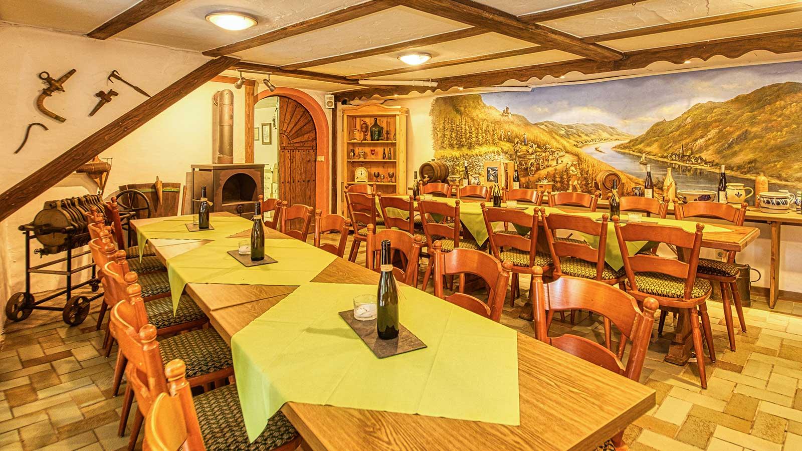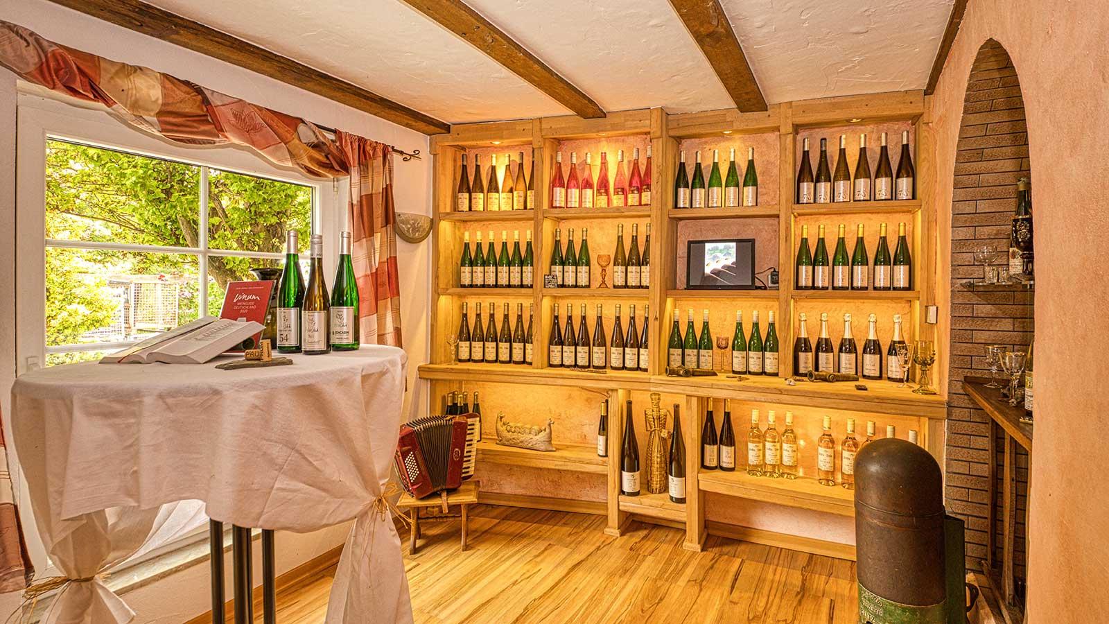 Unsere Weine vergären in modernen Edelstahlgebinden und reifen wenn nötig in traditionellen Eichenholzfässern zu ihrer vollkommenen Reife aus. Unterstützt durch moderne Kellertechnik reifen rassige - feinfruchtige Weine mit lebendigem Säurespiel zu vollmundigem Weingenuss heran. Unser absoluter Spitzenwein ist die Grauschiefer Spätlese trocken oder die feinherbe Riesling Spätlese aus der Sonnenuhr. Die Freude der edelsüßen Weine verwöhnen wir mit der Riesling Spätlese "LESURUS" oder mit unserem Dessertwein Riesling Auslese.