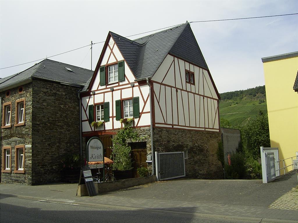 Auf Wunsch kann eine Probe im kleinen Kreis auch in unserem Weinkeller durchgeführt werden. Im Jahre 1897 wurde dieses Gewölbe angelegt. Hinter dicken Mauern aus dem heimischen Tonschiefer behüten auch heute noch Eichenfässer die Schätze des Winzers.