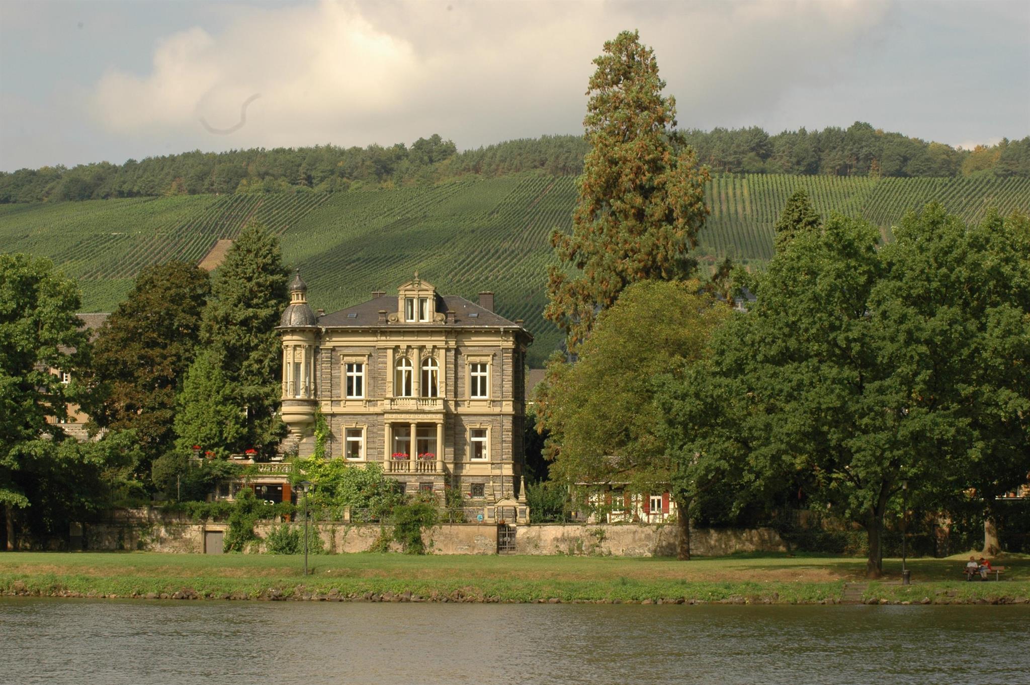 das 1884 erbaute Gutshaus und die Ansicht von Bernkastel mit der Doctor-Lage.