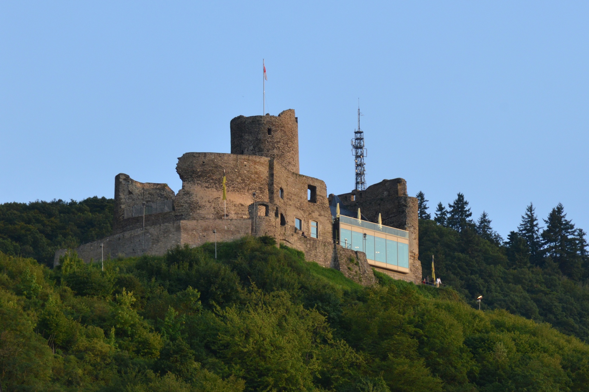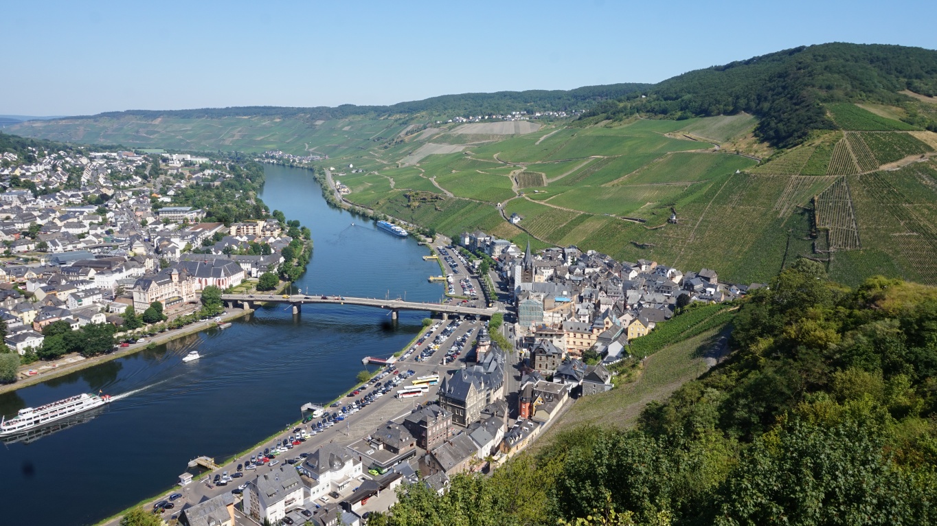 Von der Wilhelmshöhe aus reicht der Blick bis weit in die Eifel. Dem Waldweg Richtung Monzelfeld folgend steuern Sie das Ziel „Olymp“ an. Nach einiger Zeit gibt der Waldrand den Blick auf das Dorf Monzelfeld frei. Dieser Ort ist zudem ein zweiter, möglicher Startpunkt dieser Wanderung. Dem Waldweg absteigend nach links folgend gelangen Sie nach wenigen Metern zum Abzweig an den Olymp (geradeaus geht es ins Tiefenbachtal oder auf direktem Weg zurück nach Bernkastel). Der Bernkasteler „Olymp“ ist mit 415 m die höchste Erhebung zum Hunsrück. Vom Gipfel bietet sich ein tolles Panorama auf die Stadt. Der Abstieg vom Olymp führt Sie zunächst über einen schmalen Pfad, dann auf einen Forstweg zum Parkplatz an der ehemaligen Jugendherberge. Weiter geht es zur Burg Landshut und am Schützenhaus vorbei zum historischen Marktplatz von Bernkastel.