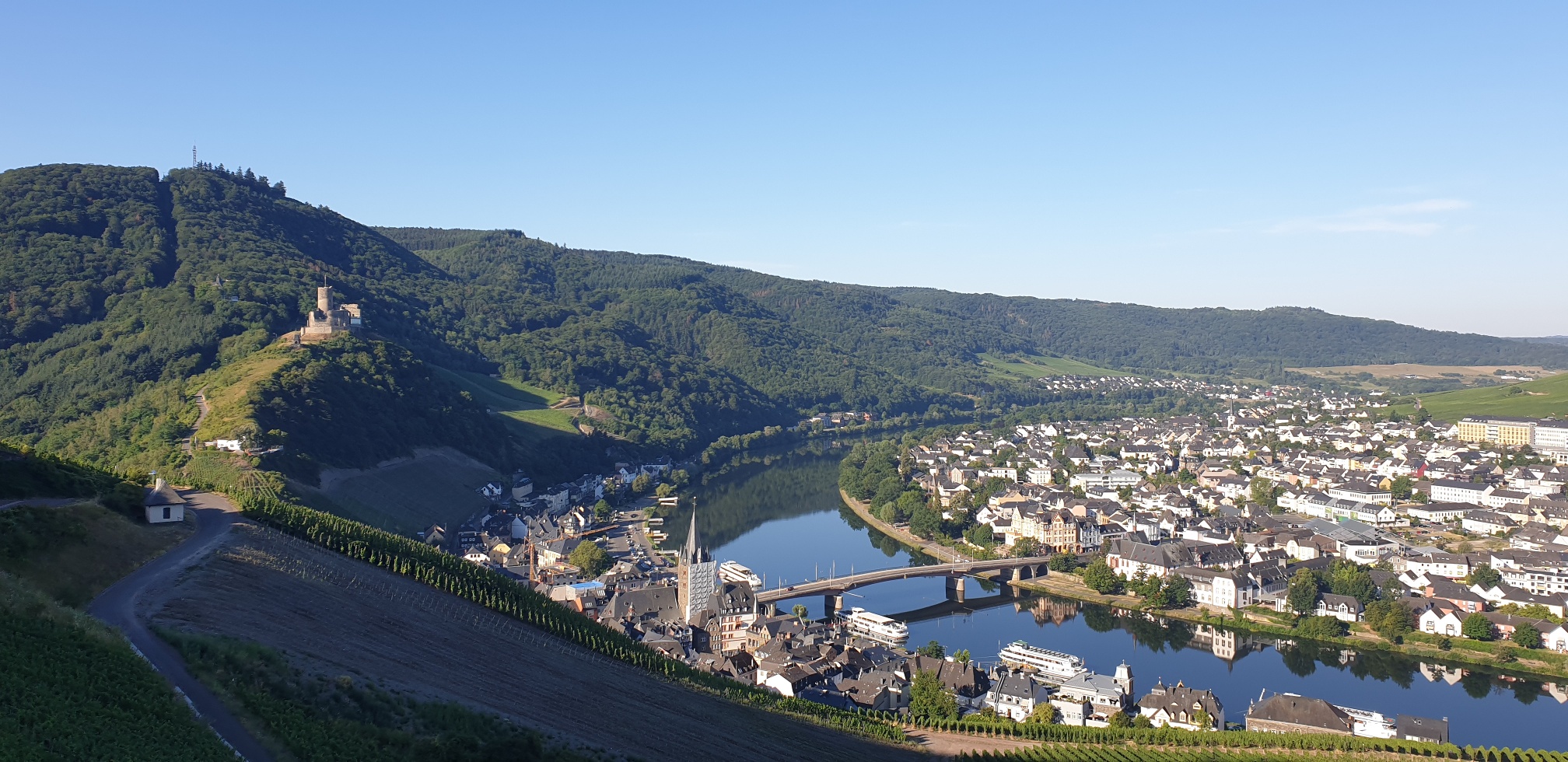 Der Weg führt oberhalb des berühmten Doctorweinberges entlang und an seinen Kellern vorbei. Es geht hinauf zur St.Josephskapelle und dem Weinbergshäuschen inmitten der Weinberge von wo man einen herrlichen Blick über Bernkastel genießt. Danach geht es weiter inin den Stadtwald und das Kallenfelstal.