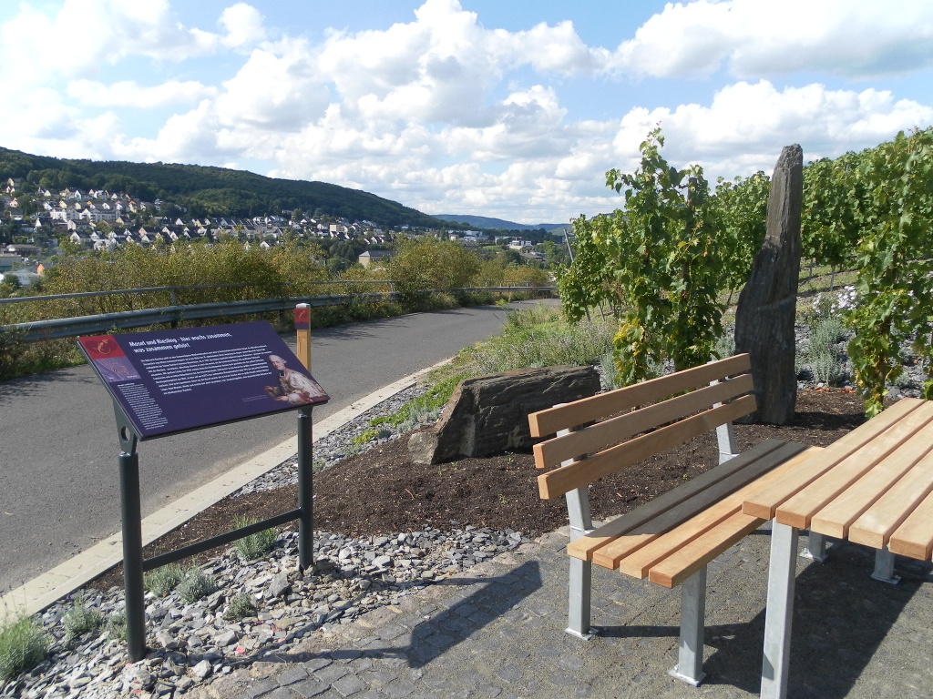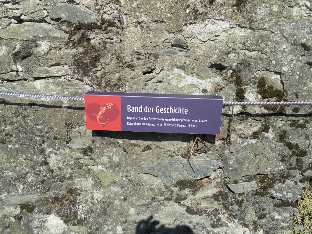 Der Bernkasteler Wein-Erlebnispfad "Eidechse liebt Riesling" startet am Graacher Tor, dem einzigen noch erhaltenen Tor der ehemaligen Stadtbefestigung. Das "Band der Geschichte" mit wichtigen Eckdaten zur Stadt- und Weinbaugeschichte begleitet Sie beim ersten Anstieg bis zur kleinen St. Josefs-Kapelle. Links an der Kapelle vorbei führt Sie der Lehrpfad zur ersten Erlebnis-Station. Wenn Sie mögen, können Sie hier auch eine erste Rast einlegen. Es folgt eine flache Wegstrecke parrallel zum Hang. Dann steigen Sie an einem kleinen Wasserlauf entlang hinauf zum höher gelegenen Wirtschaftsweg (Station 2 und 3), wenden sich am Brunnen und Wegekreuz nach rechts der Station 4 zu, die über verschiedene Reberziehungsarten informiert. Nun geht es in Kehren weiter bergauf. Sie passieren 2 weitere Stationen (5 und 6) des Lehrpfades und verlassen an einem Bogen, der als Rankhilfe den Weinbergsweg überspannt, die bis zu dieser Stelle auf festem Untergrund bequeme Wegeführung. Denn es folgt ein Exkurs über Stock und Stein in einen Weinberg , der von der Flurbereinigung nicht erfasst wurde und über die Artenvielfalt in diesem Lebensraum Auskunft gibt (Station 7). Nach dieser erschwerten Passage gehen Sie auf Wirtschaftswegen weiter, entlang der Lebensraumhilfen (Station 8) zur Aussichtsplattform (Station 9), wo der Scheitelpunkt des Lehrpfades erreicht ist. Spätestens hier kommen Fotokamera oder Handy zum Einsatz. Beim Abstieg führt Sie der Weg am "Bernkastler Doctor" vorbei (Station 10), der teuersten Weinlage der Welt.